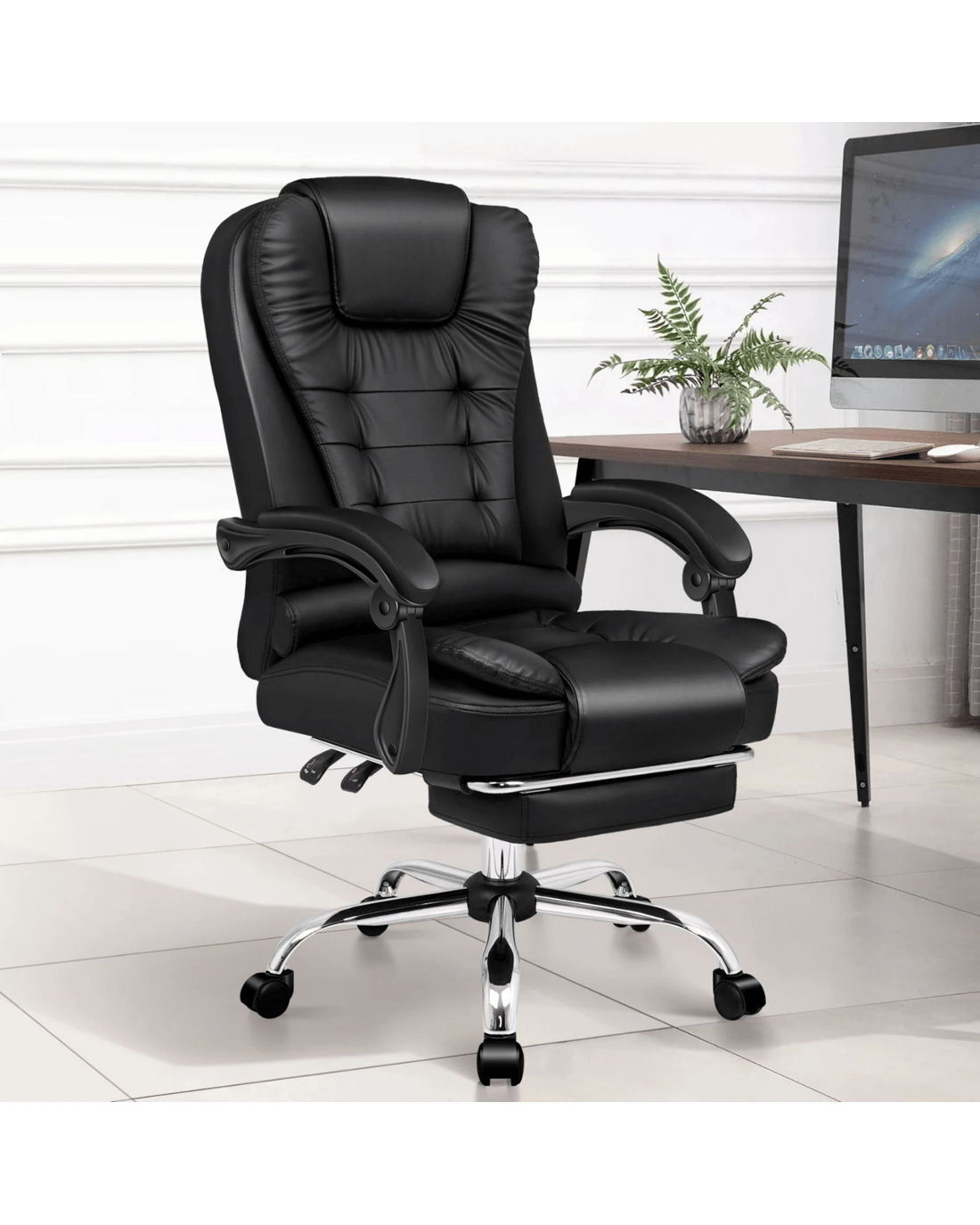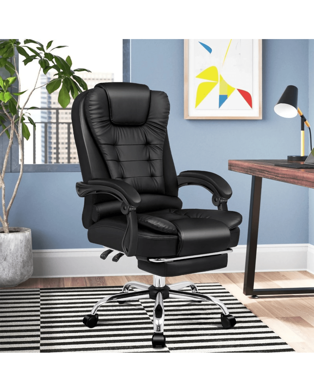Alfordson Office Chair Gaming Executive Computer Racer Footrest PU Leather Seat - Black
