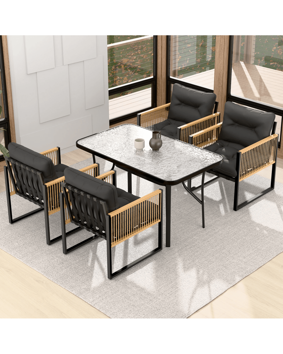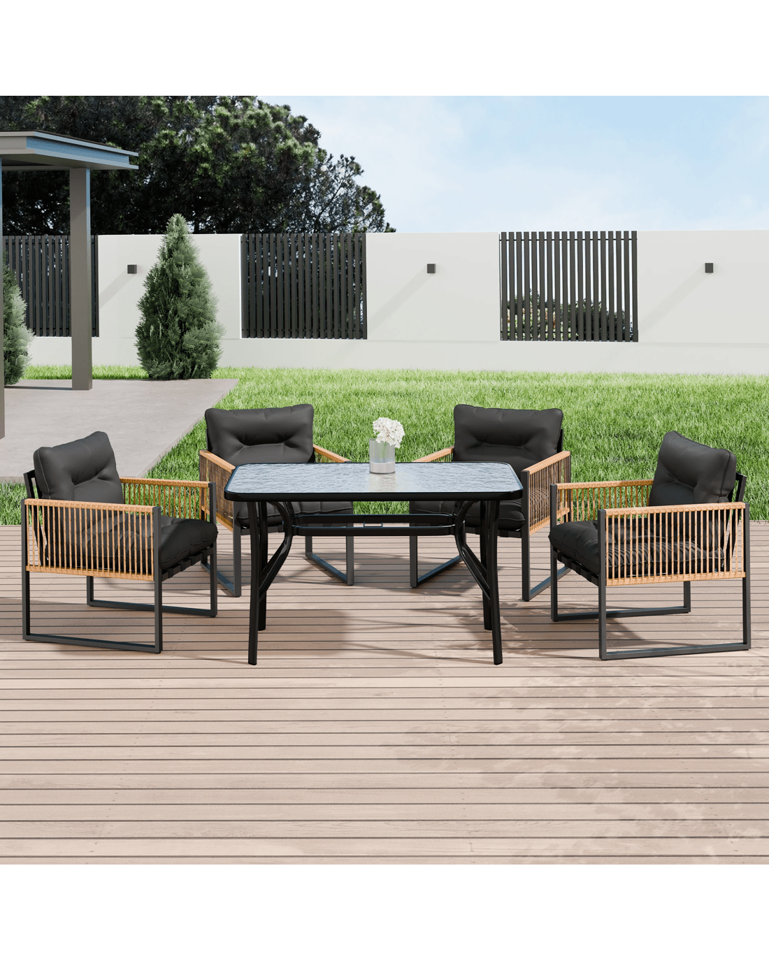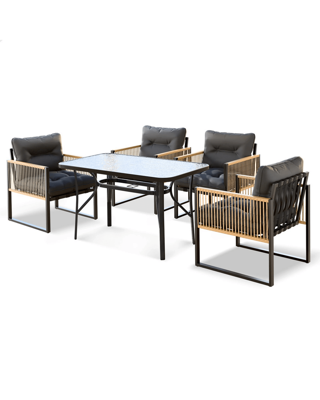 Alfordson Outdoor Dining Set Garden Table Lounge Chairs Patio Furniture - Black Grey