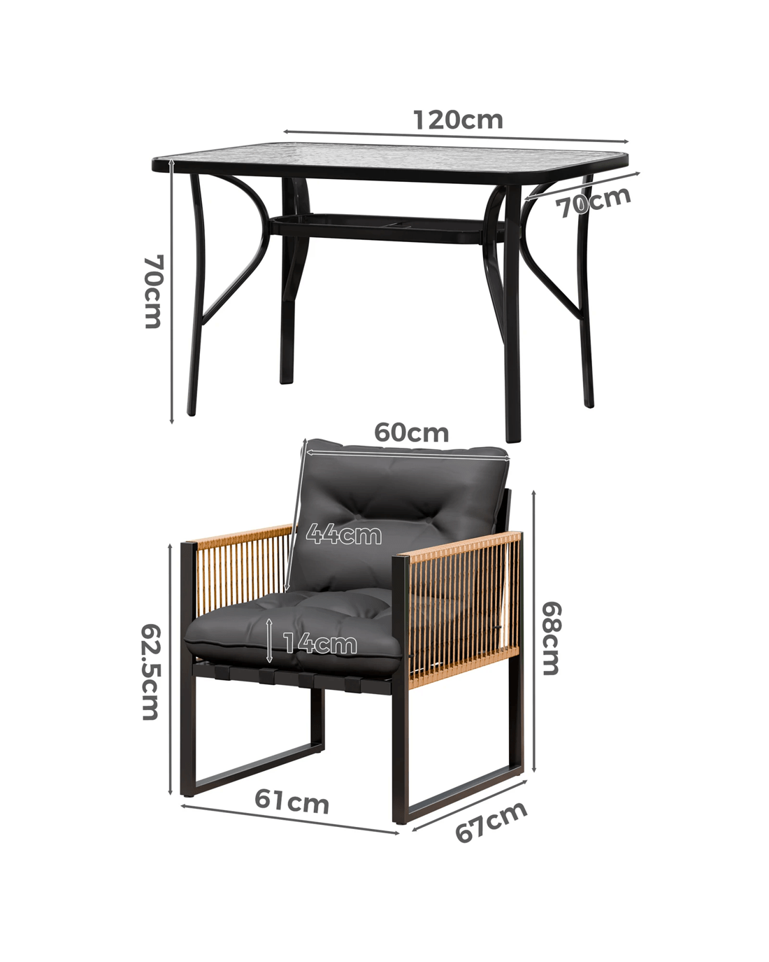 * Seat cushion thickness: 14 cm
