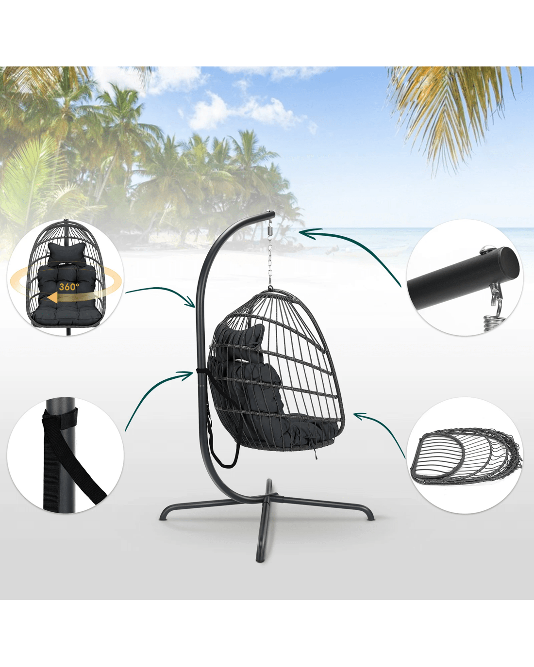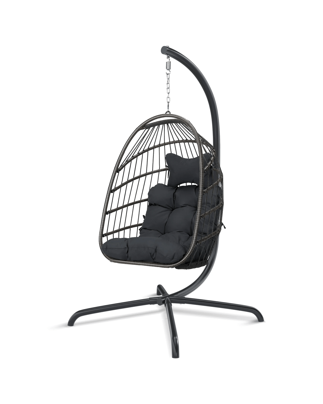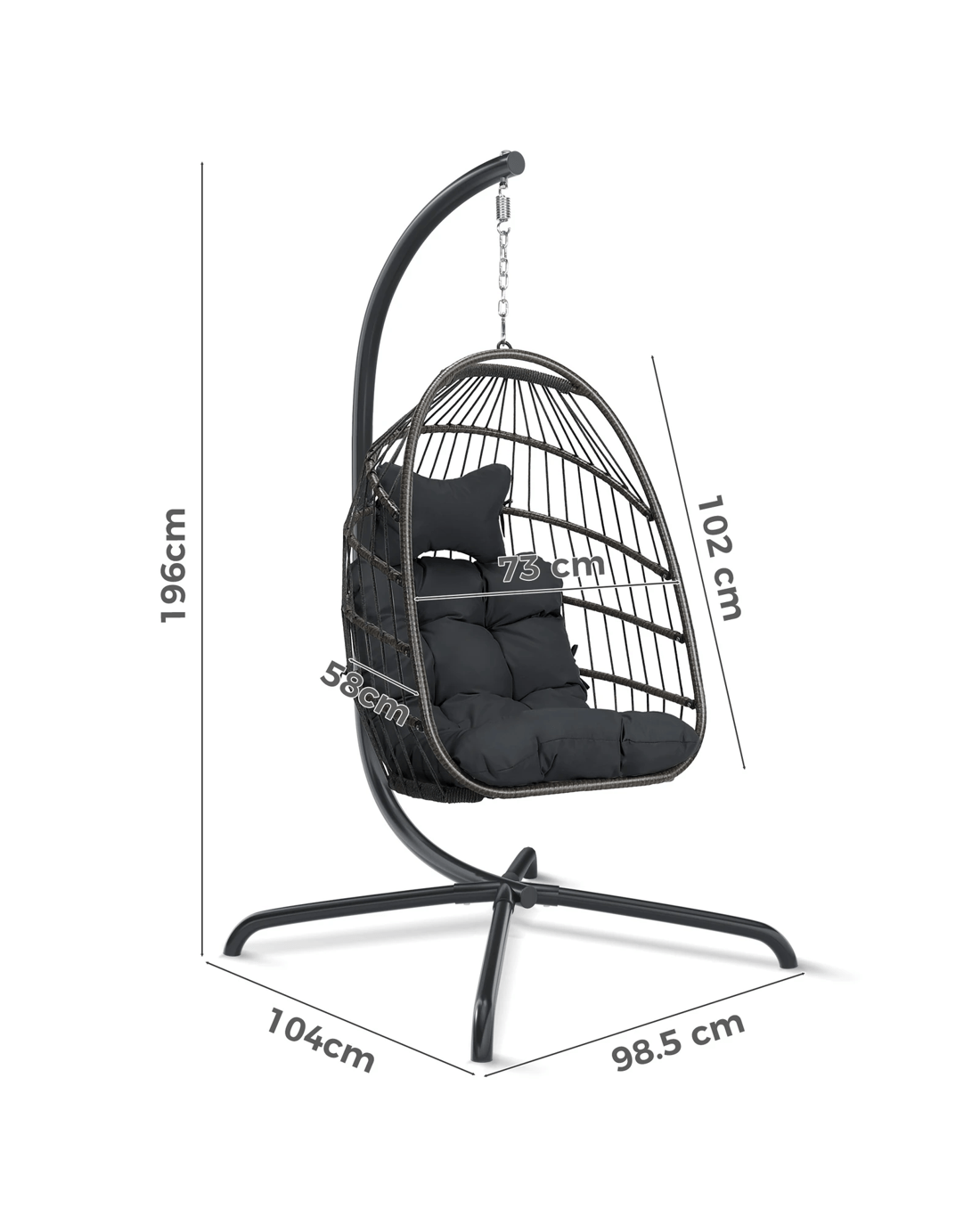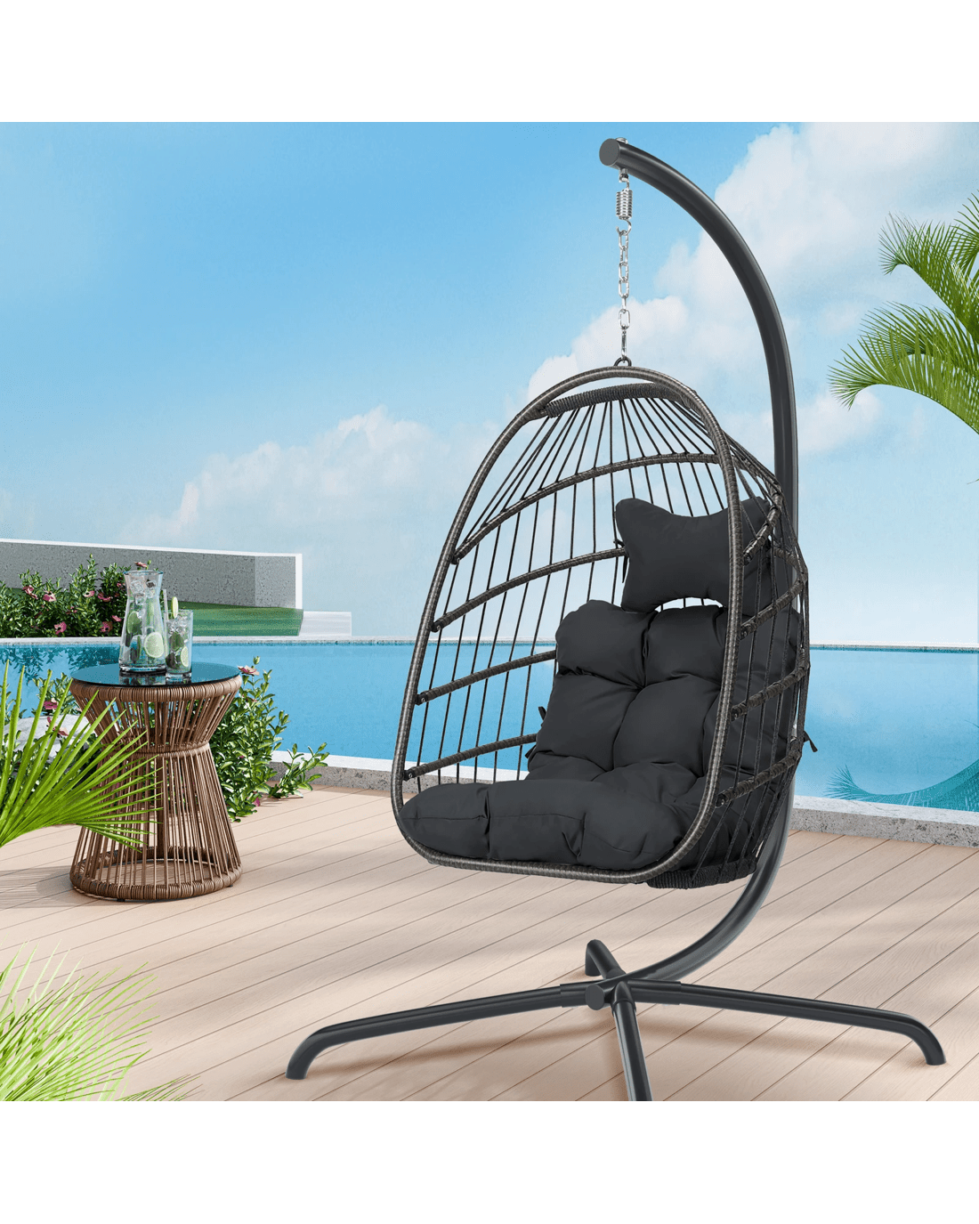 Alfordson Outdoor Egg Swing Chair Wicker Rattan Pod Foldable Seat - Grey