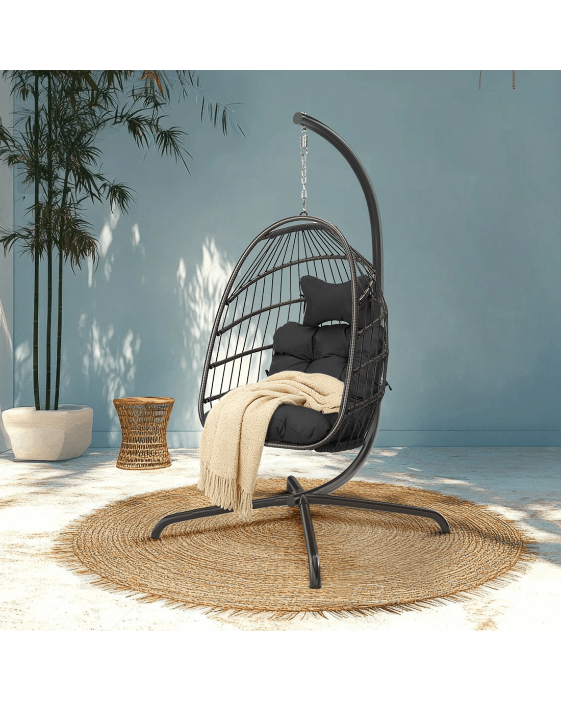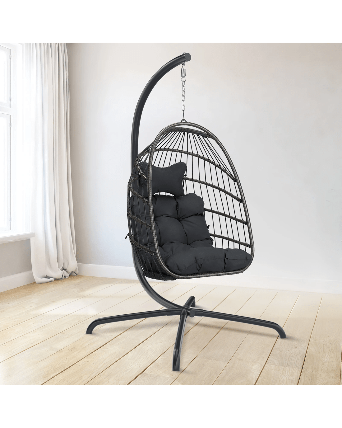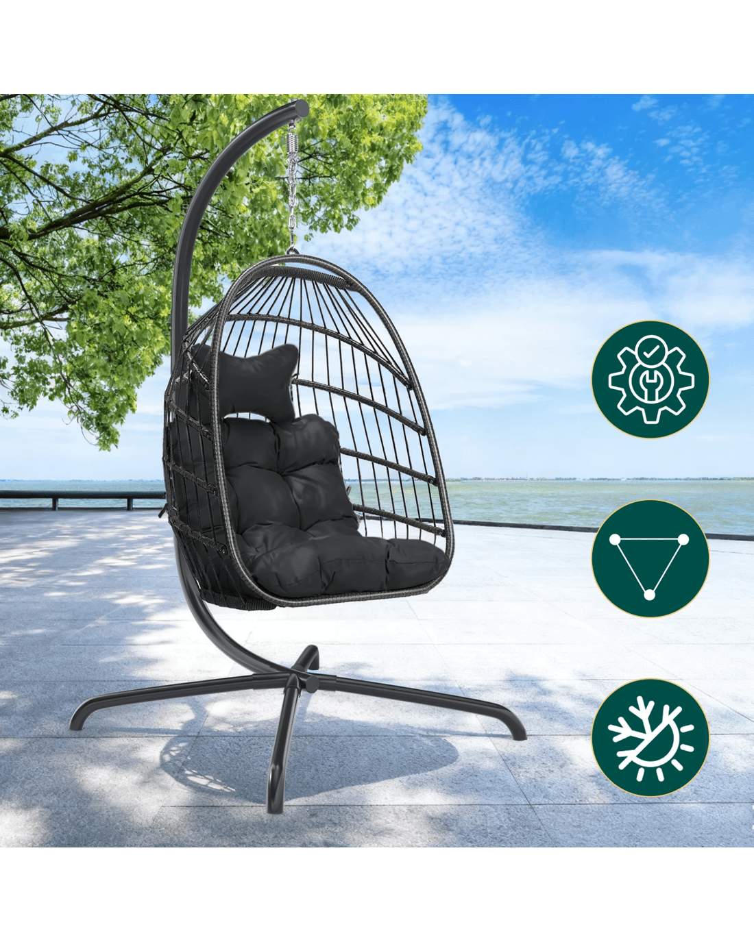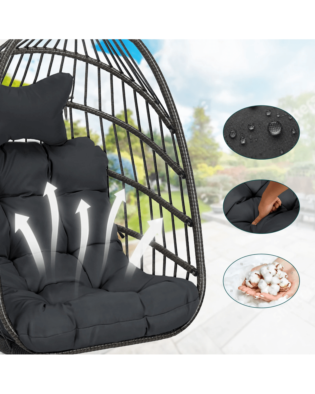 Alfordson Outdoor Egg Swing Chair Wicker Rattan Pod Foldable Seat - Grey