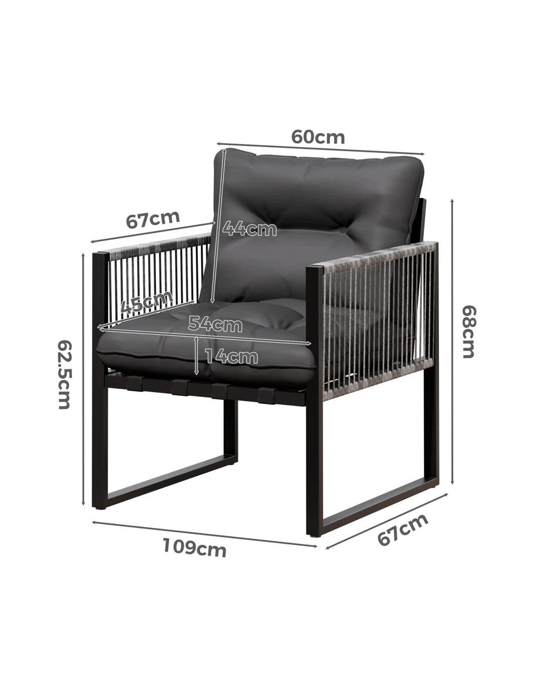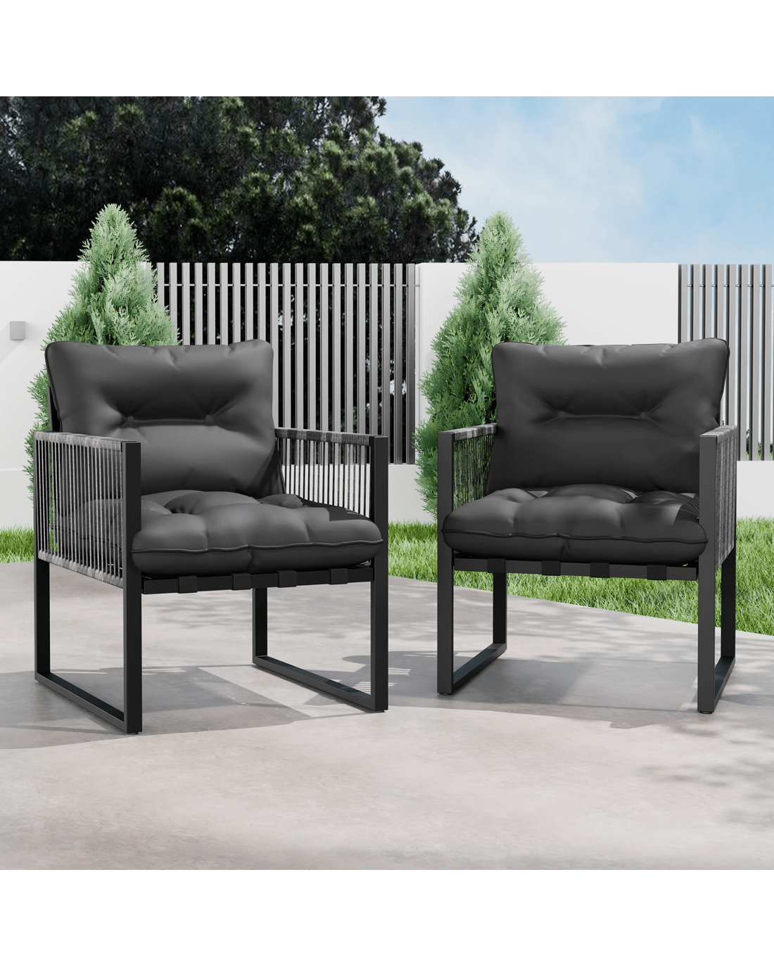 Alfordson Outdoor Furniture 2x Lounge Chairs Patio Garden Armchair Rattan Chair - Black Grey