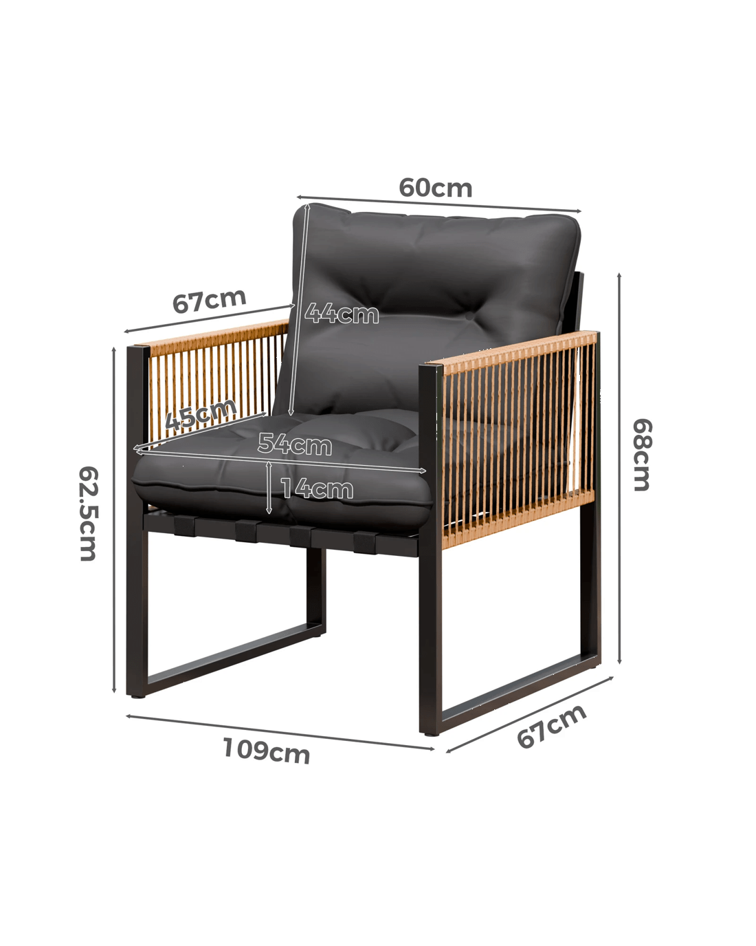 Alfordson Outdoor Furniture 2x Lounge Chairs Patio Garden Armchair Rattan Chair - Grey