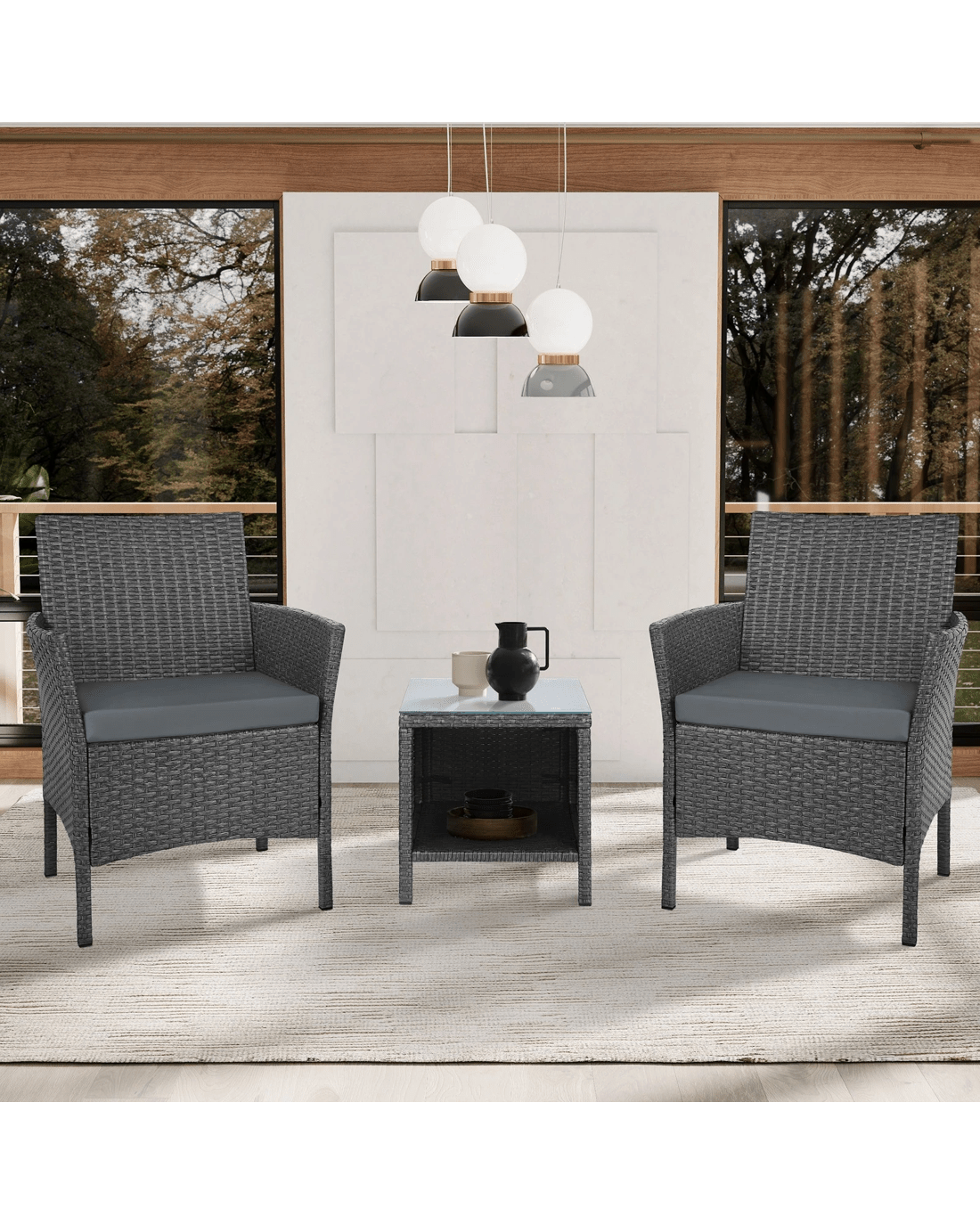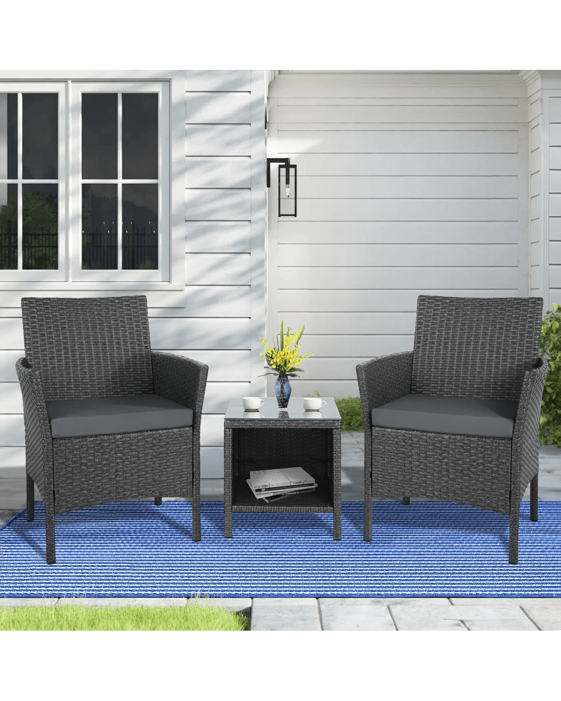 Alfordson Outdoor Furniture 3PCS Wicker Bistro Set Patio Chairs Table - Dark Grey