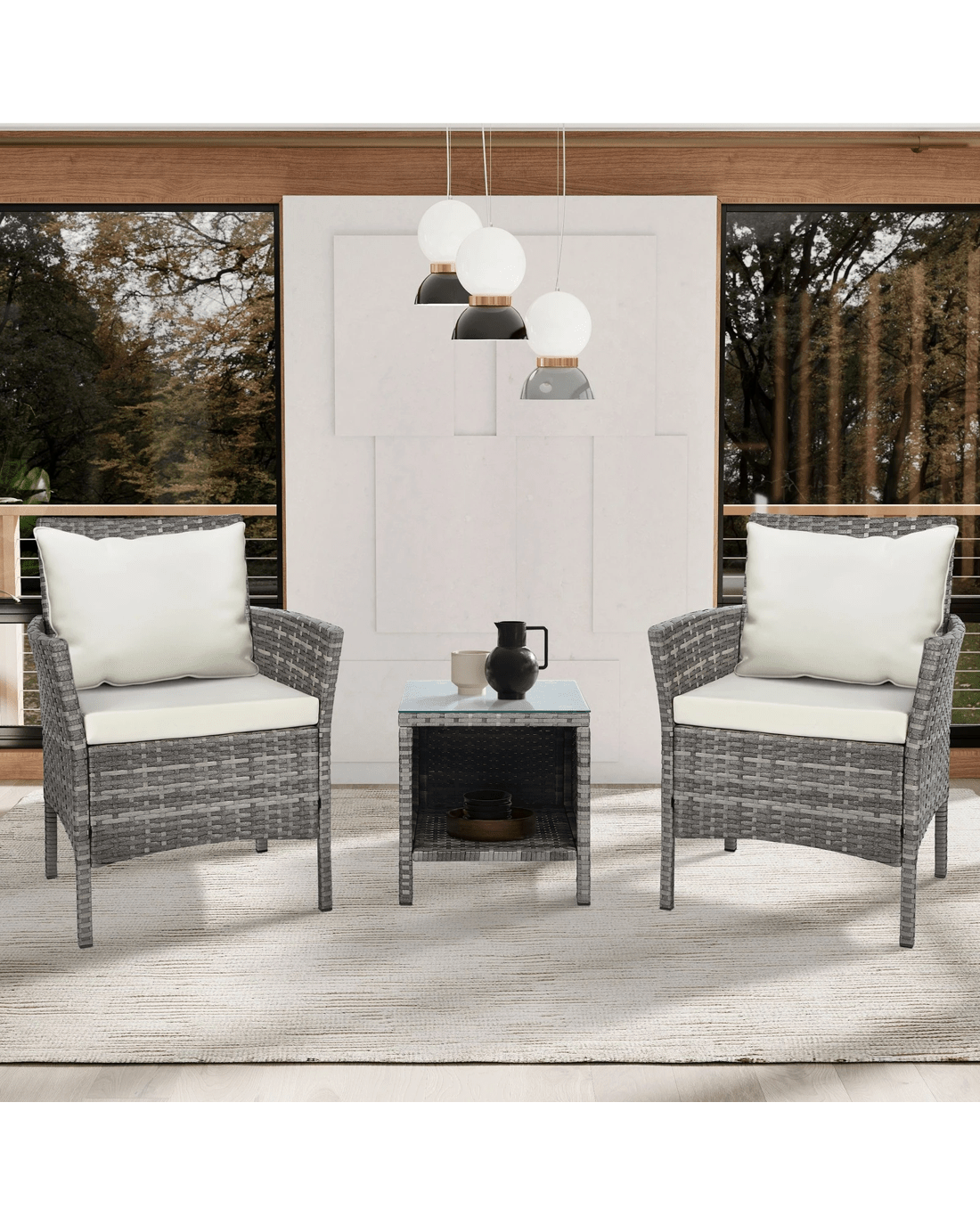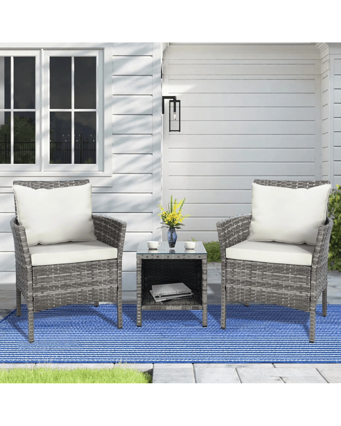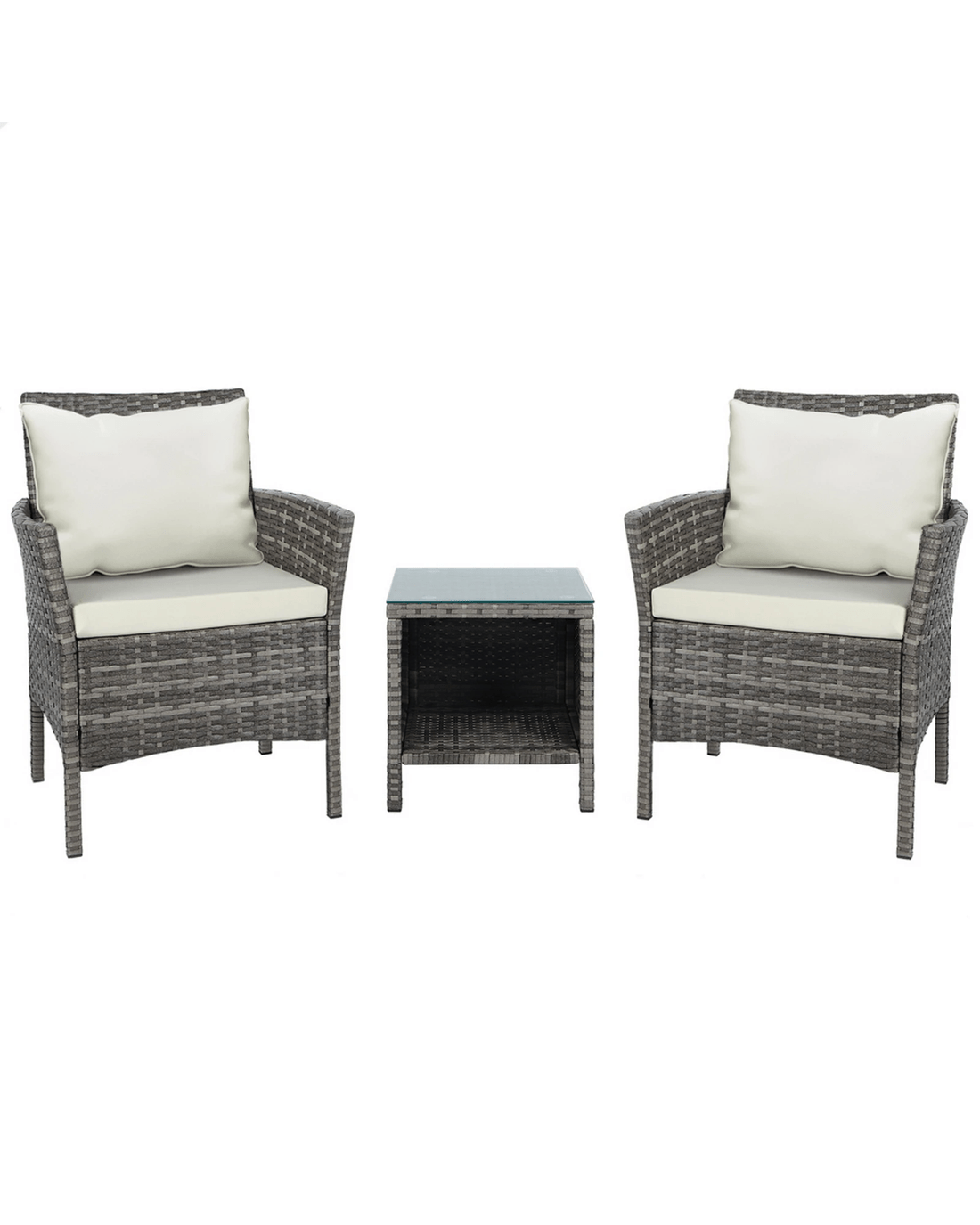 Alfordson Outdoor Furniture 3PCS Wicker Bistro Set Patio Chairs Table With Pillow - Grey