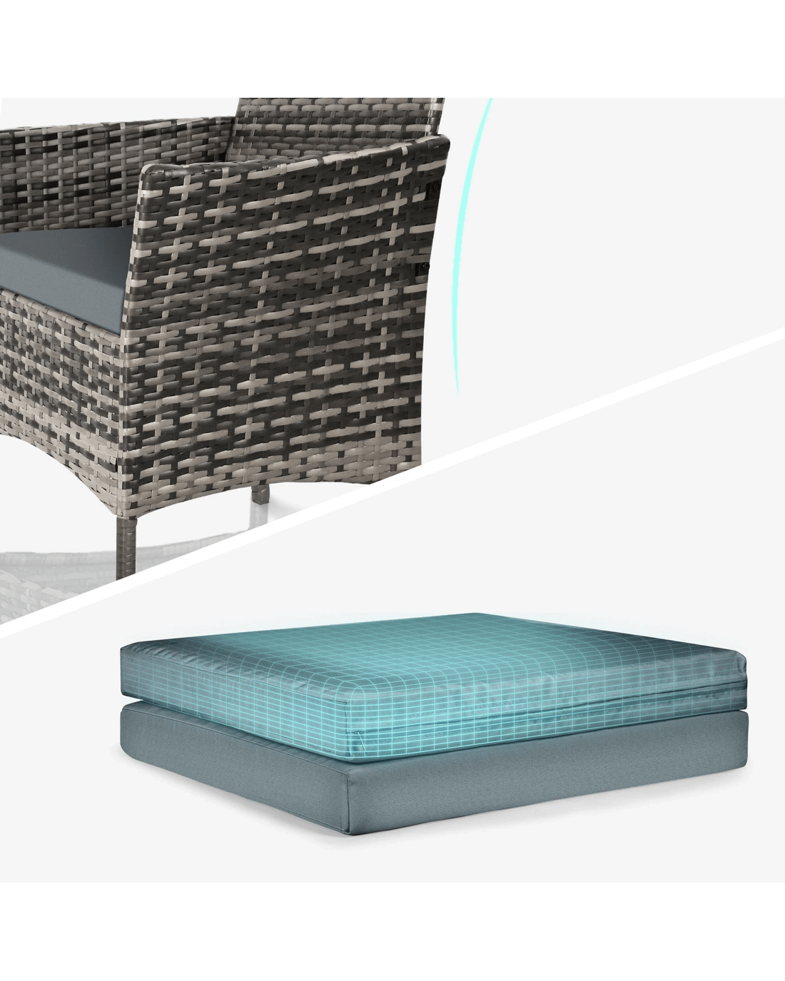 All-weather wicker - Woven from durable synthetic material that replicates the look and feel of wicker, and it is remarkably resistant to sun, rain, heat and cold. Sealed with clear lacquer, rest assured the wicker is absolutely moisture resistant. With our newly technology, colour stays vibrant with built-in UV protection, ensuring that your furniture remains in great condition even after years of Use -