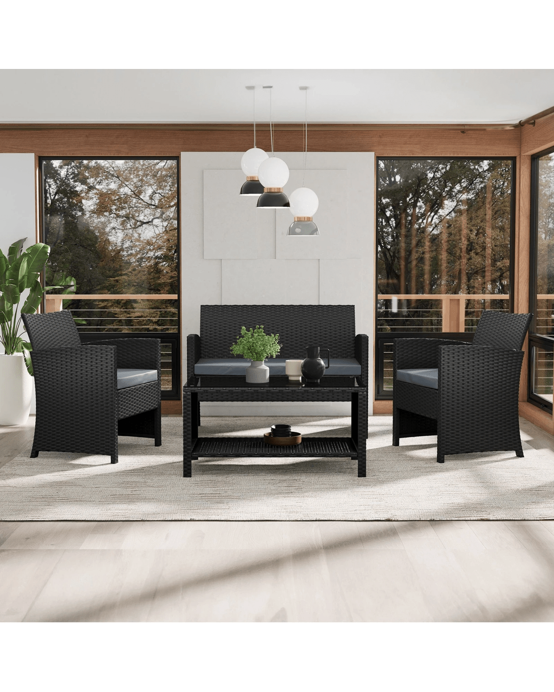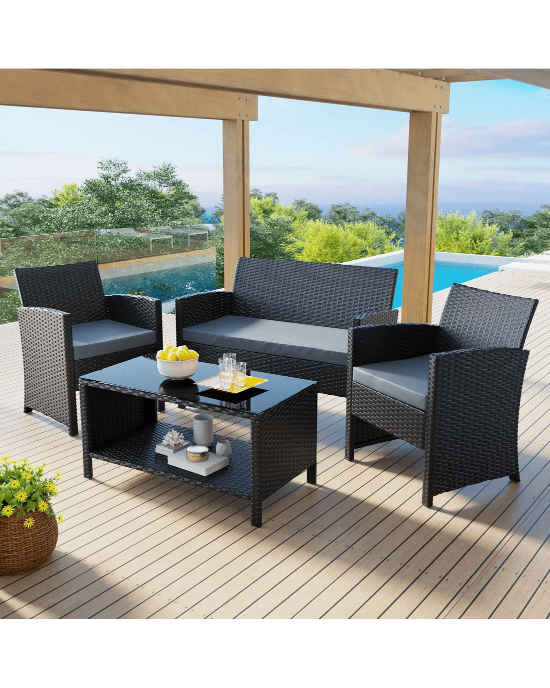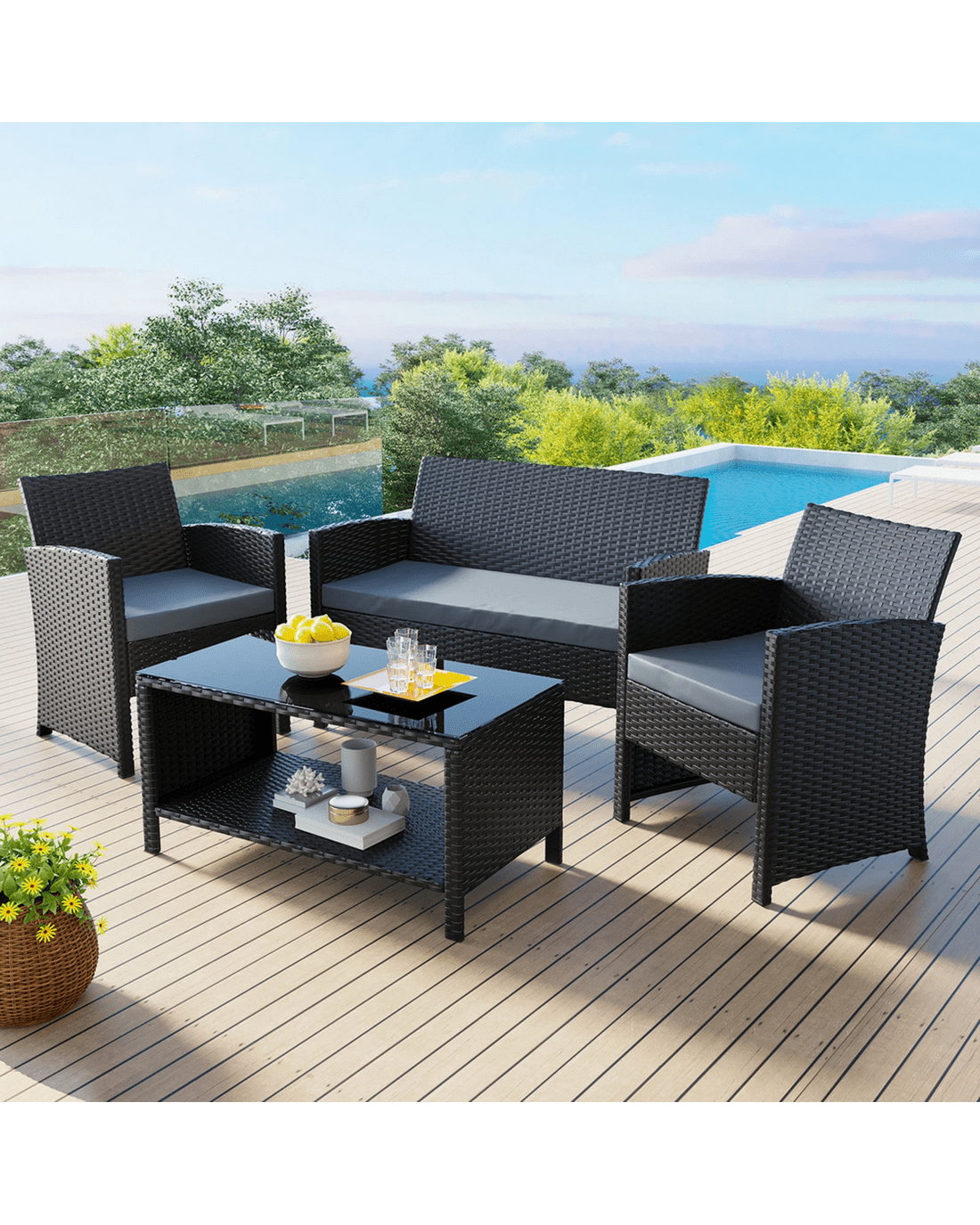 Alfordson Outdoor Furniture 4PCS Garden Patio Chairs Table Set Wicker - Black