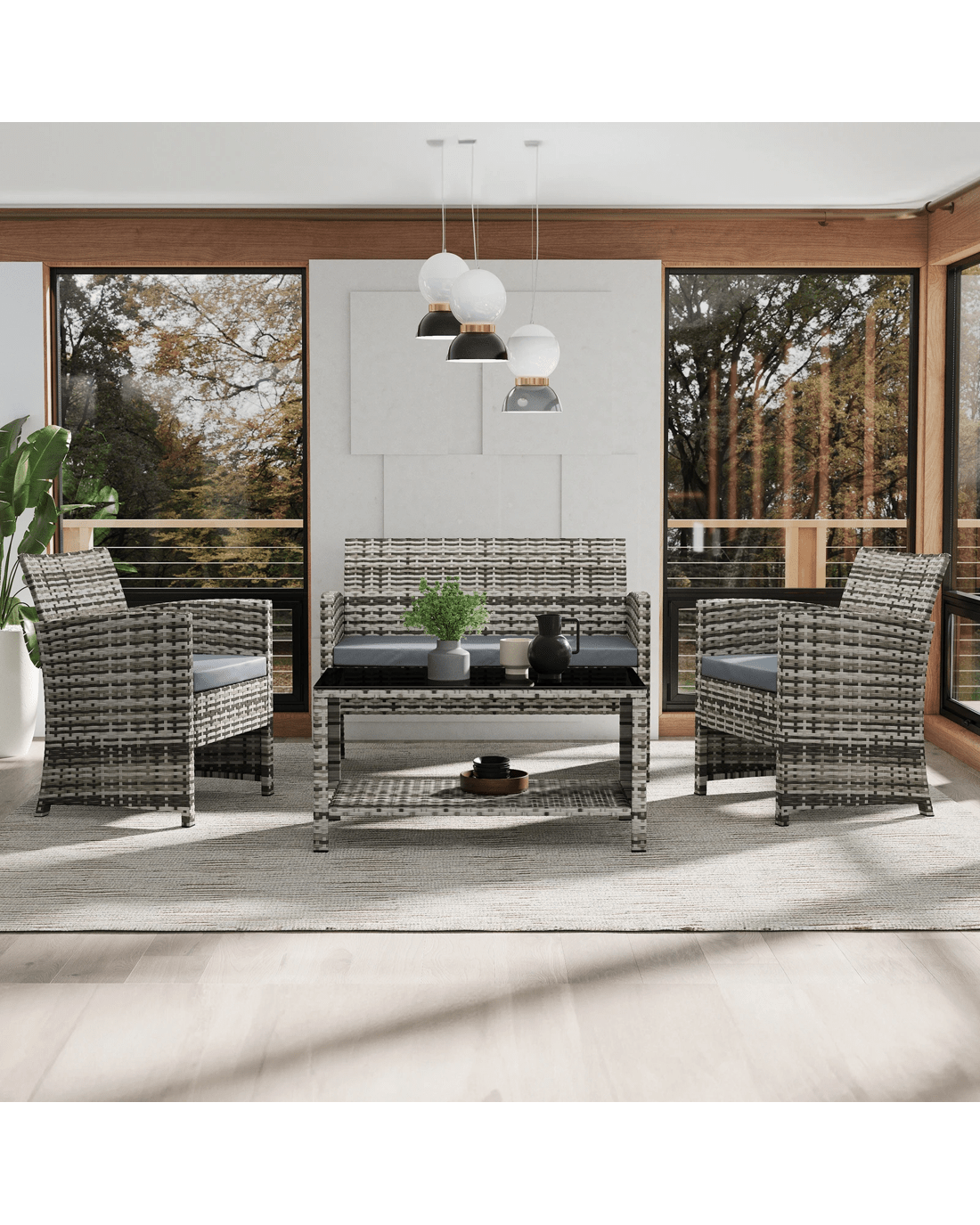 Outdoor and indoor chic - Our rattan outdoor furniture is suitable for both outdoor and indoor Use - ing you the flexibility to Use - herever you want. Whether you're looking to create a cozy corner in your living room or a relaxing outdoor space on your patio, our furniture set is perfect for you.