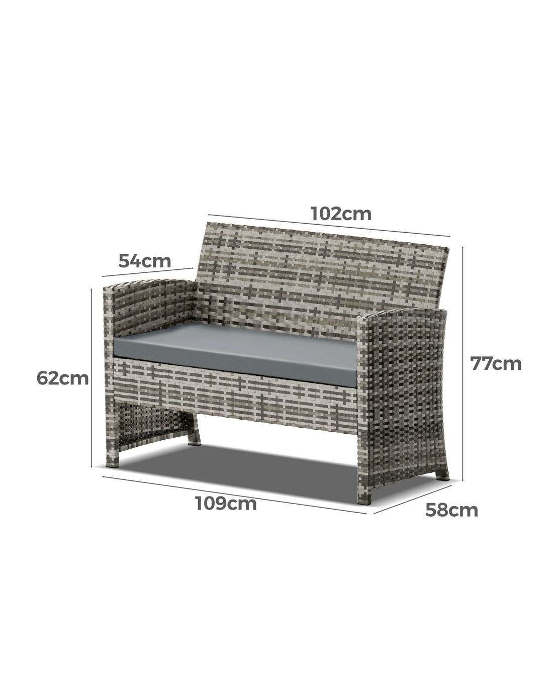 * 2-Seater lounge dimensions: 109 cm x 58 cm x 77 cm