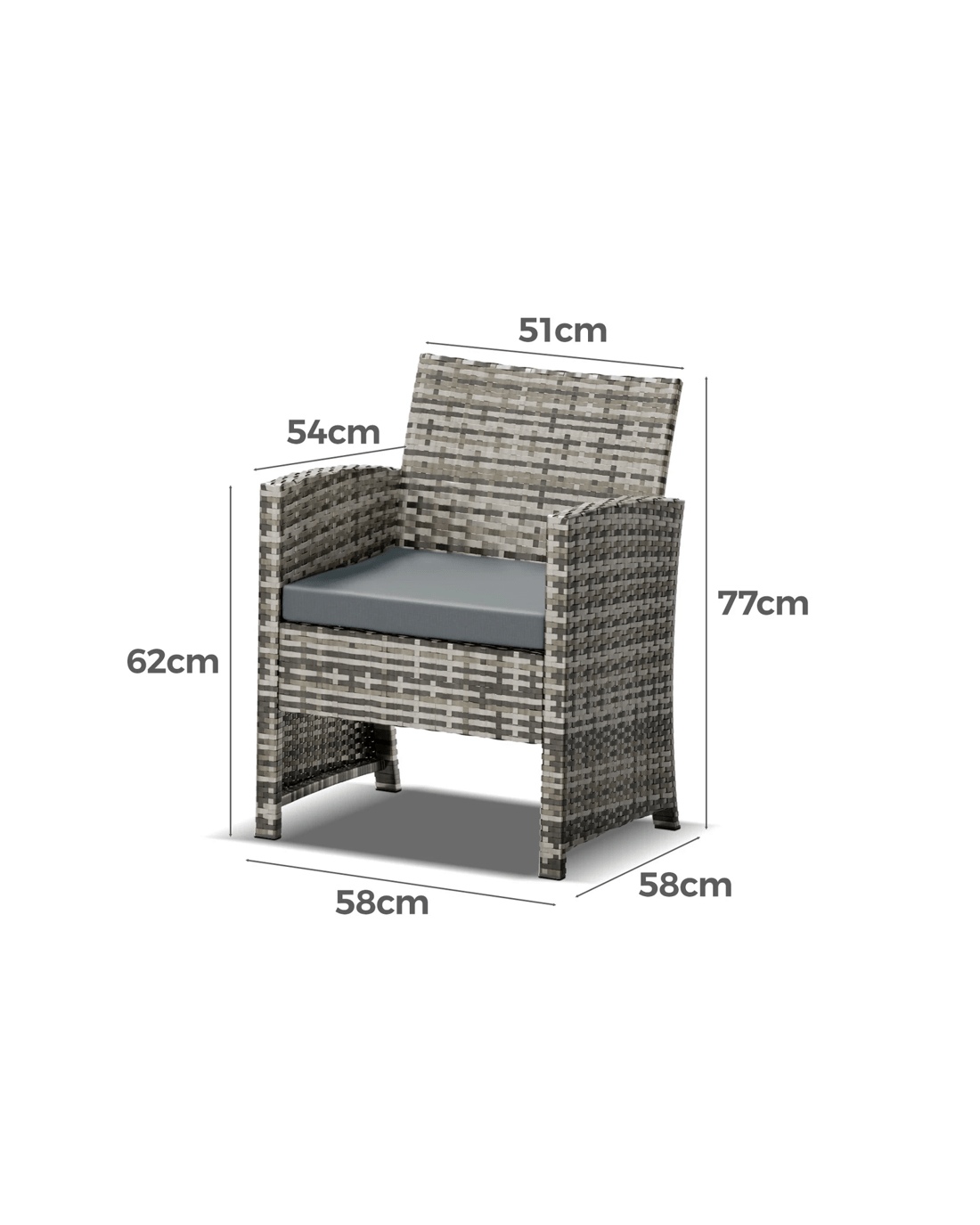 * Single armchair dimensions: 58 cm x 58 cm x 77 cm