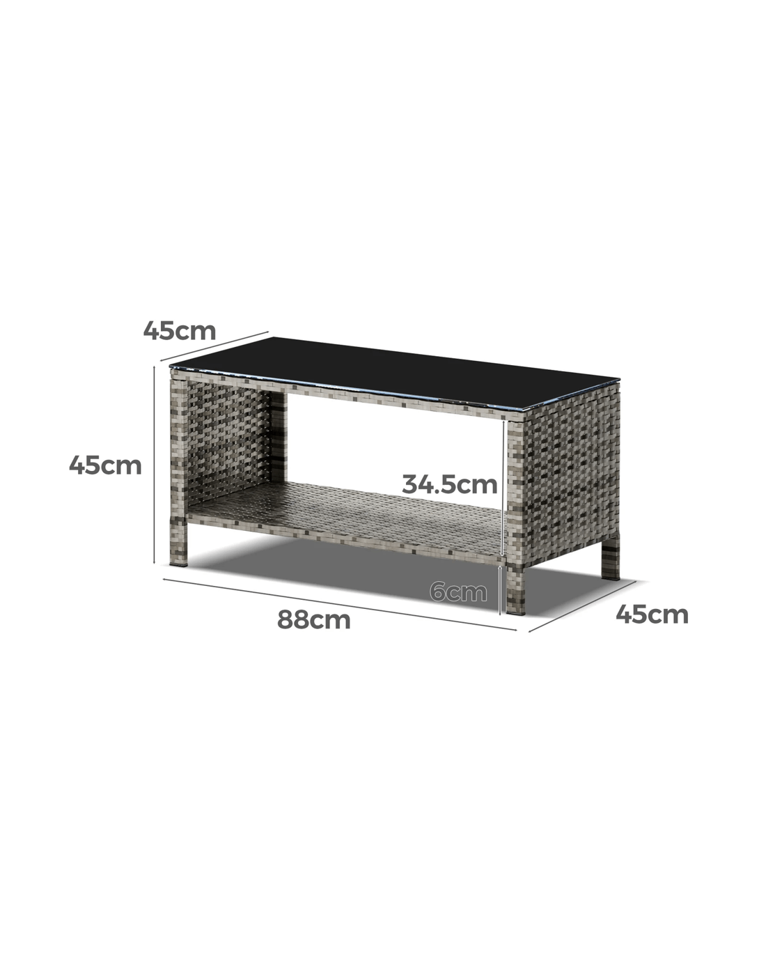 * Coffee table dimensions: 88 cm x 45 cm x 45 cm