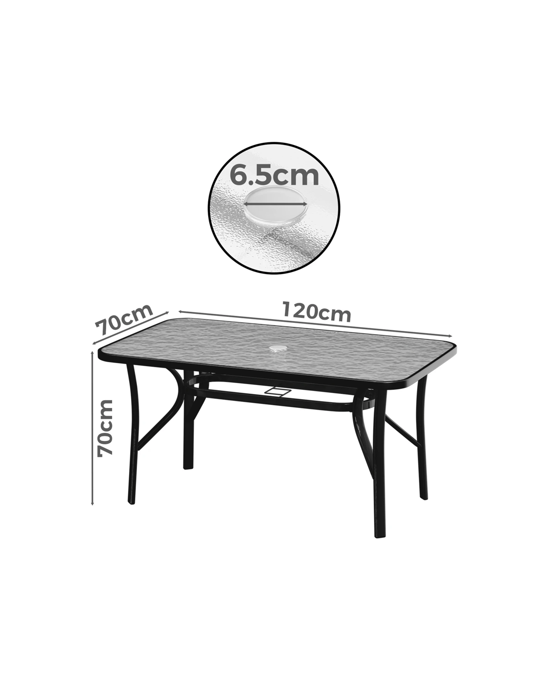 * Built-in 6.5cm dia parasol hole comes with cover