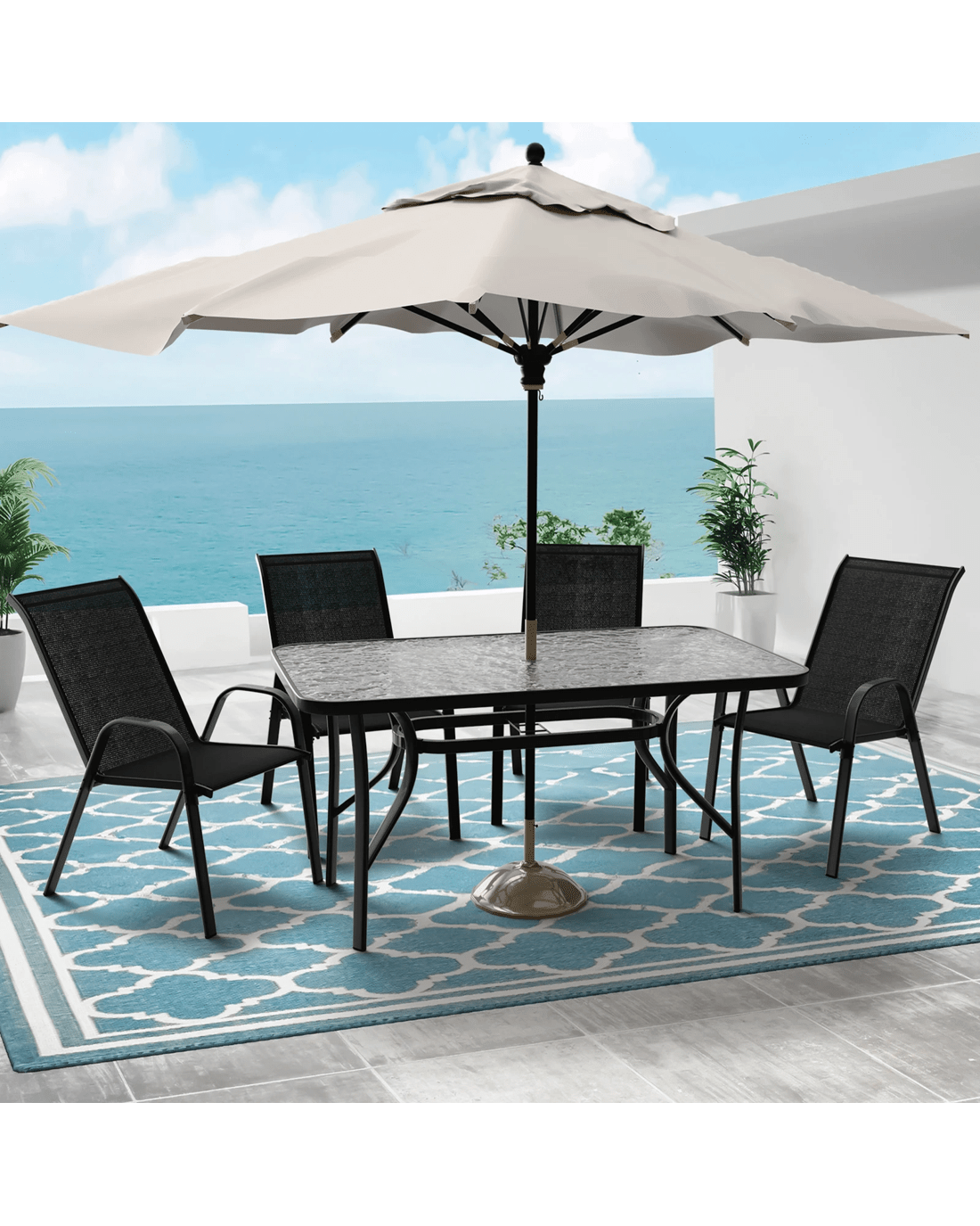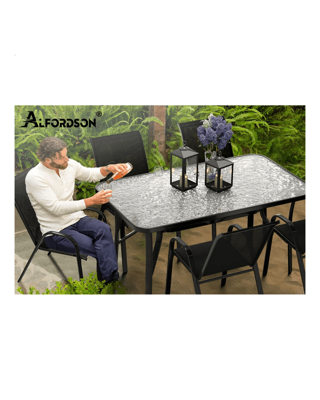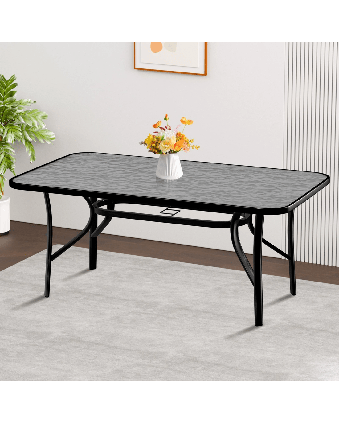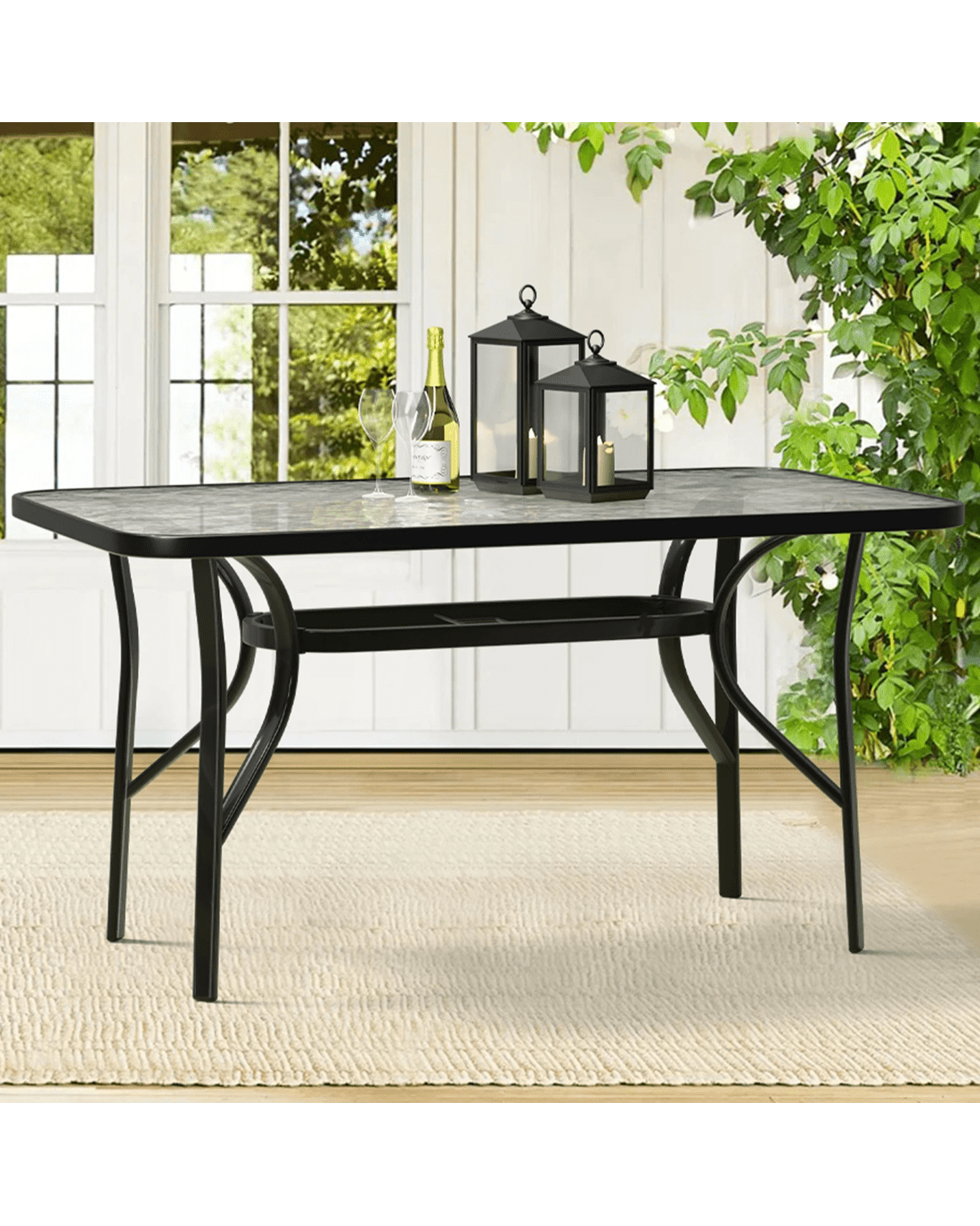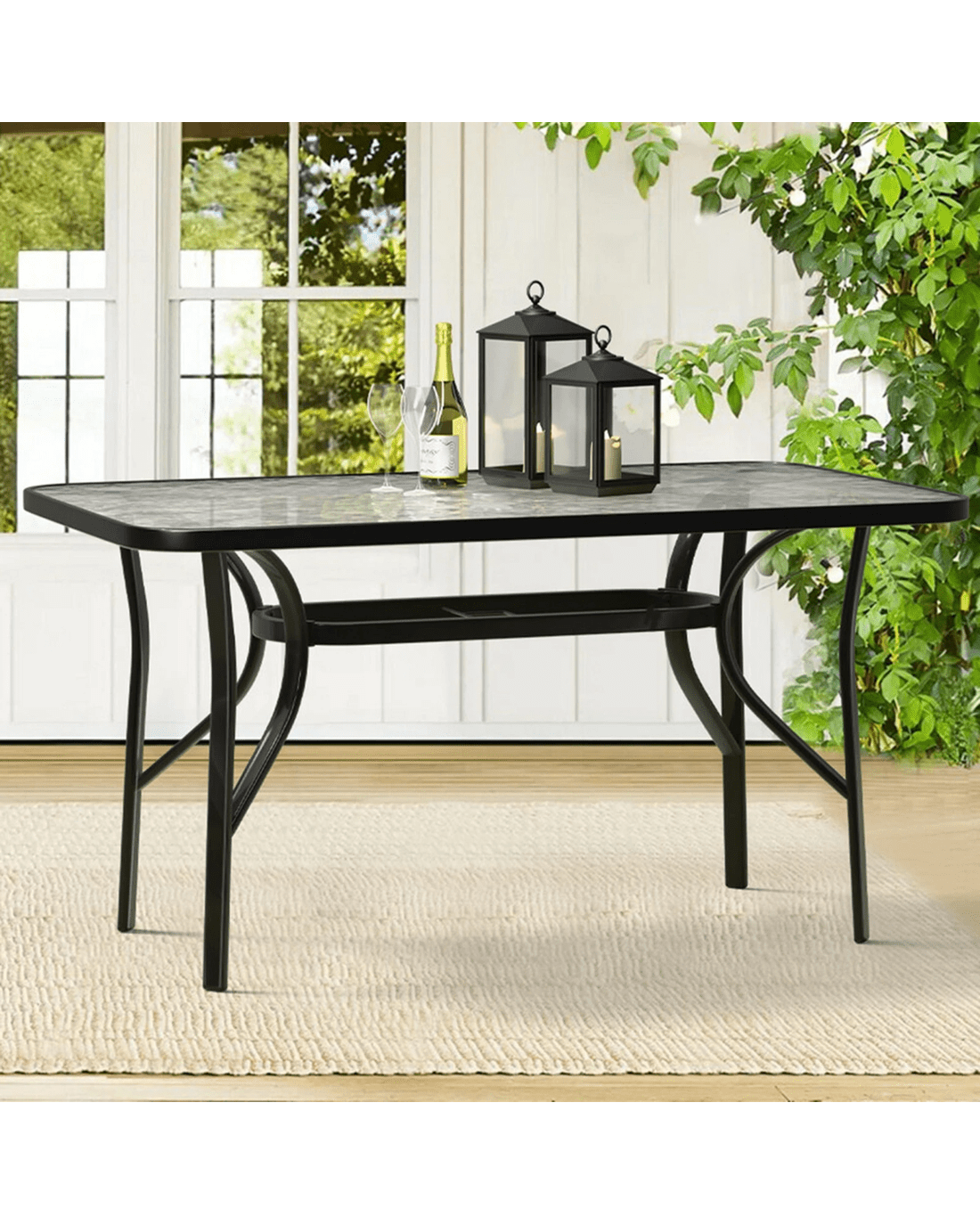 Alfordson Outdoor Furniture Patio Dining Table Garden 140CM X 80CM Glass - Black