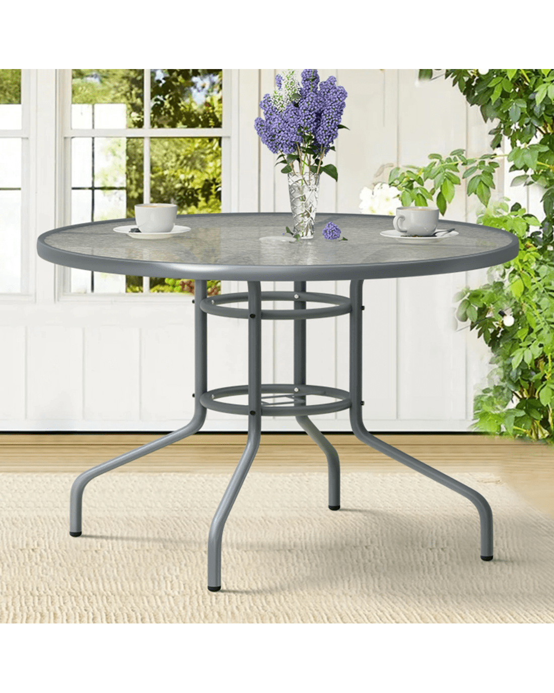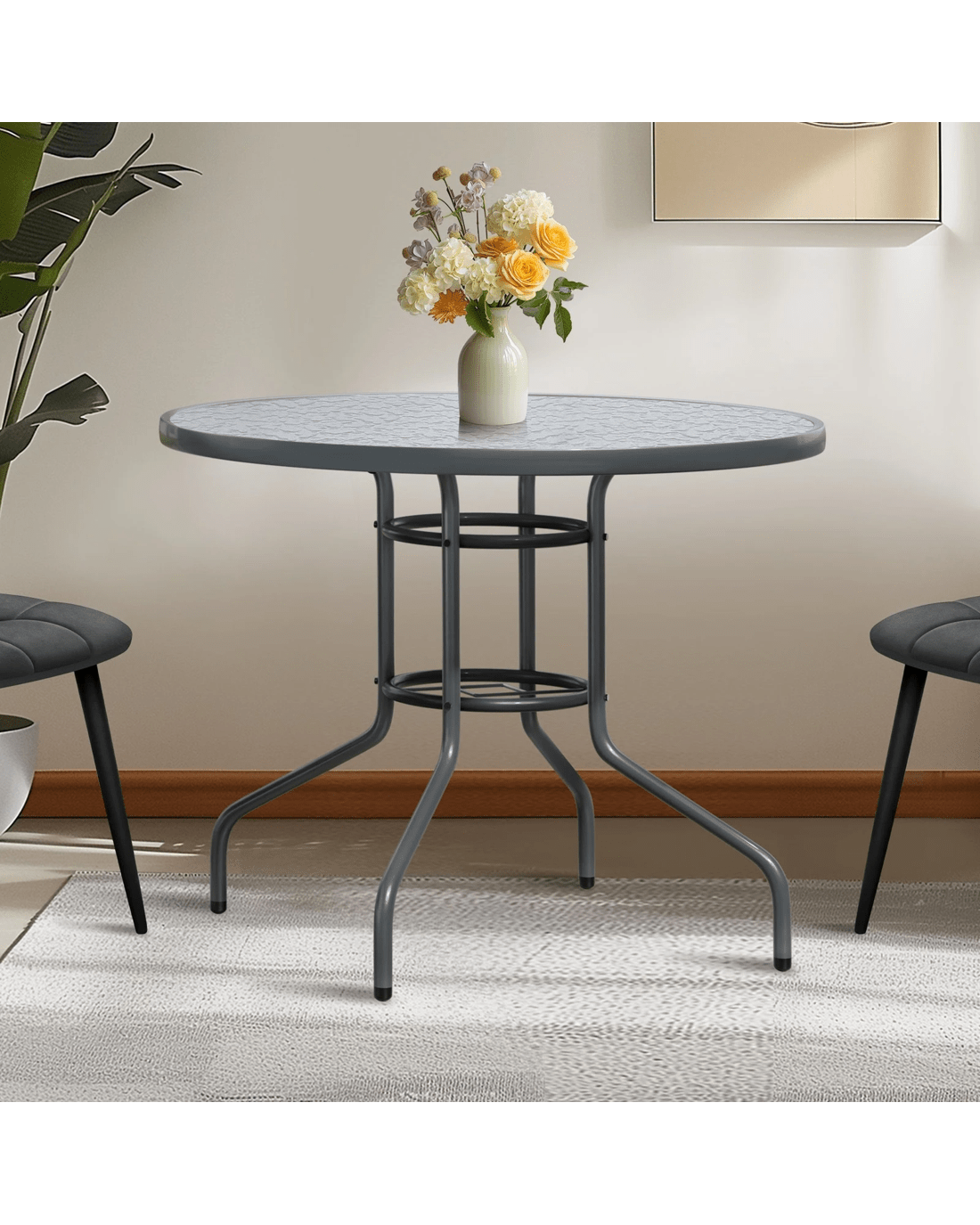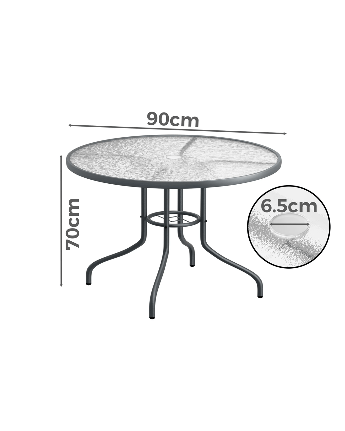 Alfordson Outdoor Furniture Patio Dining Table Garden 90CM Round Glass - Grey