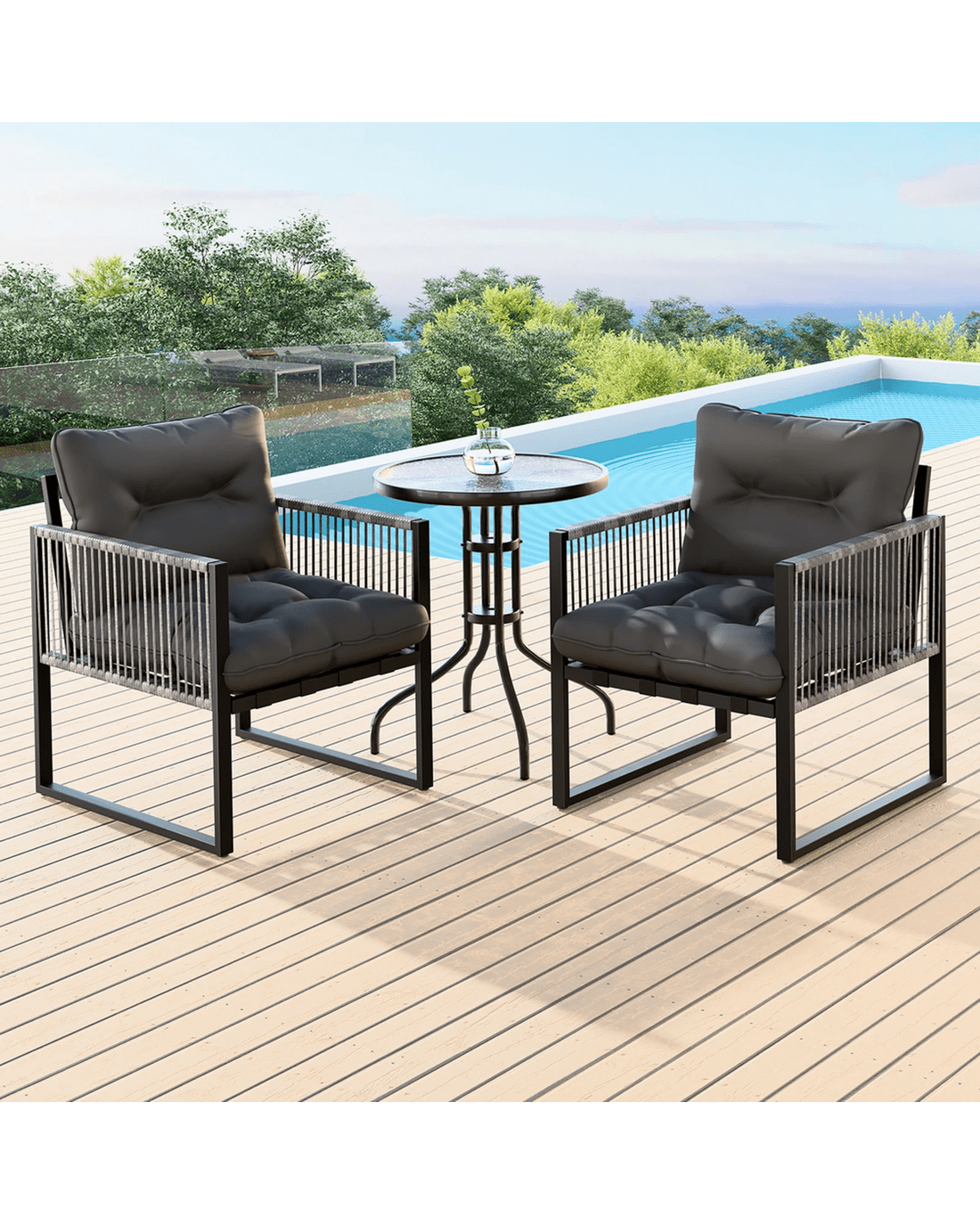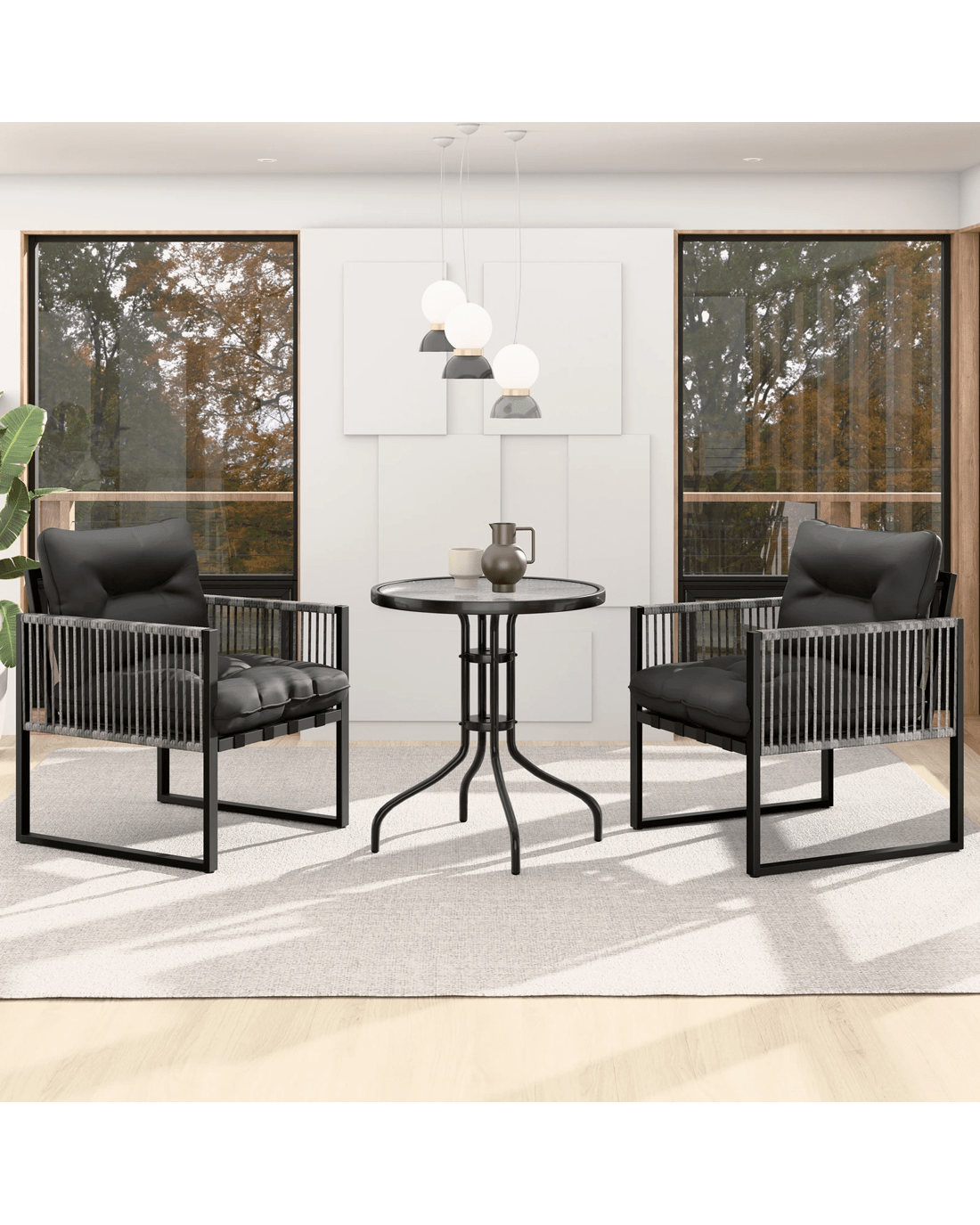 Outdoor and indoor chic - Our table and chair set is suitable for both outdoor and indoor Use - ing you the flexibility to Use - herever you want. Whether you're looking to create a cozy corner in your living room or a relaxing outdoor space on your patio, our furniture set is perfect for you.