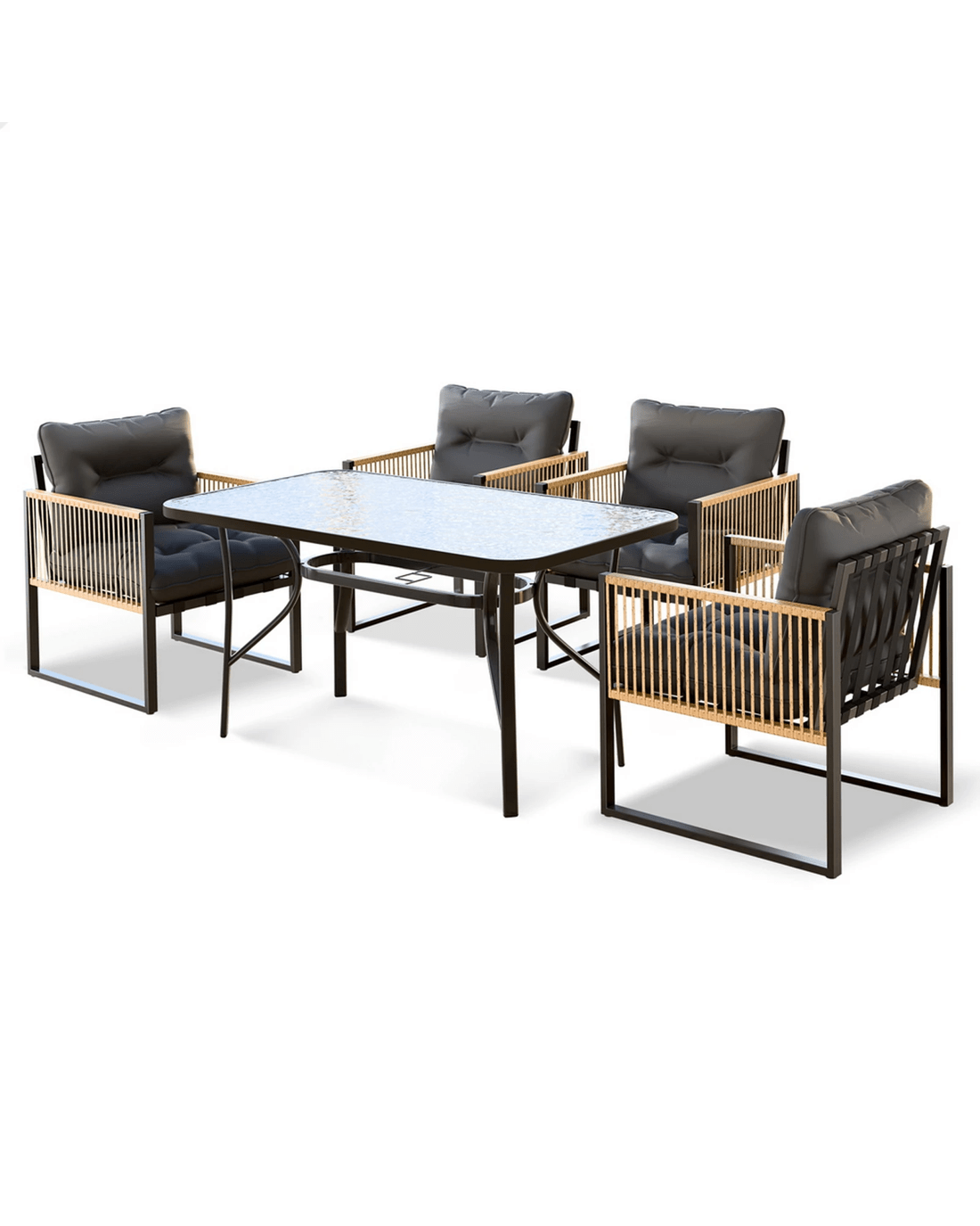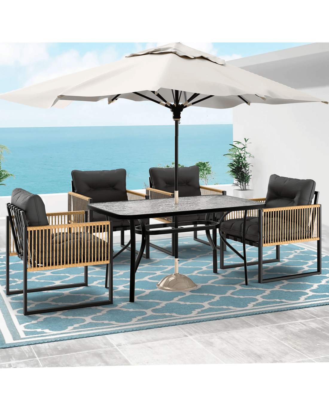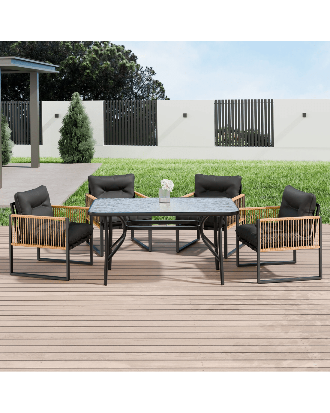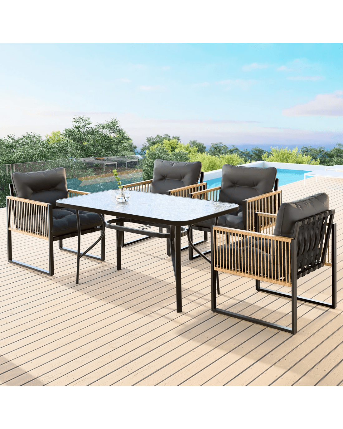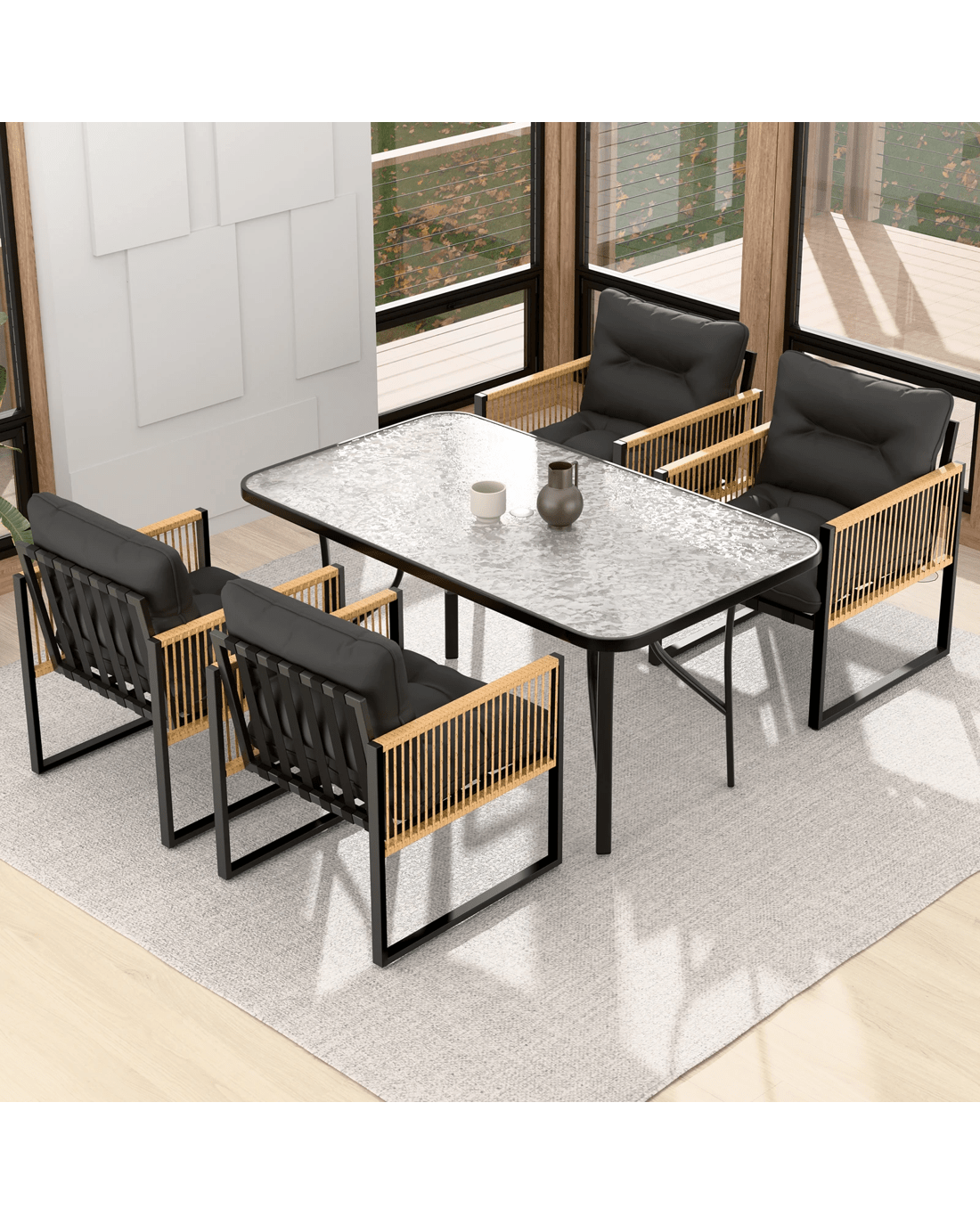 Alfordson Outdoor Furniture Setting Patio Dining Table Chair Set Wicker Glass - Black Grey
