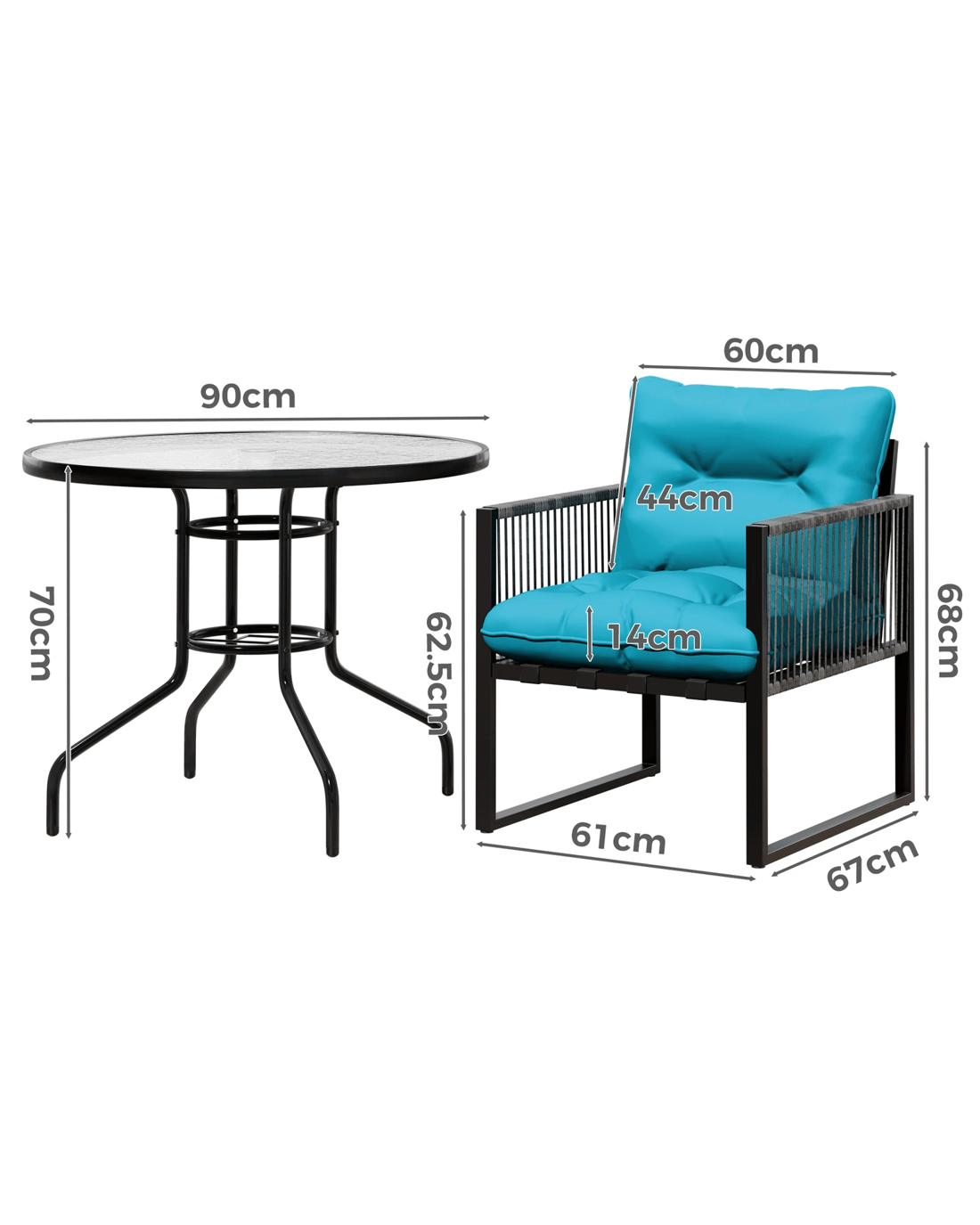 Sold by Aussie Union GroupAlfordson Outdoor Lounge Set Table and Chairs Patio Furniture Glass Armchair - Blue