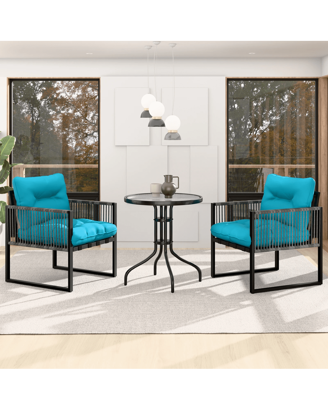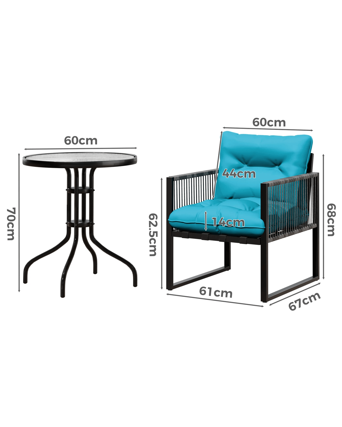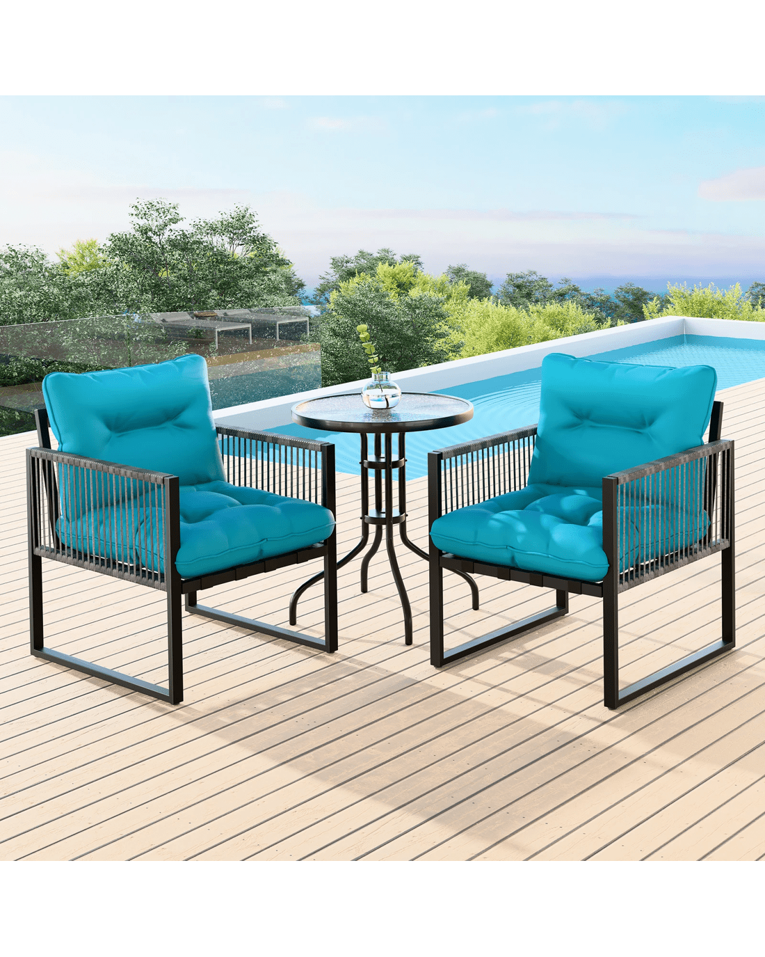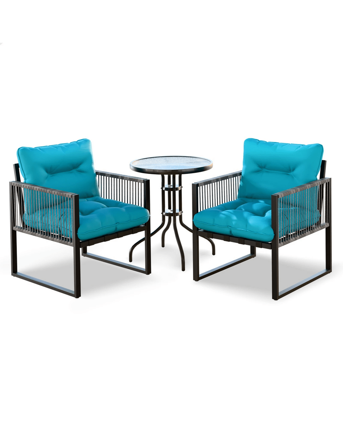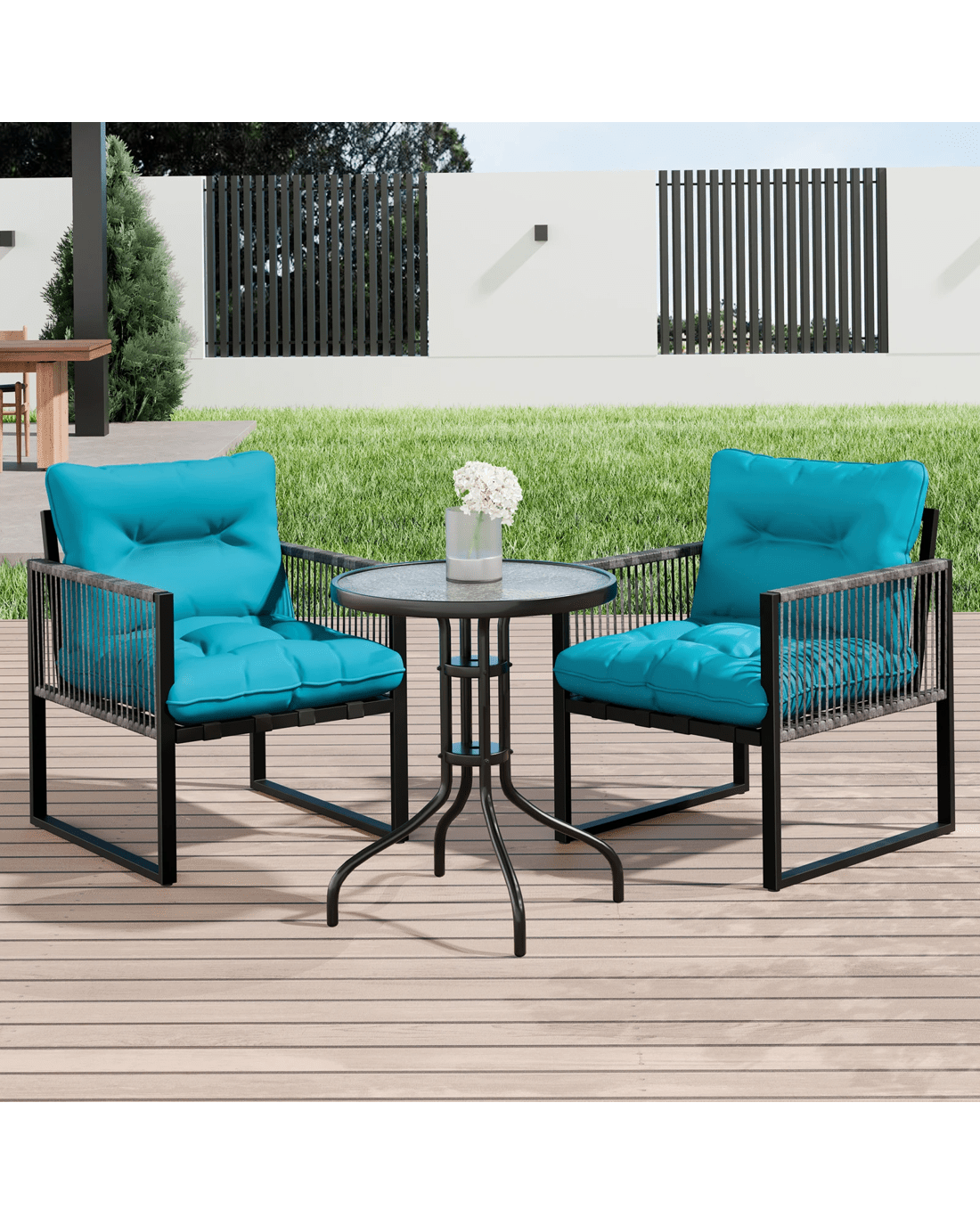 Alfordson Outdoor Patio Furniture Set Side Table Lounge Chairs Glass Armchair - Blue