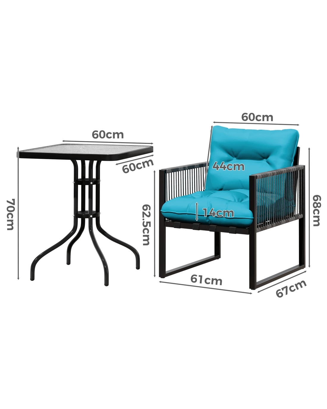 Sold by Aussie Union GroupAlfordson Outdoor Patio Furniture Set Side Table Lounge Chairs Glass Square - Blue