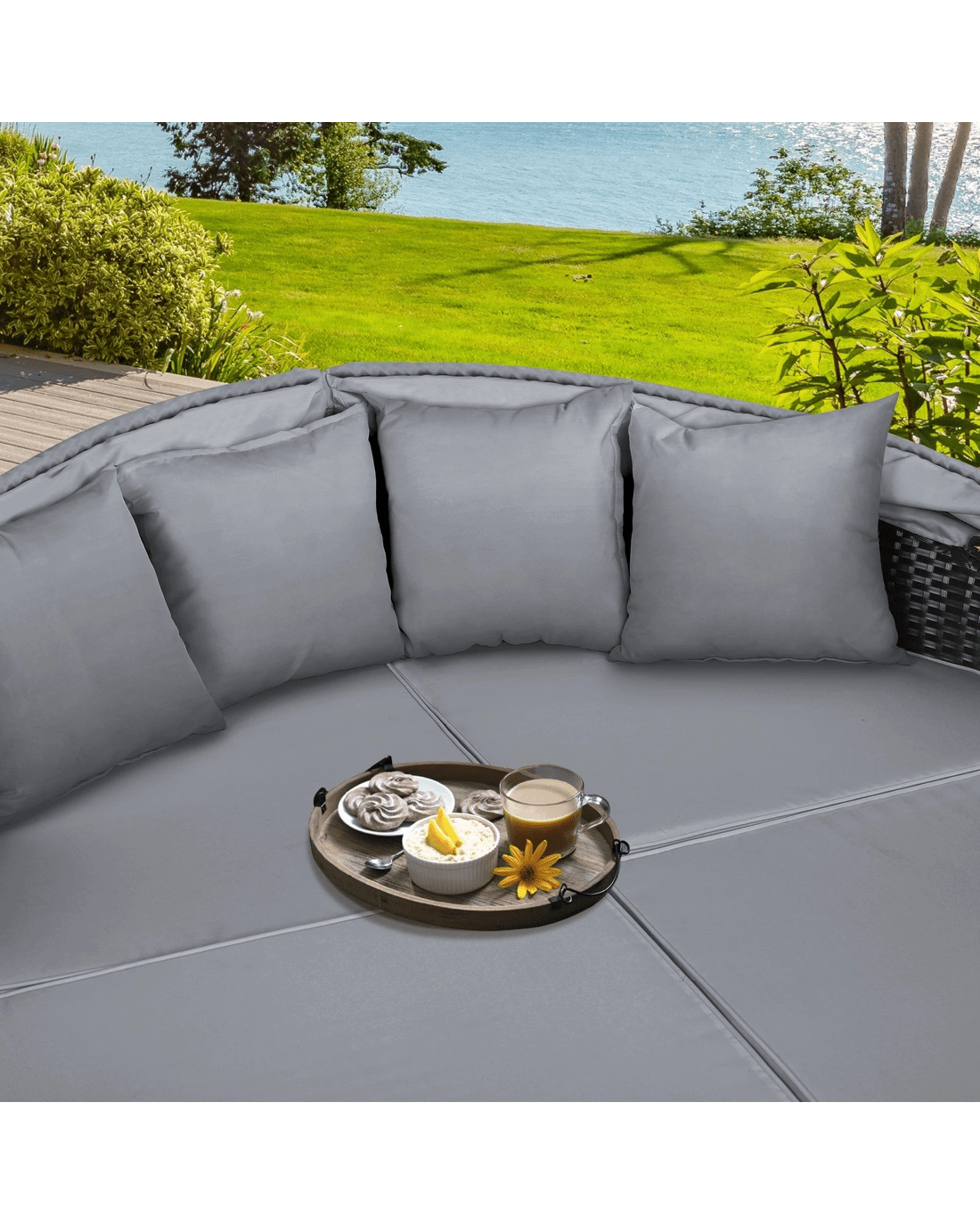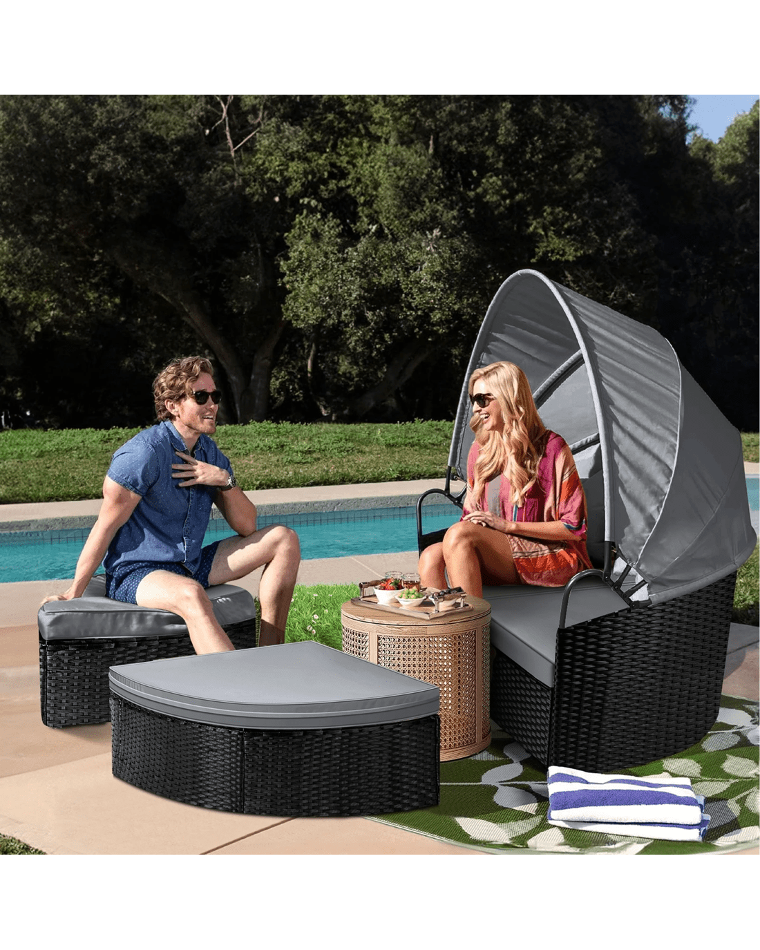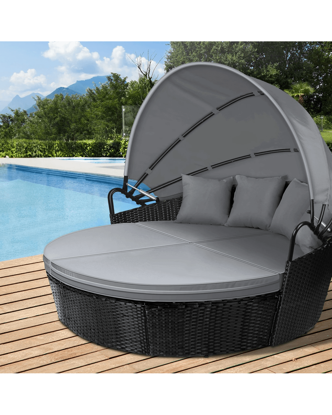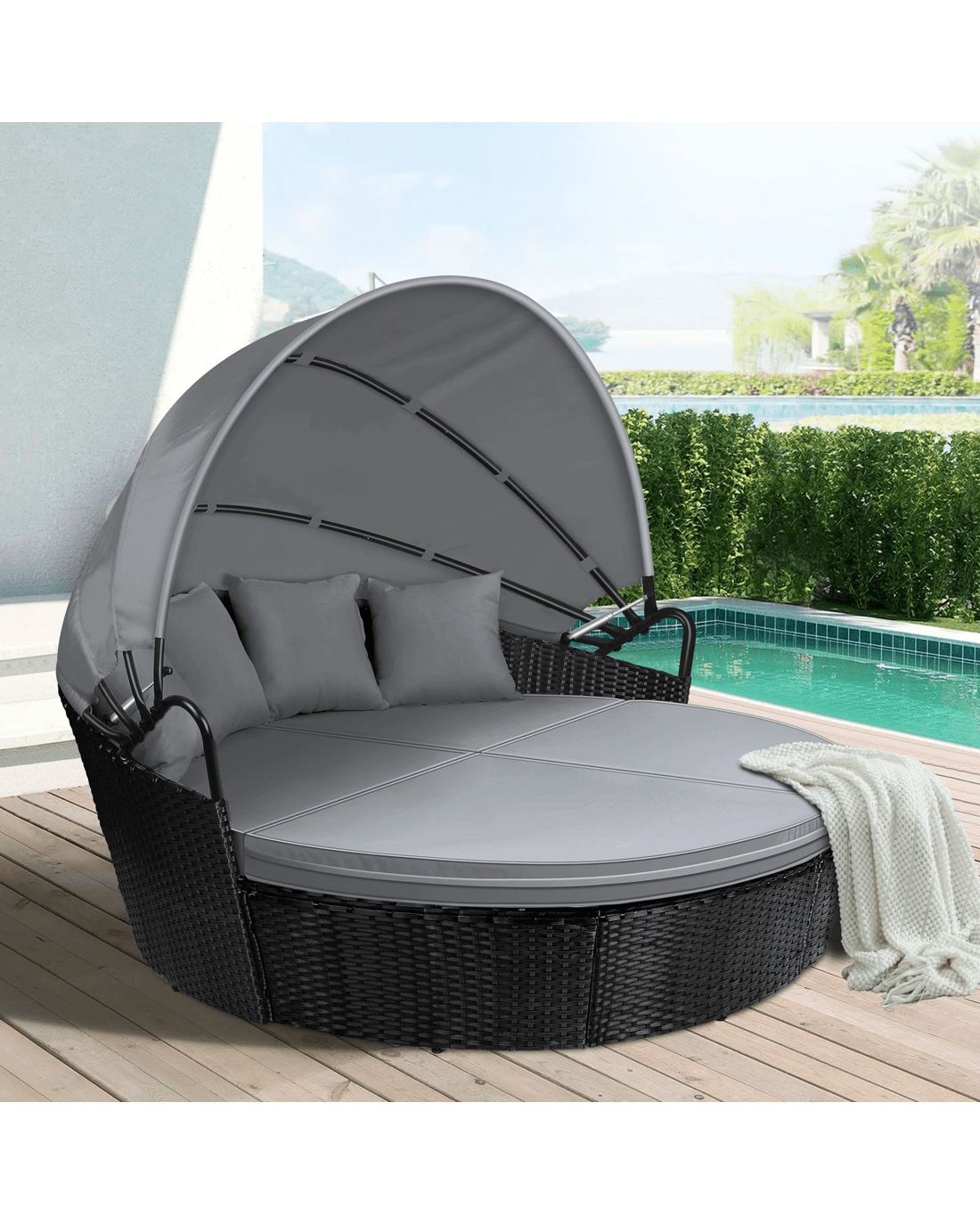 Retractable Canopy - Each patio round bed will be equipped with a folding water-proof canopy. With the gas lift hinges, it could be fully opened for tanning, or pulled up to 90°to keep you in the shade to do some reading. You could adjust it as per your needs to achieve the best condition and enjoy the outdoor time.