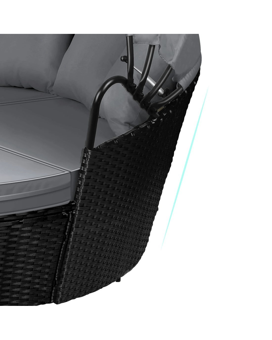 Alfordson Outdoor Sun Lounge Day Bed Wicker Furniture Sofa Bed Garden 3PCS - Black
