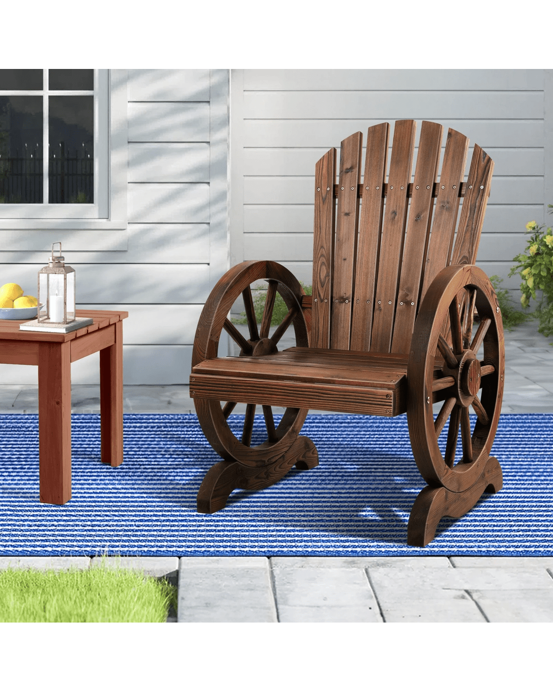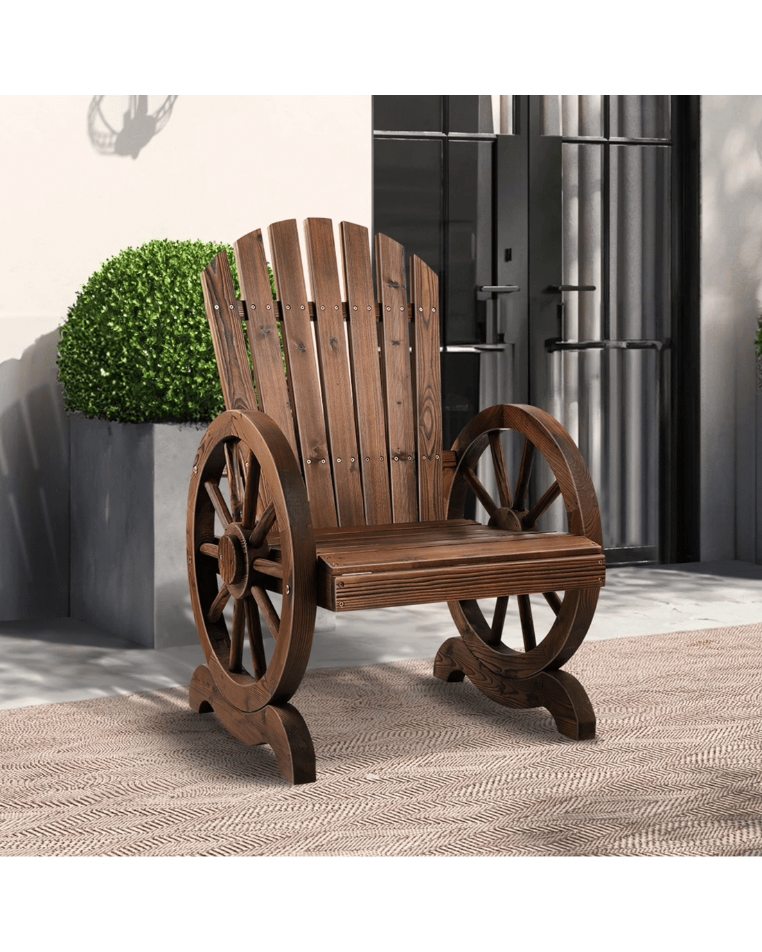 Alfordson Outdoor Wagon Wheel Chair Garden Wooden Seat Patio Lounge - Charcoal