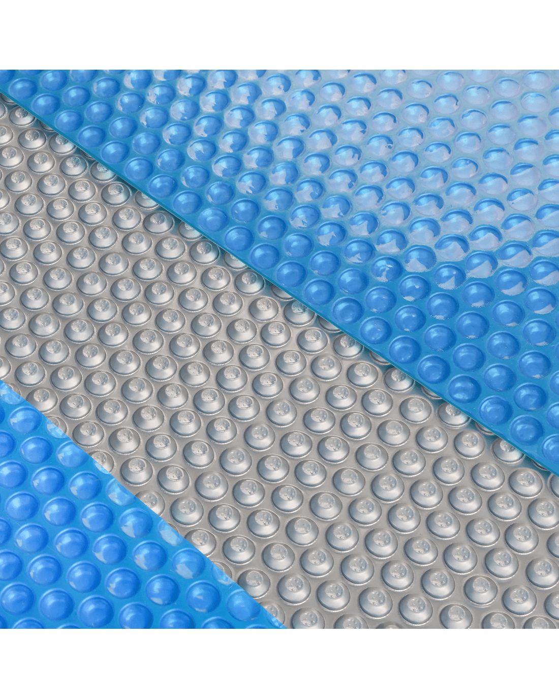 Blue/Silver isothermal technology cover is in a two-toned colour that combines the features of a blue and silver cover. The translucent top (blue) allows solar energy to enter into your pool, causing the water's heat to rise. The opposite reflective silver material aids in preventing solar rays from escaping your pool, the silver reflects the heat back inwards allowing the pool to heat more than a simple blue solar cover. The natural heating and insulating saves you energy while also stopping evaporation.