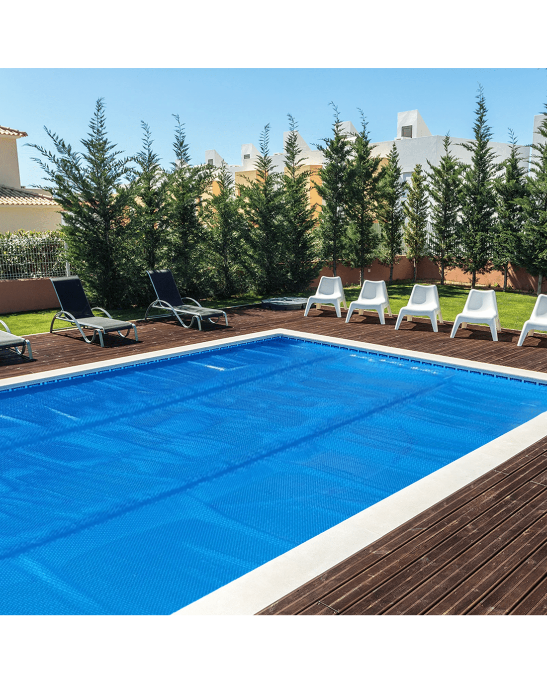 Our solar pool cover can prevent pool water evaporation by up to 97%, increase water temperature by up to 8 degrees, reduce your heat loss by up to 75%, reduce your pools chemical consumption by up to 50% and keep your pool clear of leaves, insects and dirt.