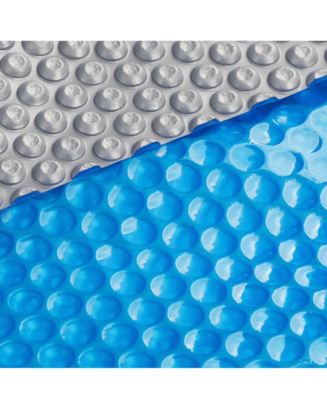 Blue/Silver isothermal technology cover is in a two-toned colour that combines the features of a blue and silver cover. The translucent top (blue) allows solar energy to enter into your pool, causing the water's heat to rise. The opposite reflective silver material aids in preventing solar rays from escaping your pool, the silver reflects the heat back inwards allowing the pool to heat more than a simple blue solar cover. The natural heating and insulating saves you energy while also stopping evaporation.