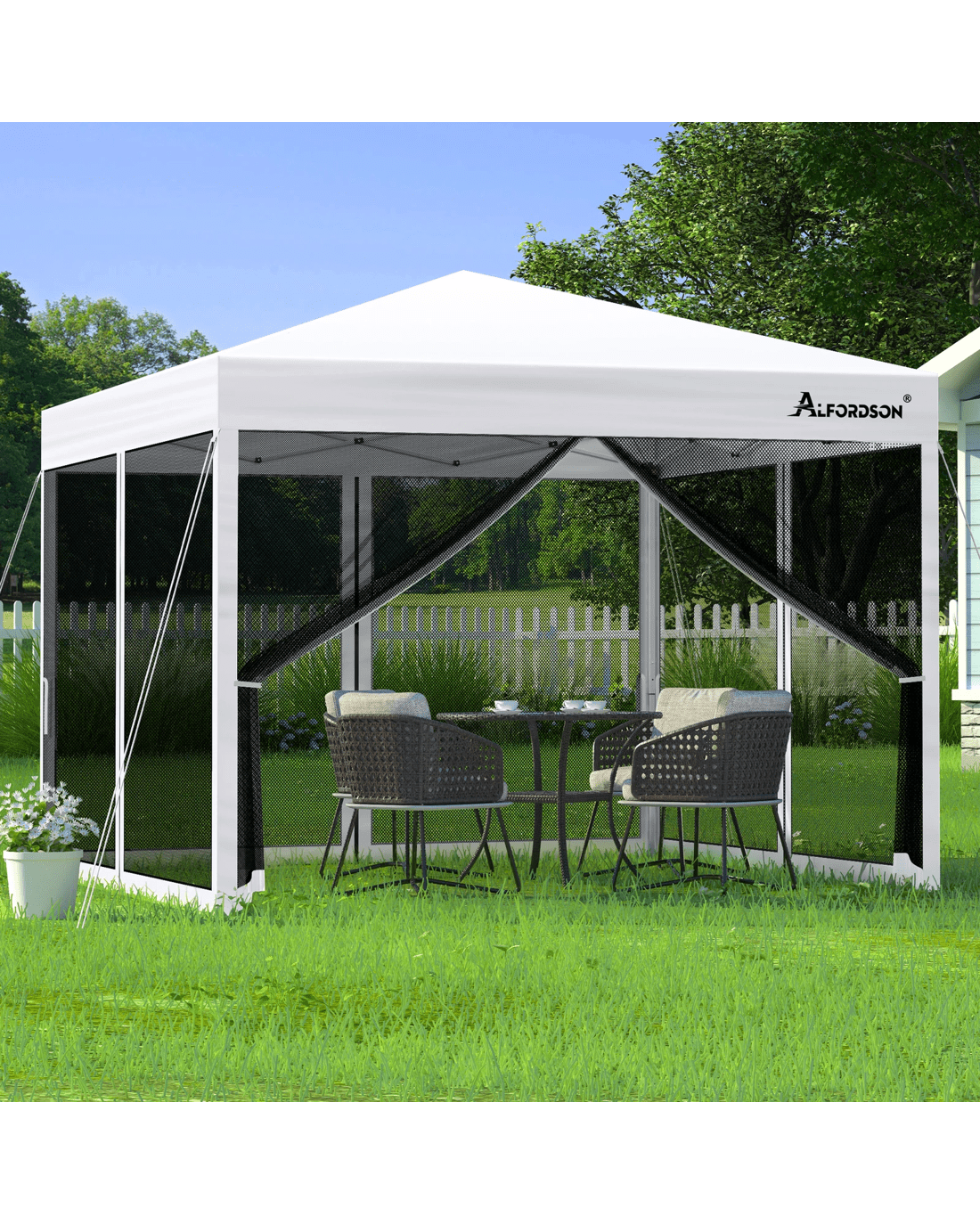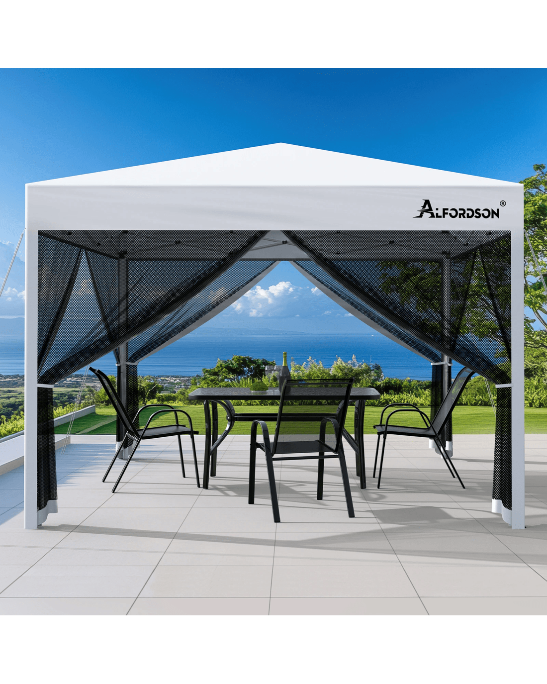 Alfordson Pop Up Marquee Outdoor Tent Mesh Wall 3x3m Gazebo - White