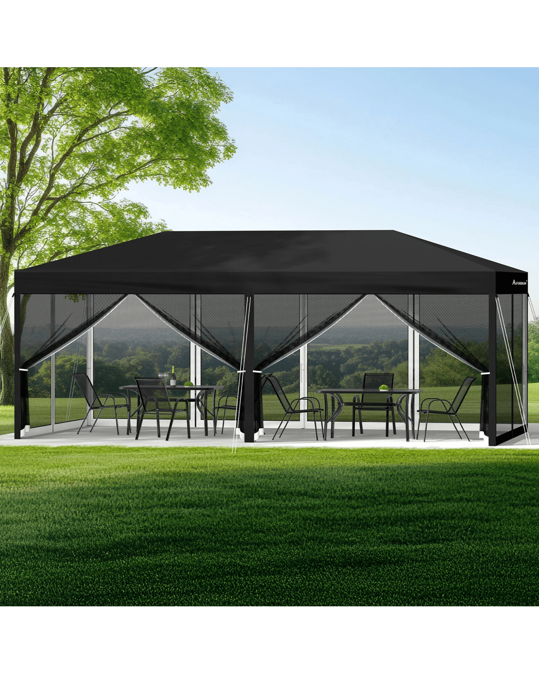 Sold by Aussie Union GroupAlfordson Pop Up Marquee Outdoor Tent Mesh Wall 3x6m Gazebo - Black