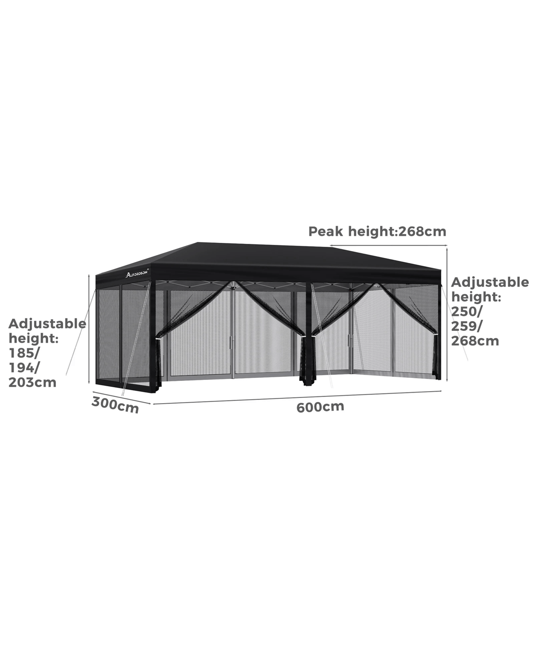 * Adjustable height: Centre 250/259/268cm, Edge 185/194/203cm