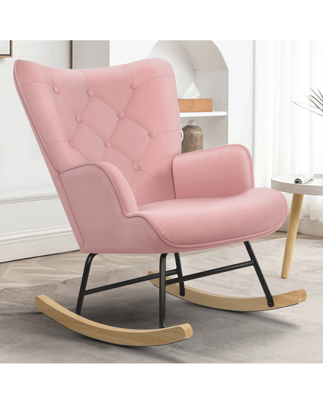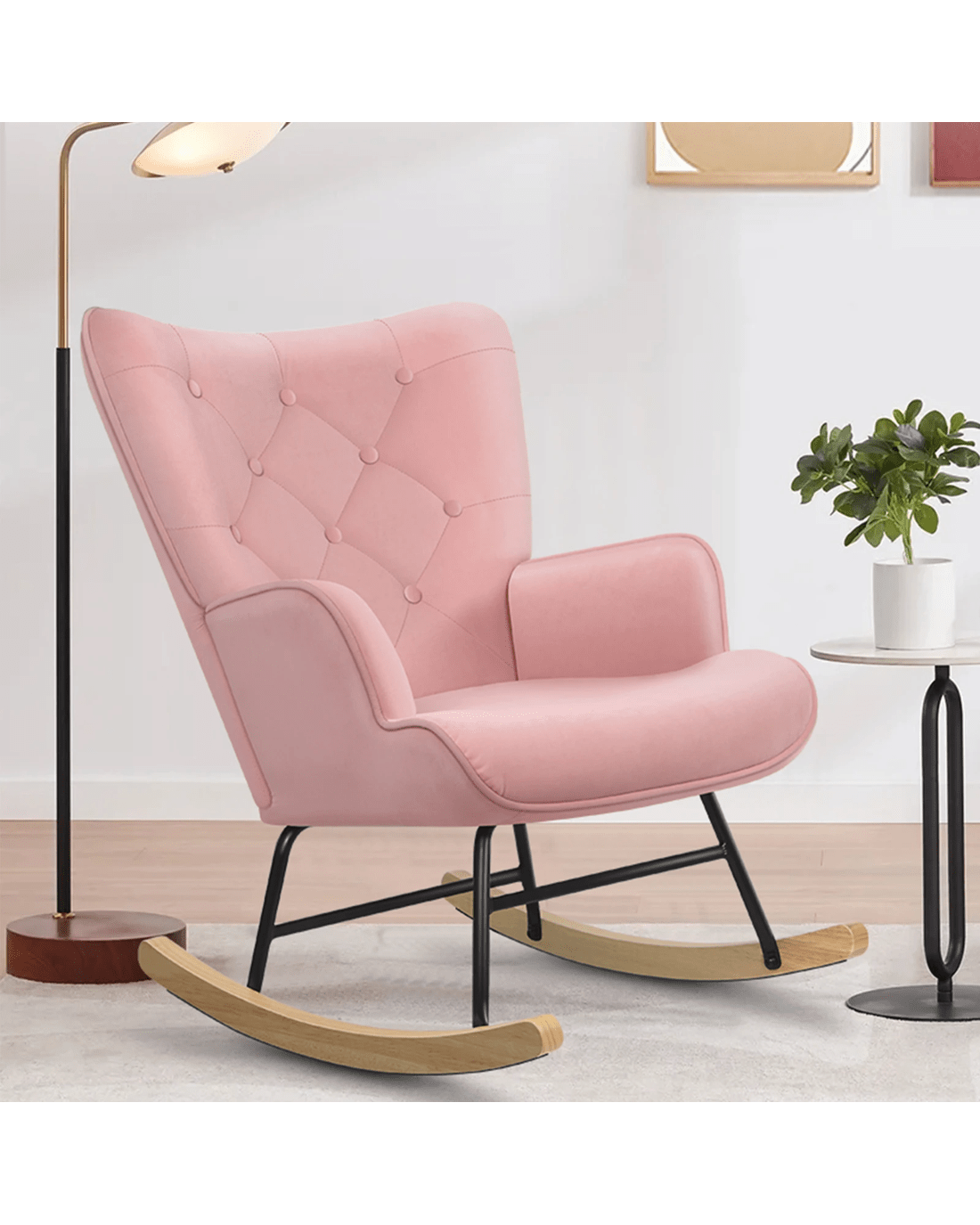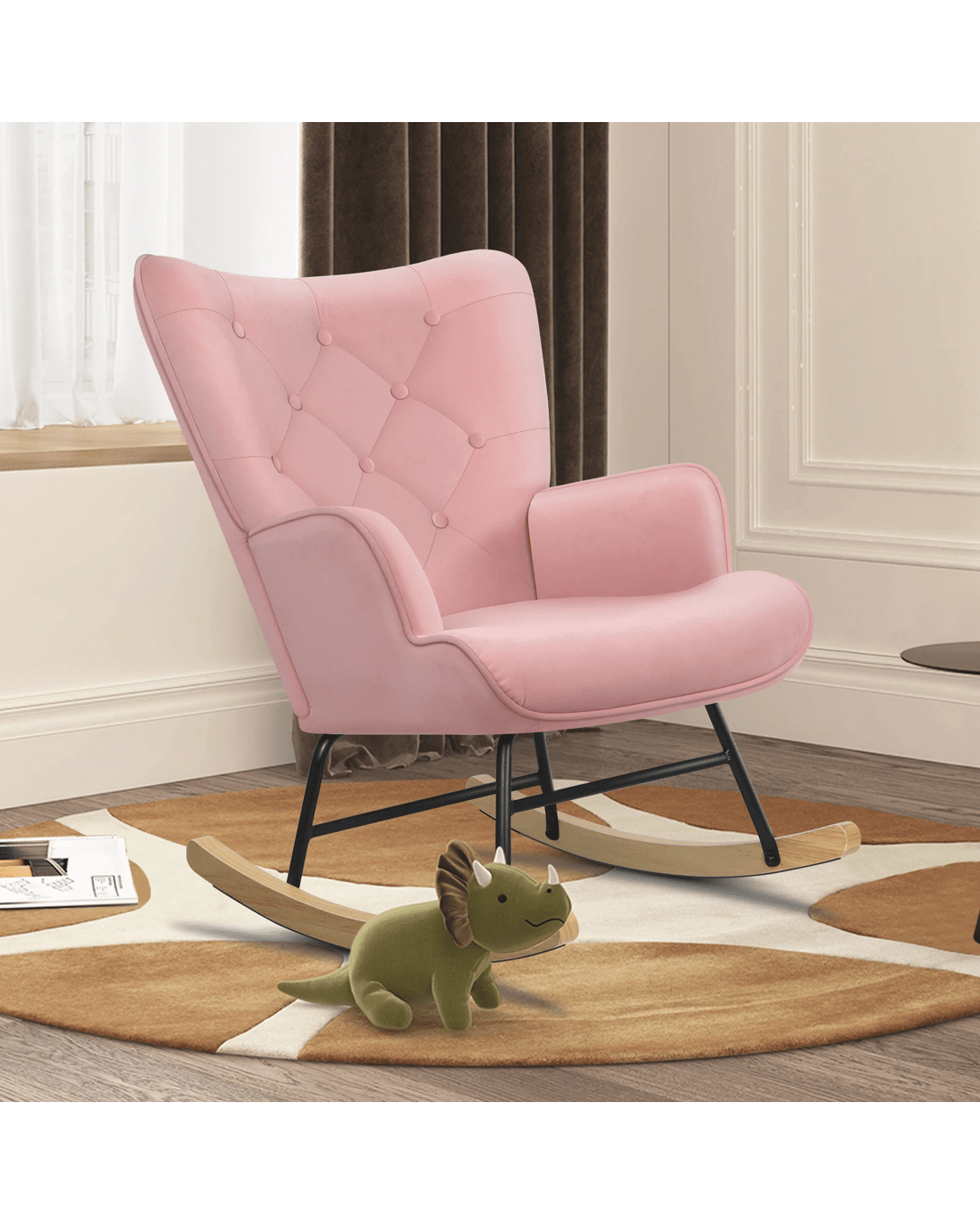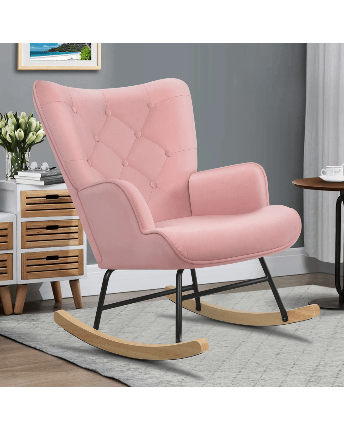 Alfordson Rocking Chair Armchair Accent Feeding Chair Lounge Tufted Sofa - Pink