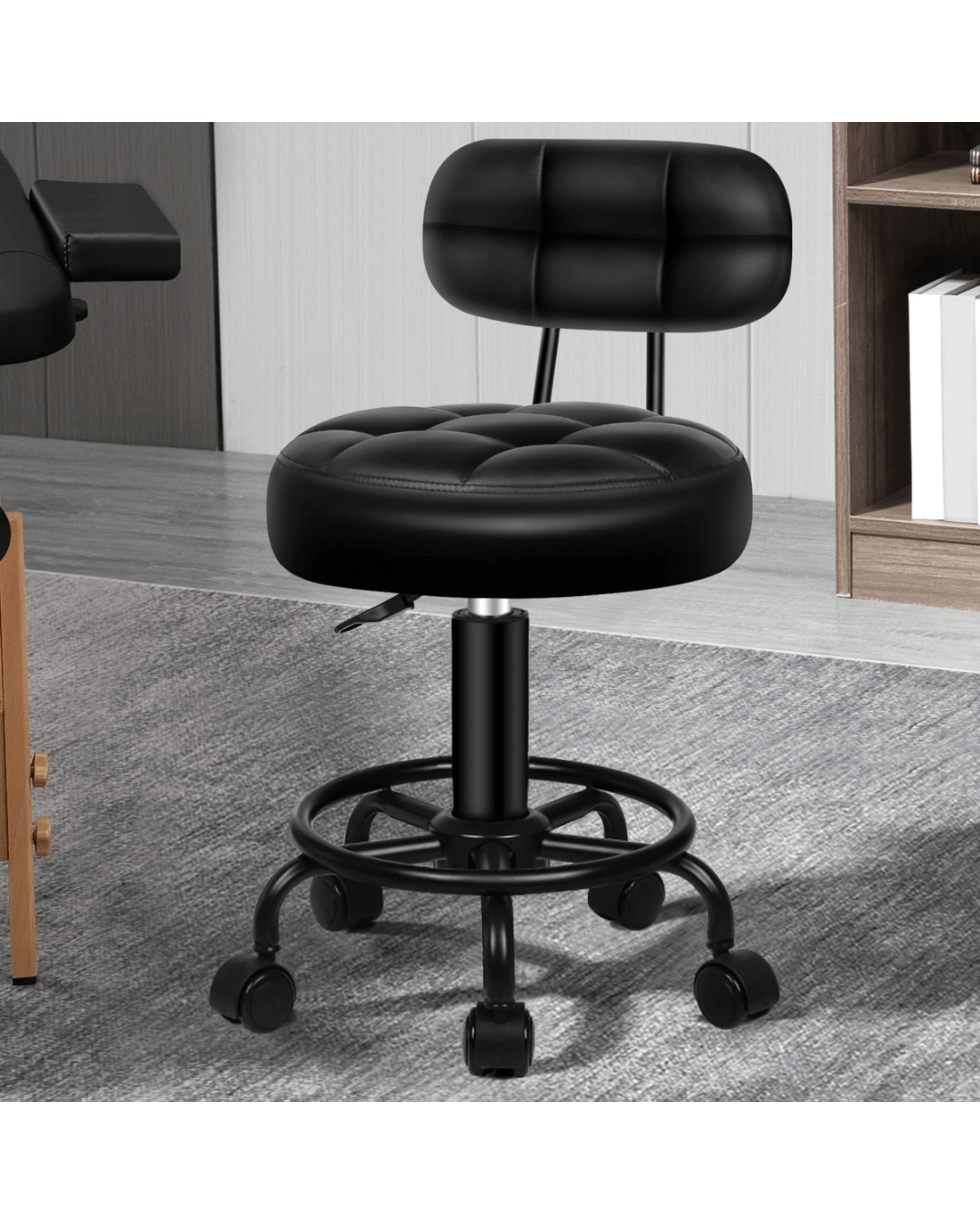 This salon stool stands out with a curvaceous frame in rounded seat and mid-back design. It will definitely add a contemporary atmosphere to your home. They are ideal for dental, office, lab, clinic, tattoo, massage, beauty salon, kitchen and spa.