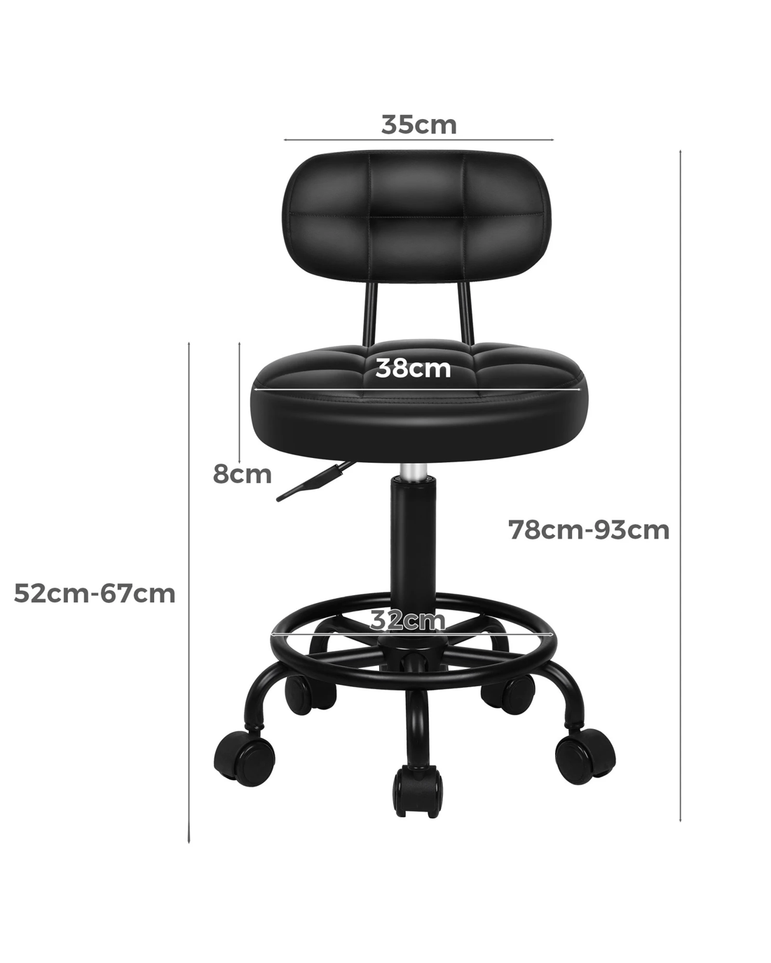 Alfordson Salon Stool Backrest Swivel Barber Hair Dress Chair Riley - Black