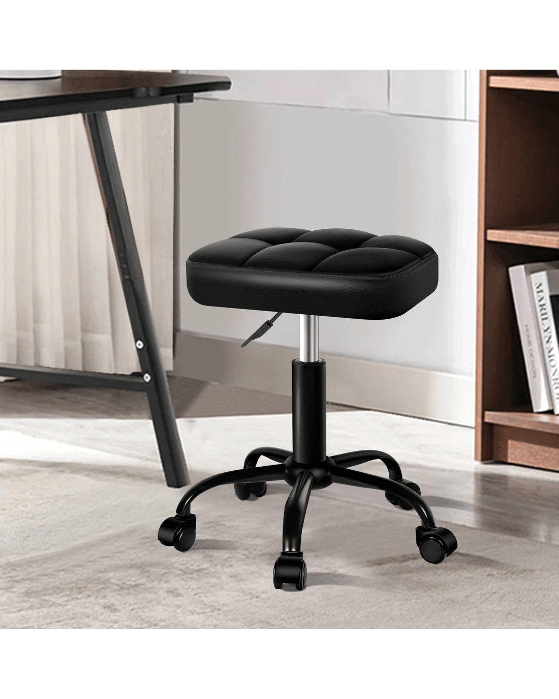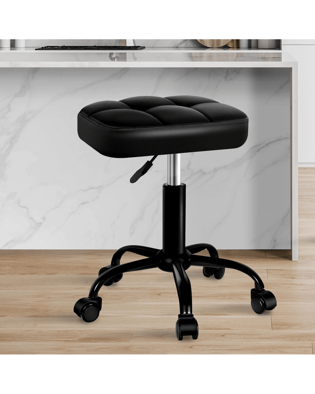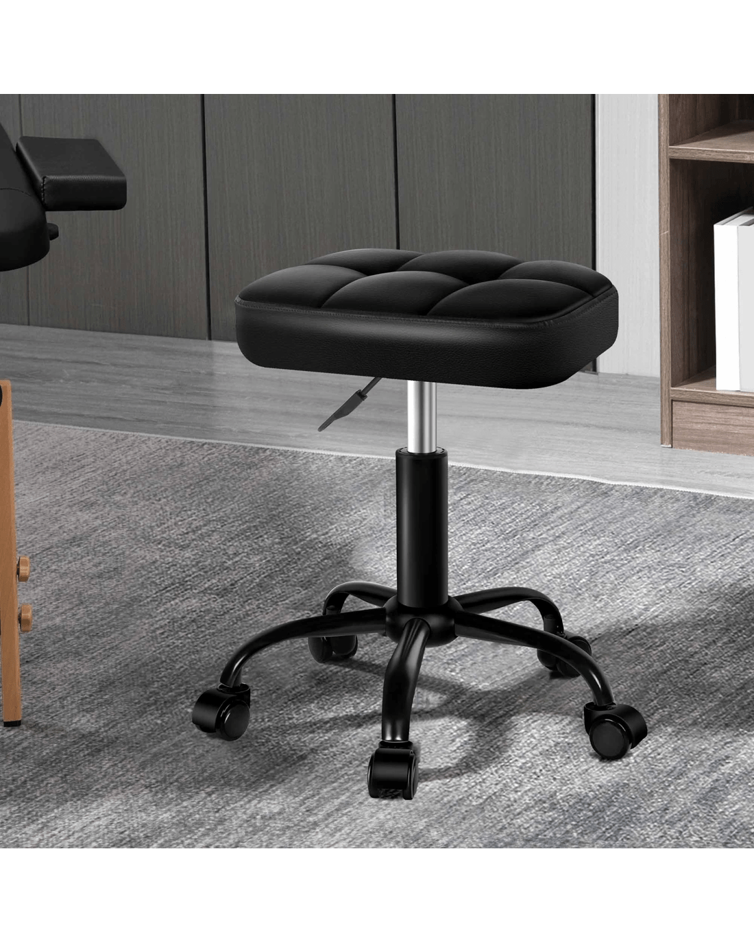 Alfordson Salon Stool Square Swivel Barber Hair Dress Chair - All Black