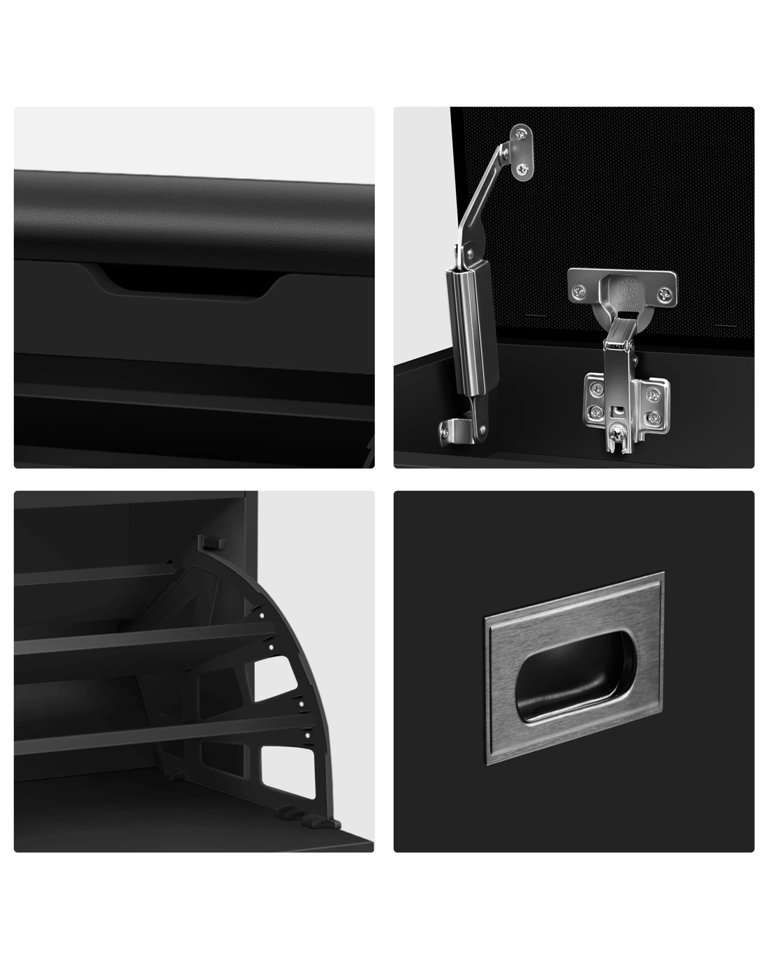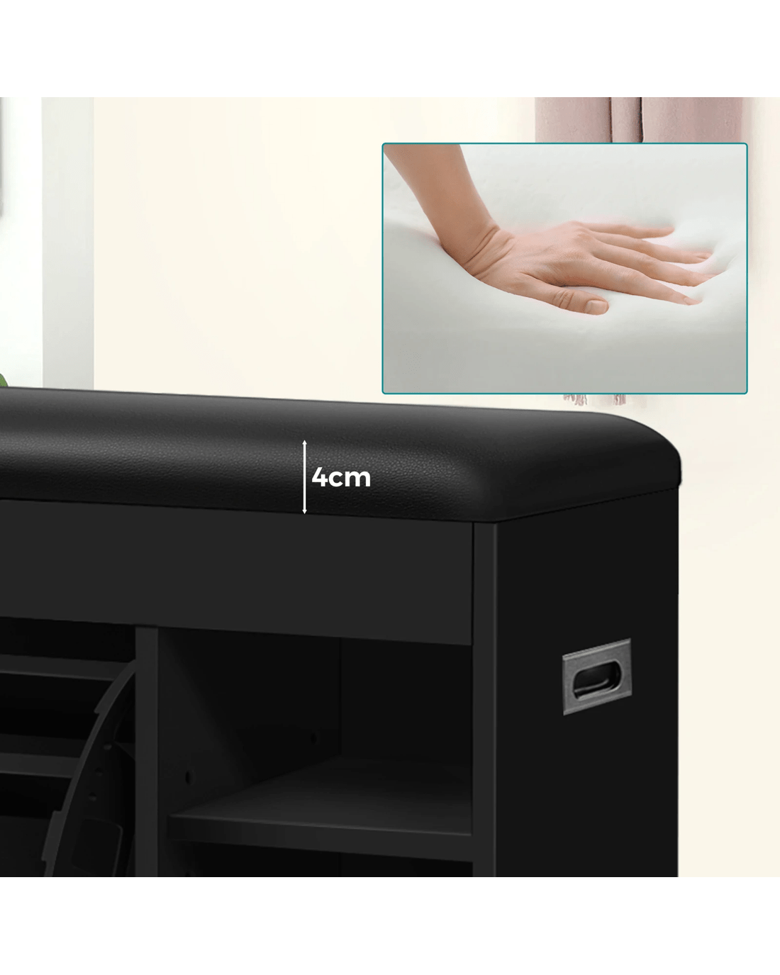 Crafted from superior E1 grade and 15mm thick particle board, this shoe cabinet bench is designed to be highly durable. Unlike some other sellers, we have no compromise on materials used. Instead of flimsy paper finish, our shoe bench is well made with melamine finish. It is not only easy to maintain and clean, but also long lasting and durable. Made of premium PU leather and high density foam, the seat cushion is a cozy spot for comfortable sitting experience.