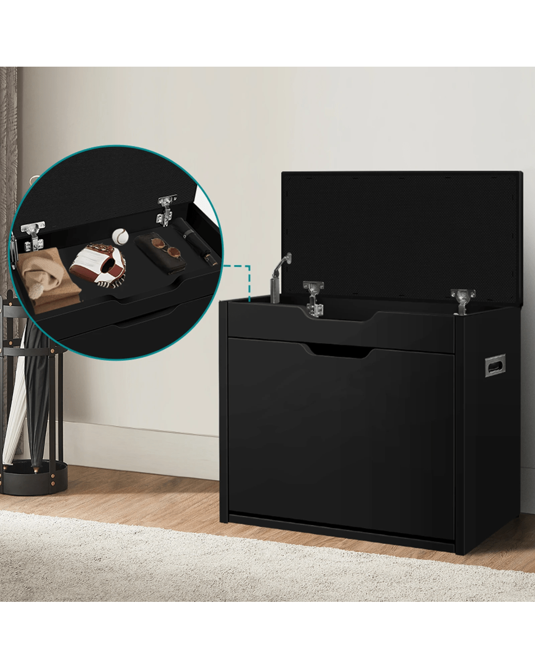 * Lift-top hidden storage