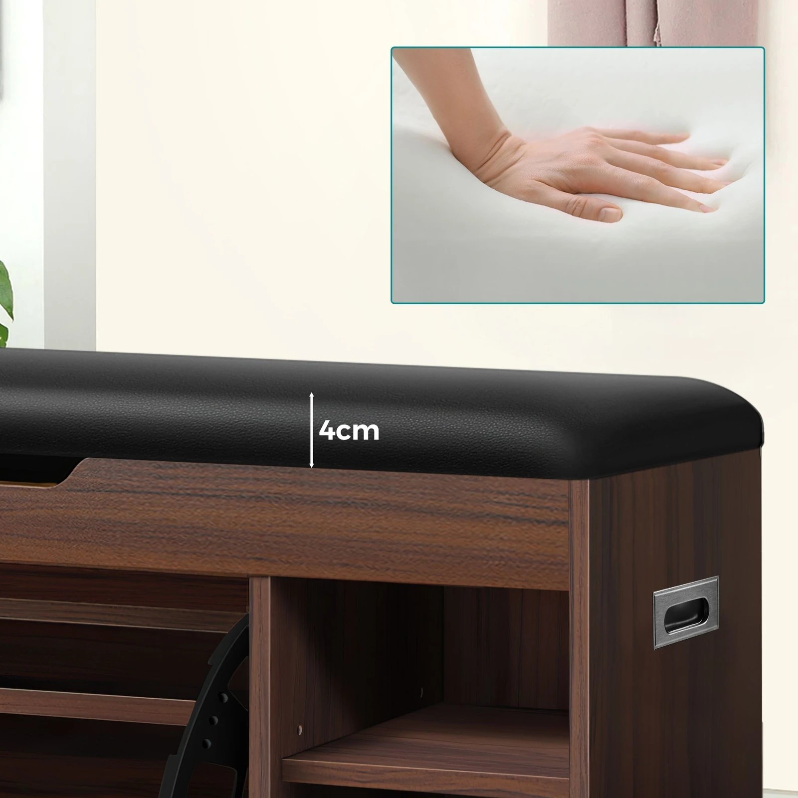 Alfordson Shoe Cabinet Bench Storage Rack Organiser Shelf 18 Pairs - Walnut