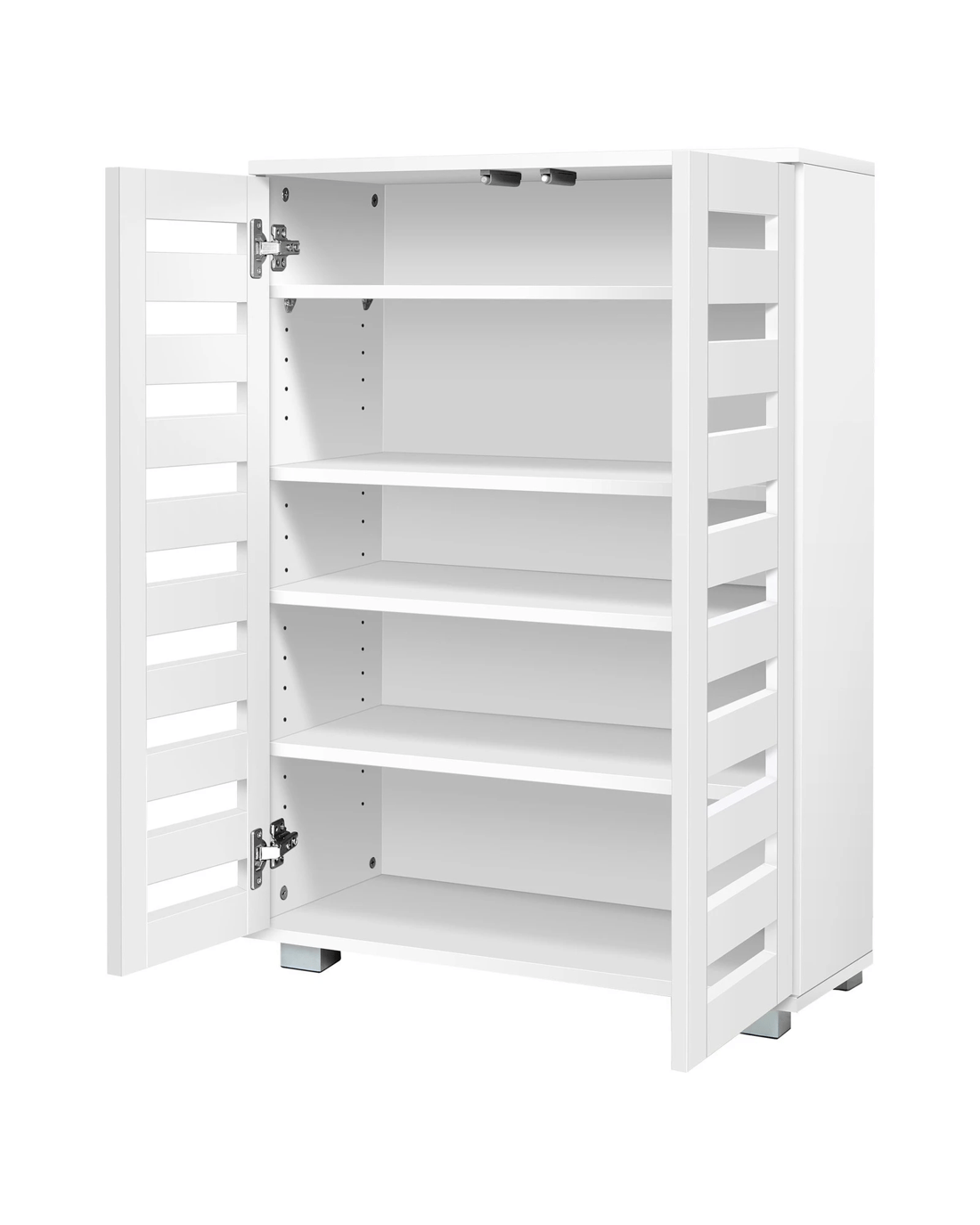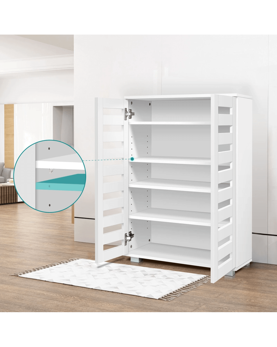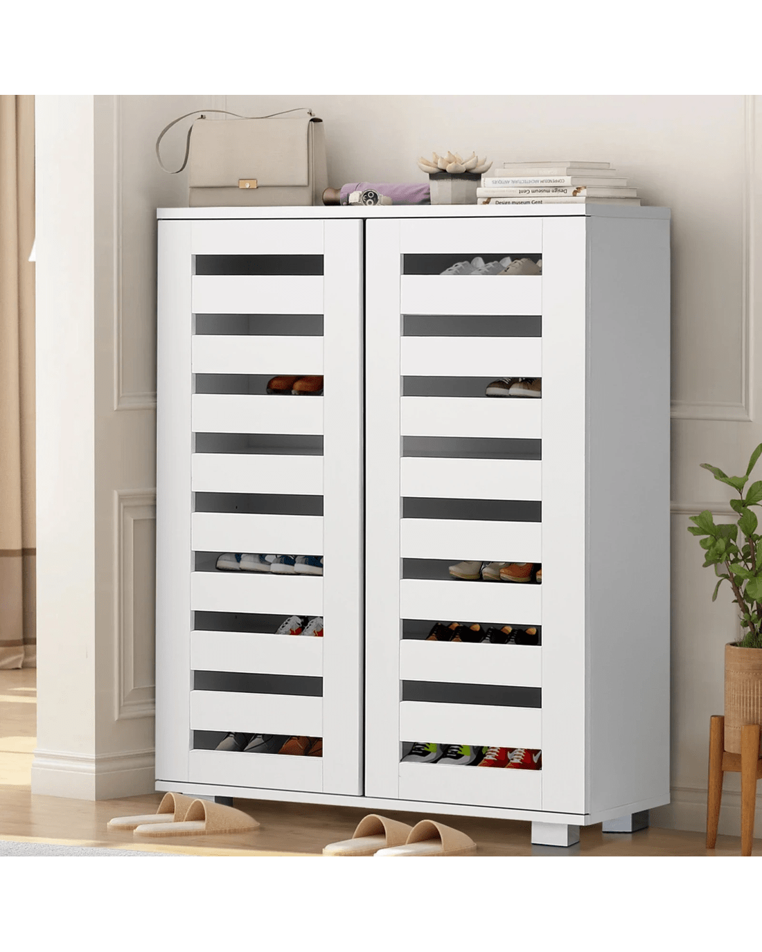 Fitted with two slatted doors with 5 customized shelves giving this piece enough space for up to 21 pairs of shoes ranging from slippers to high boots. Slits within the doors enable air circulation and prevent mould growth on your shoes.