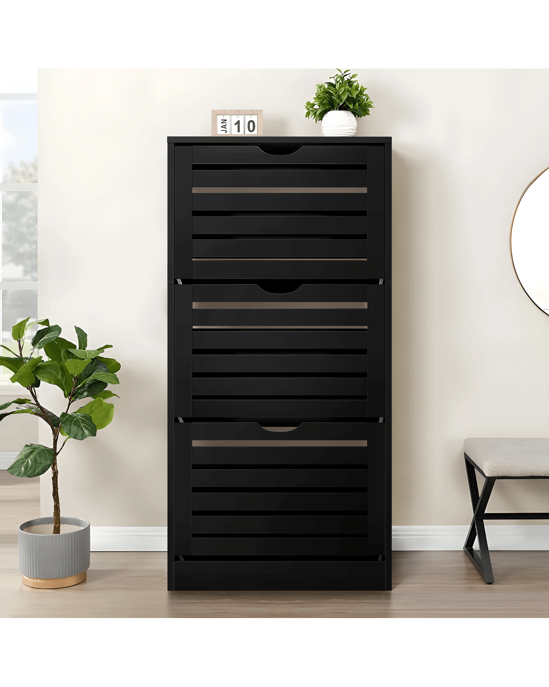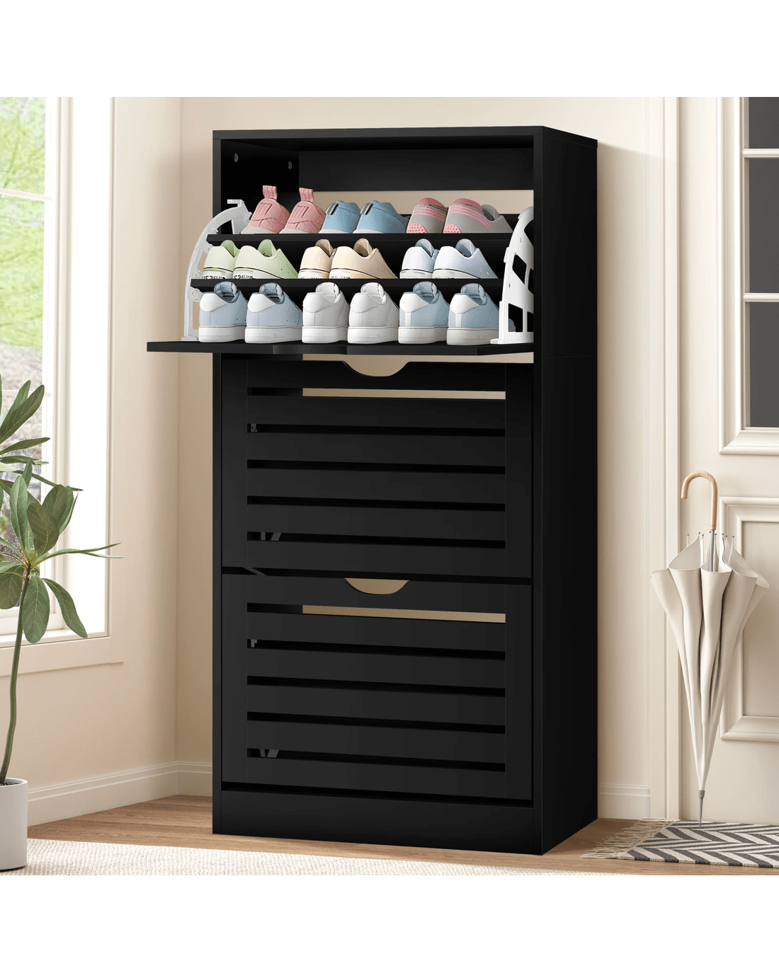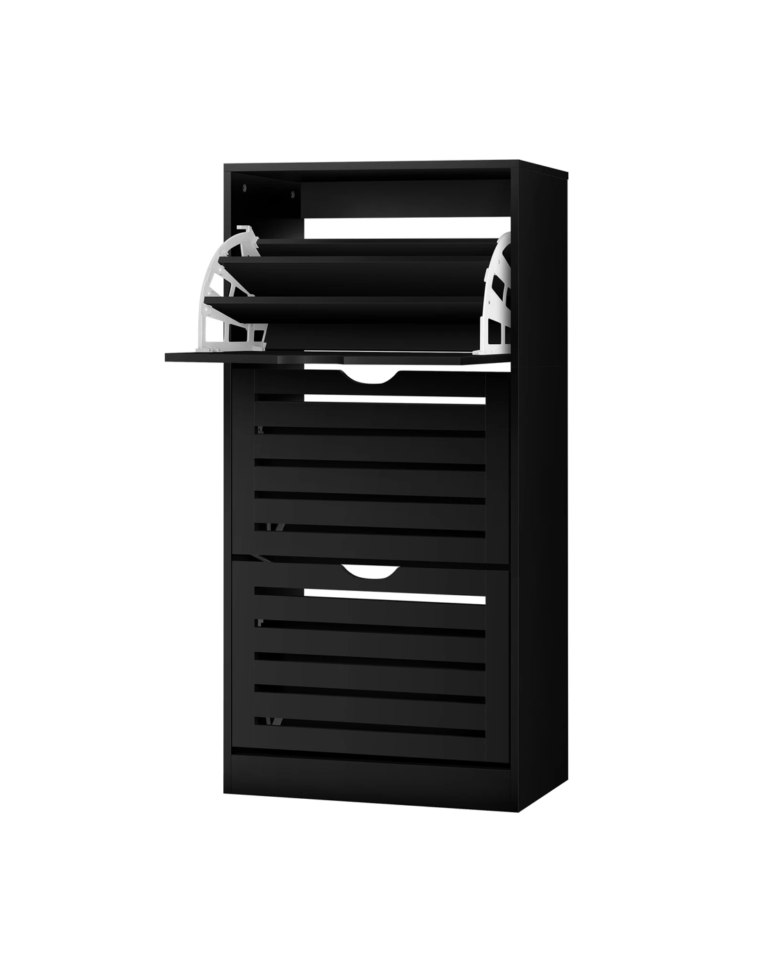 Alfordson Shoe Cabinet Organiser Storage Rack Flip Drawers - Black