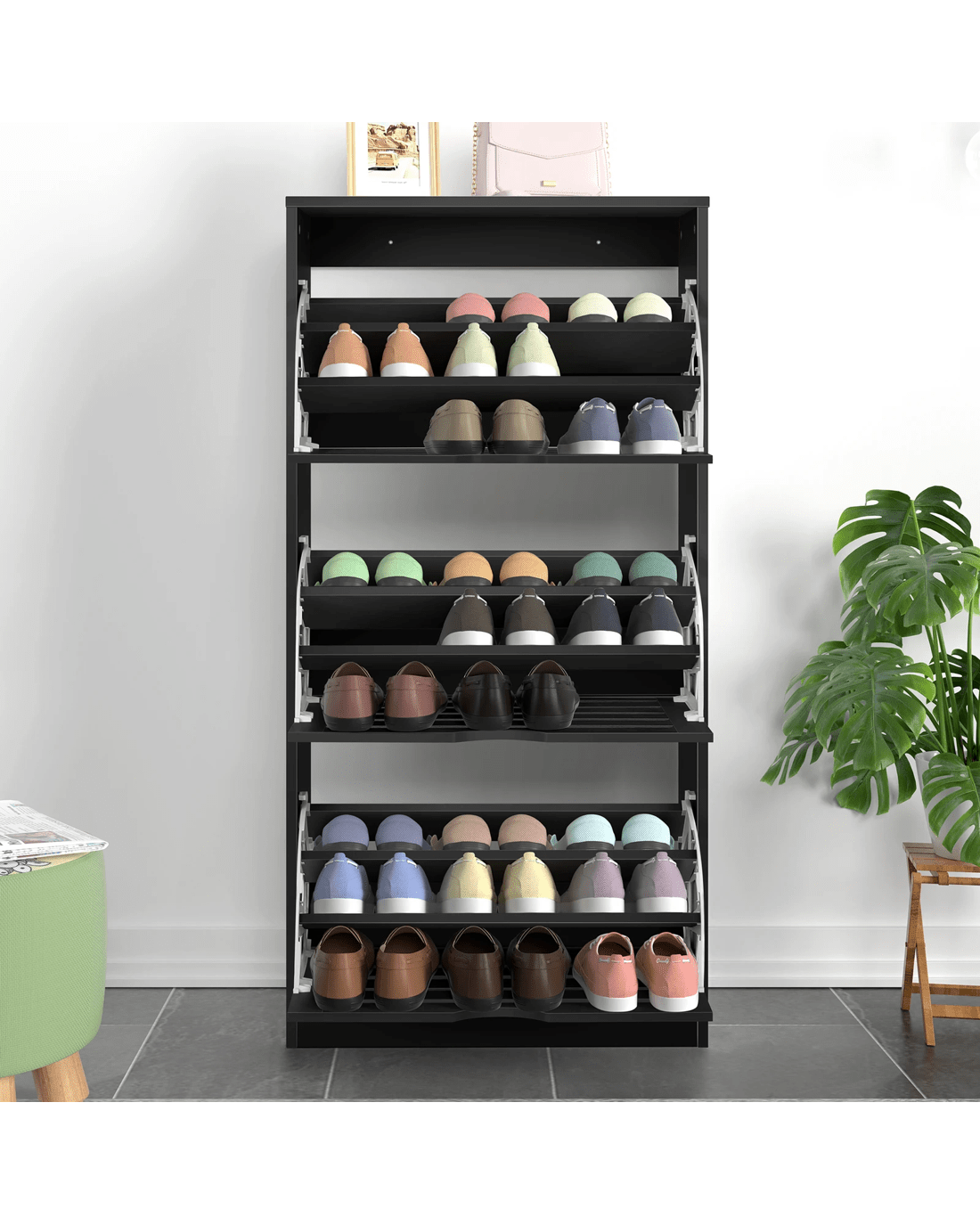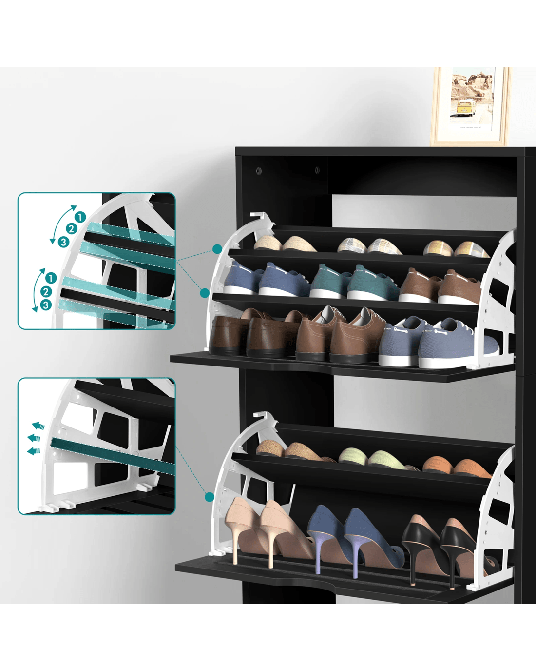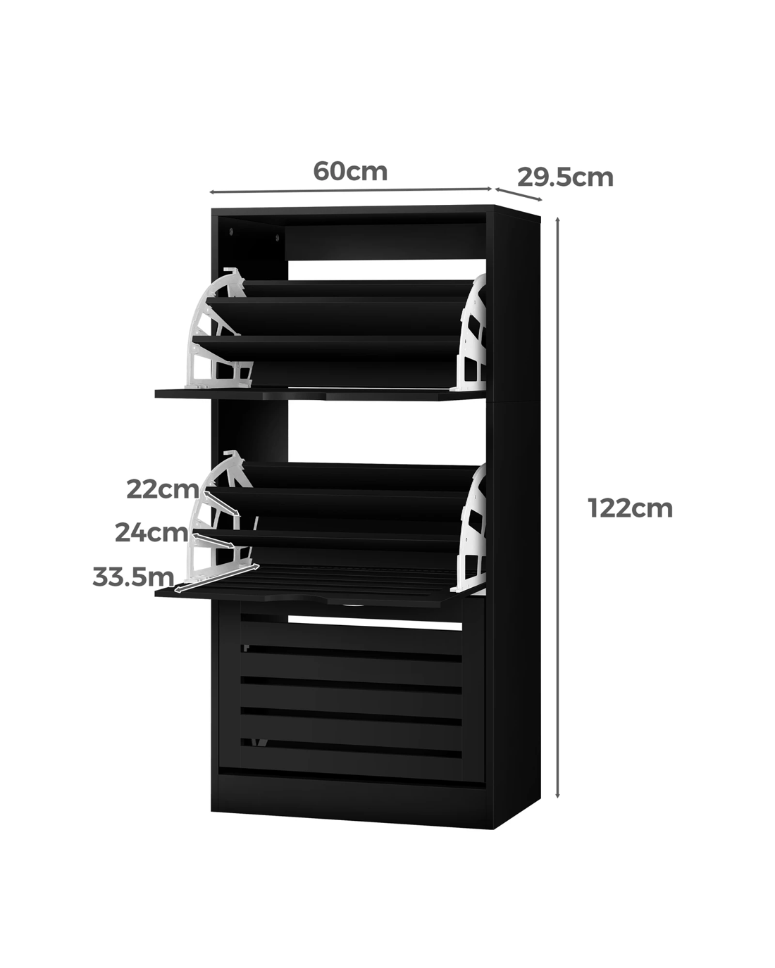 Alfordson Shoe Cabinet Organiser Storage Rack Flip Drawers - Black