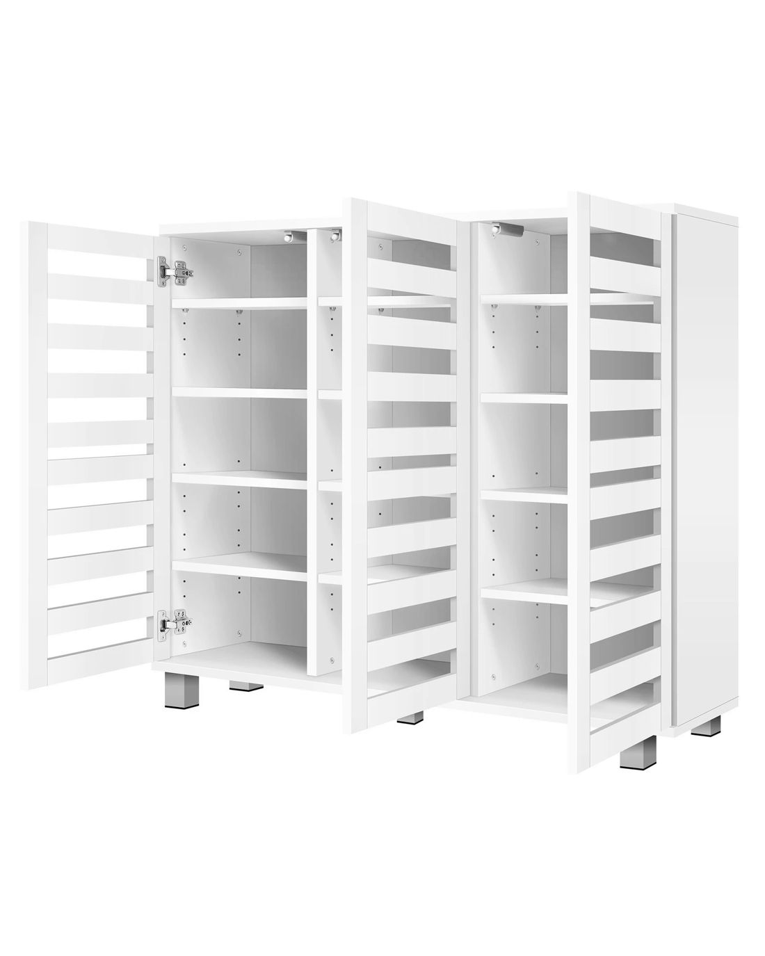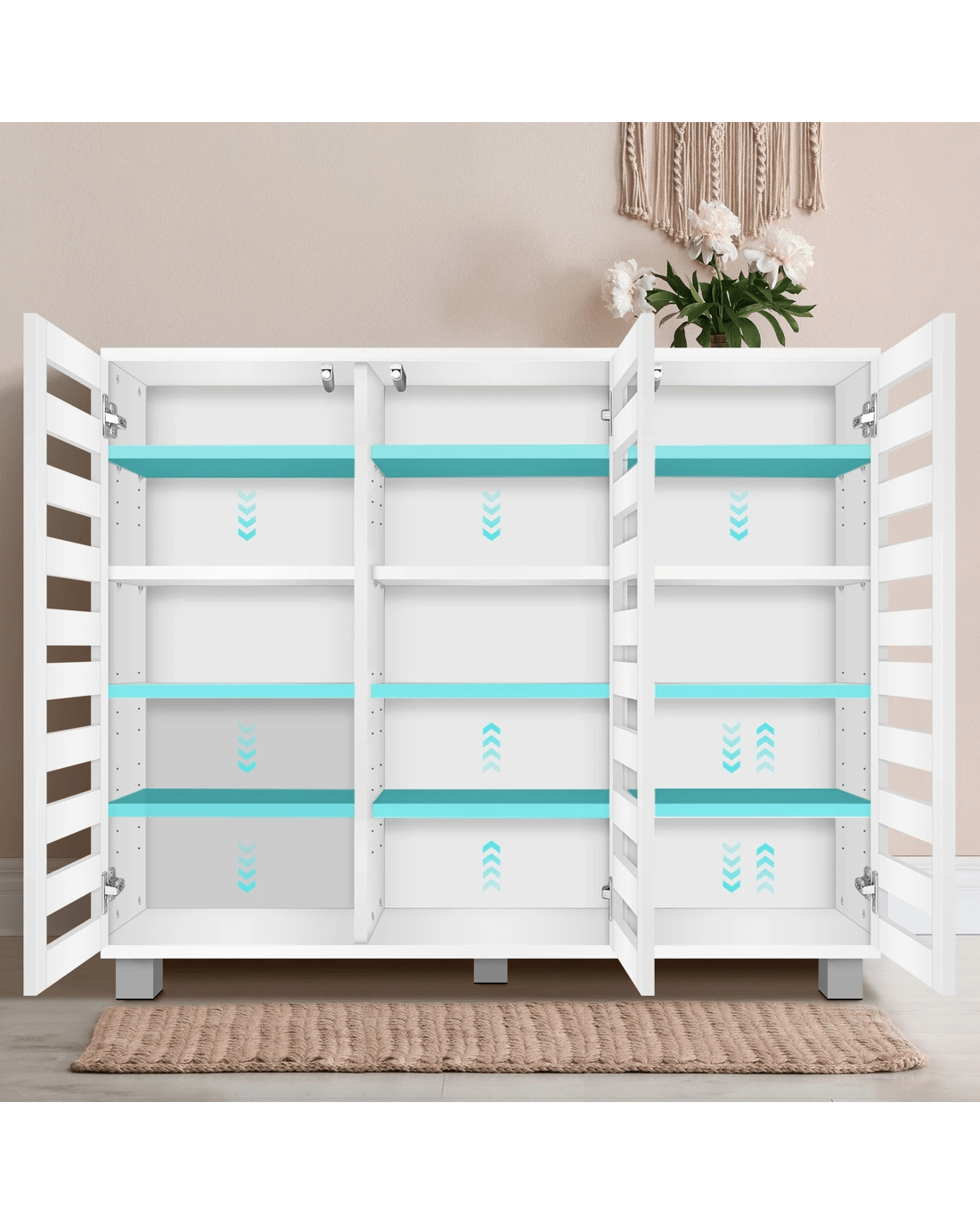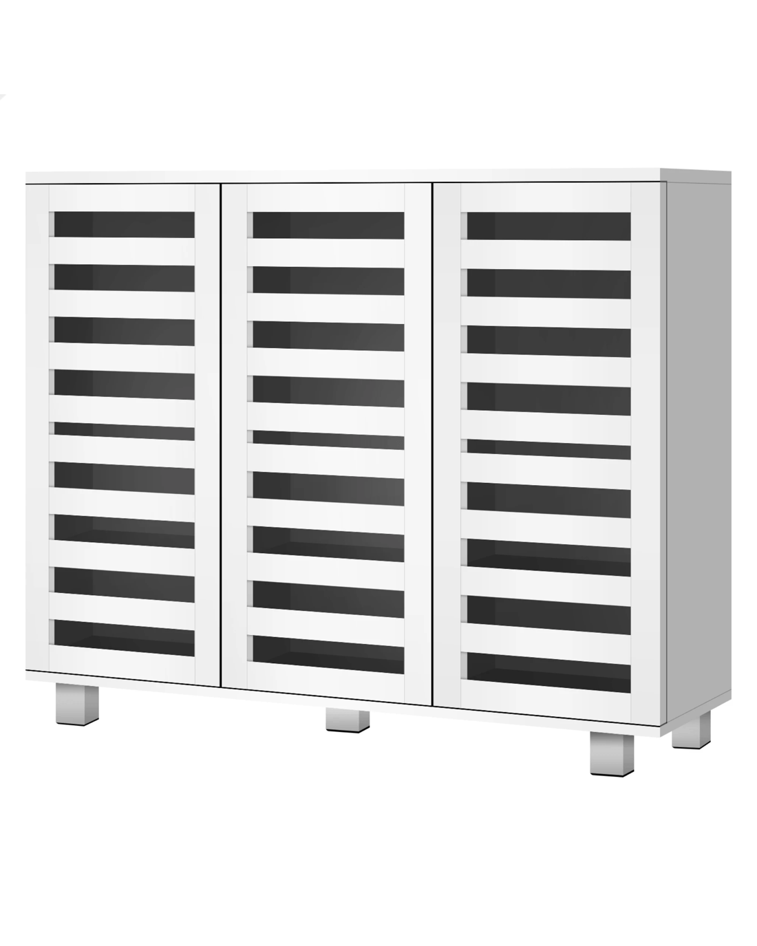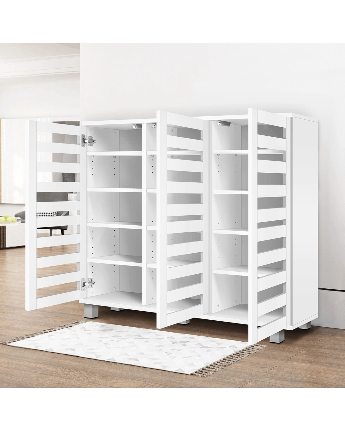 Fitted with three slatted doors and 15 customized shelves giving this piece enough space for up to 30 pairs of shoes ranging from slippers to high boots. Slits within the doors enable air circulation and prevent mould growth on your shoes.