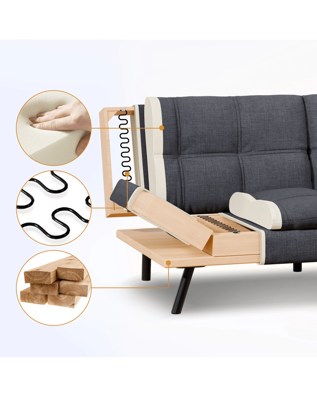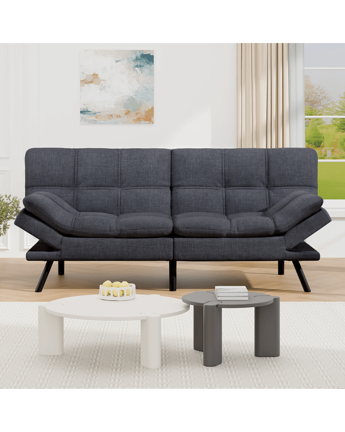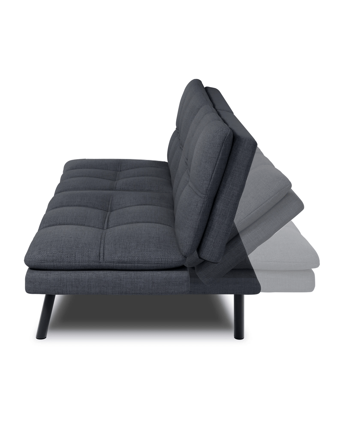 Innovative reclining adjustment - Featuring smart click-clack mechanism, the backrest of our sofa bed can be set at 3 angles - 105??, 135??, and 180?? while the armrests can also be adjusted at 4 levels from 0?? to 45??, allowing you to find your perfect relaxation position. Moreover, with a thoughtful design, the split-back expands your seating choices for personalized comfort. Whether you're having a movie night with friends, accommodating overnight guests, or simply lounging with a good book, this sofa bed caters to your every need.