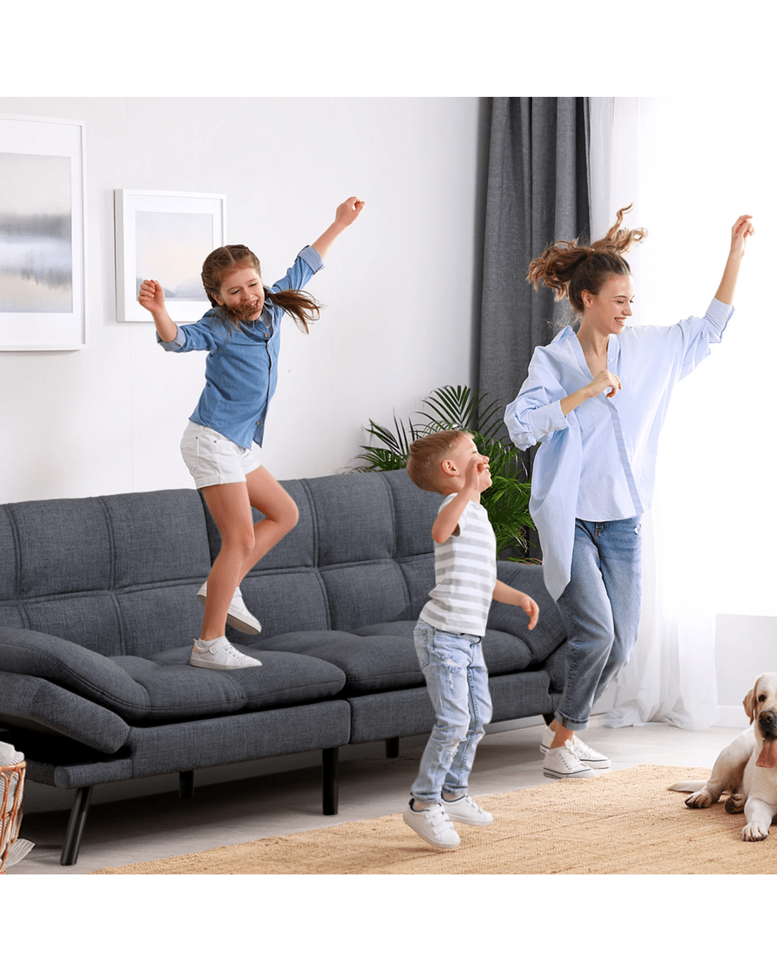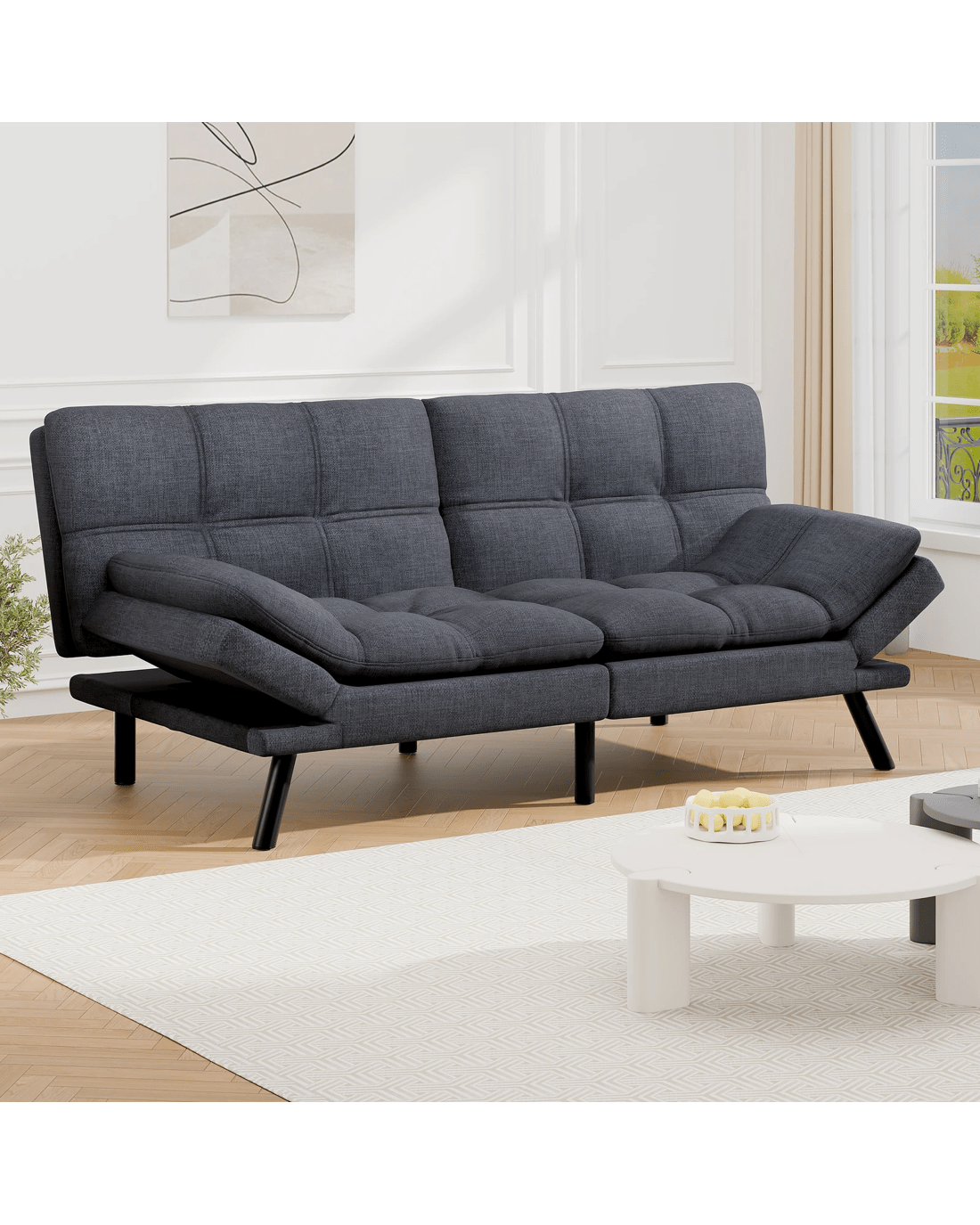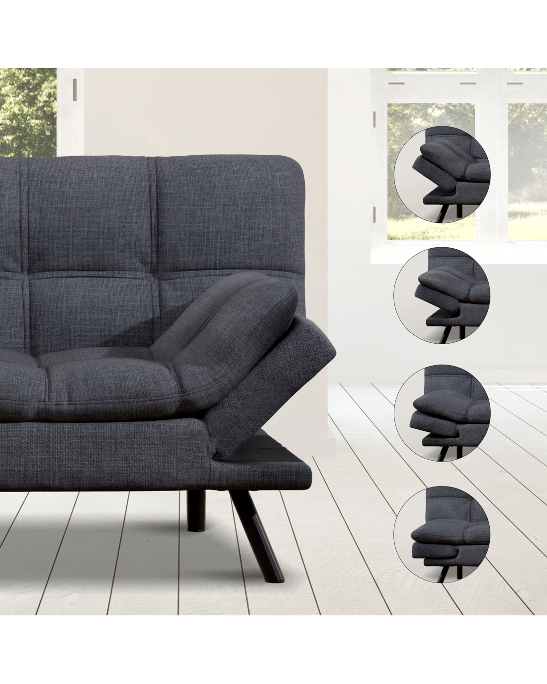 Innovative reclining adjustment - Featuring smart click-clack mechanism, the backrest of our sofa bed can be set at 3 angles - 105??, 135??, and 180?? while the armrests can also be adjusted at 4 levels from 0?? to 45??, allowing you to find your perfect relaxation position. Moreover, with a thoughtful design, the split-back expands your seating choices for personalized comfort. Whether you're having a movie night with friends, accommodating overnight guests, or simply lounging with a good book, this sofa bed caters to your every need.