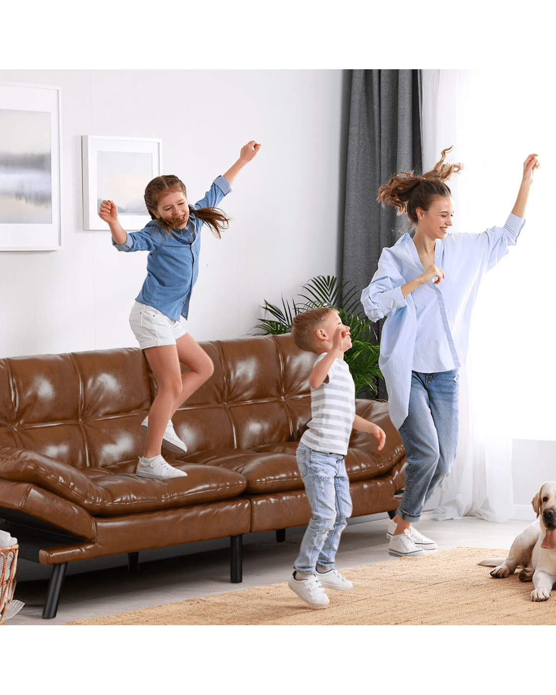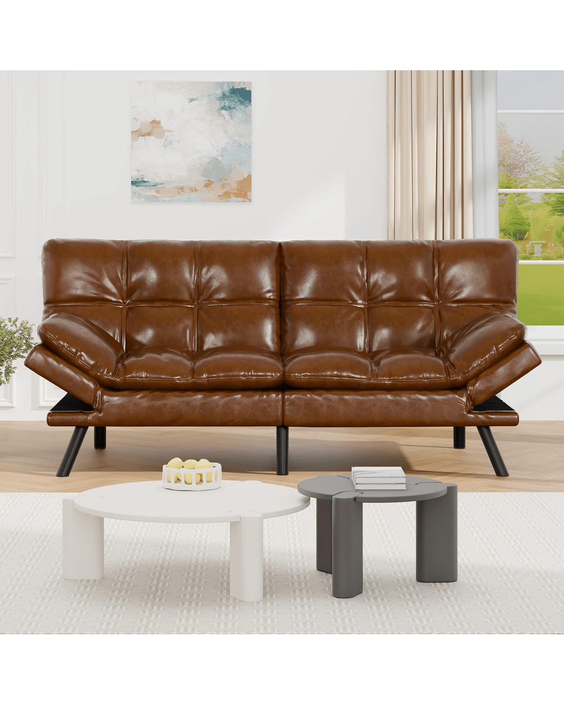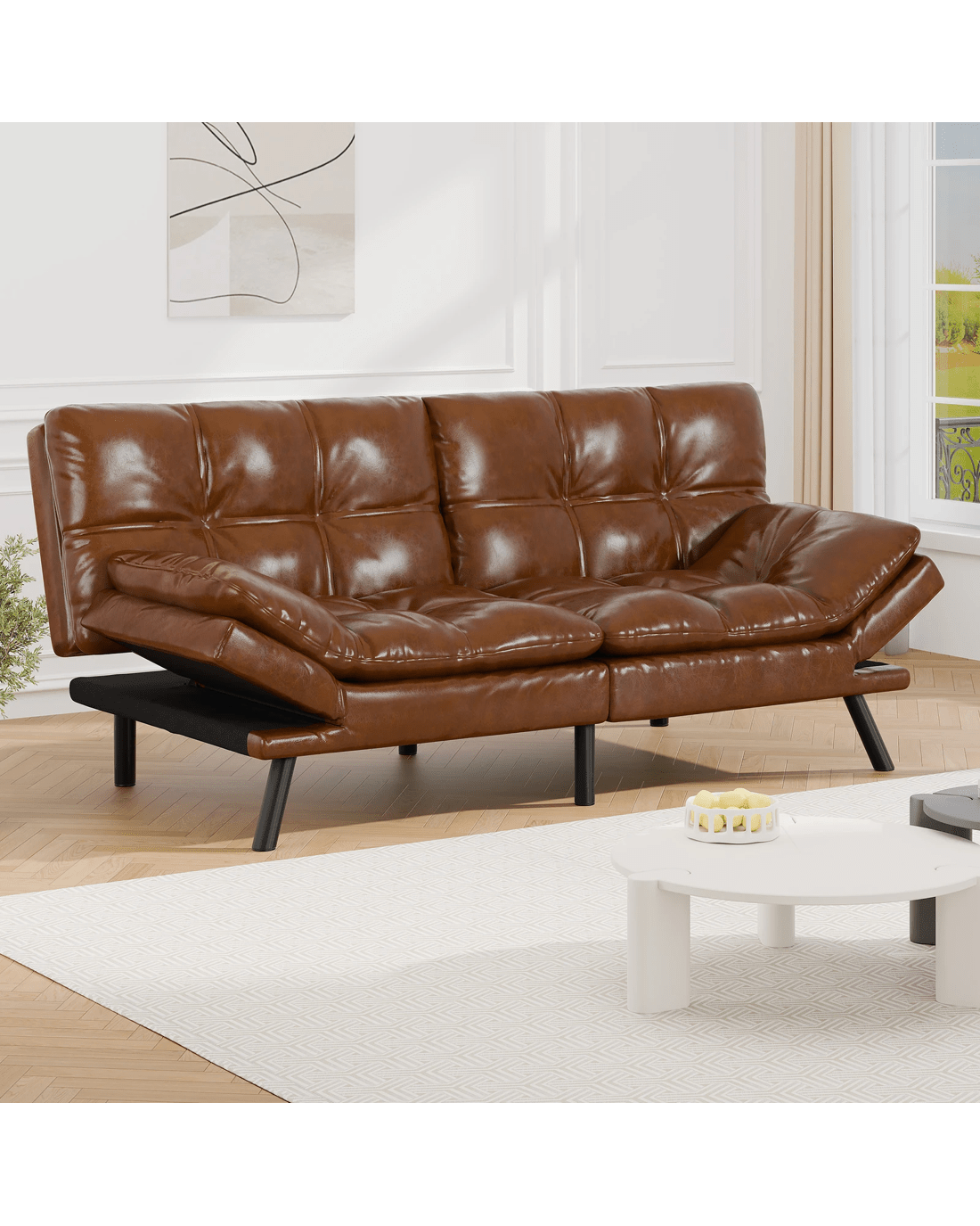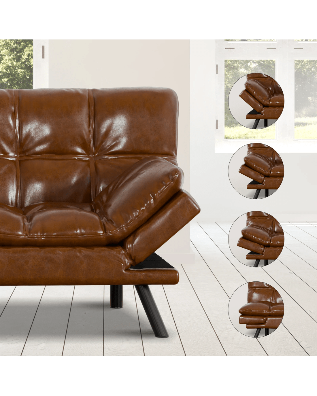 Innovative reclining adjustment - Featuring smart click-clack mechanism, the backrest of our sofa bed can be set at 3 angles - 105??, 135??, and 180?? while the armrests can also be adjusted at 4 levels from 0?? to 45??, allowing you to find your perfect relaxation position. Moreover, with a thoughtful design, the split-back expands your seating choices for personalized comfort. Whether you're having a movie night with friends, accommodating overnight guests, or simply lounging with a good book, this sofa bed caters to your every need.