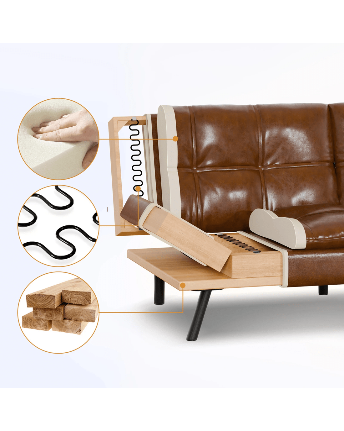 * Seat material: Premium PU leather, high density foam, metal springs and wooden frame