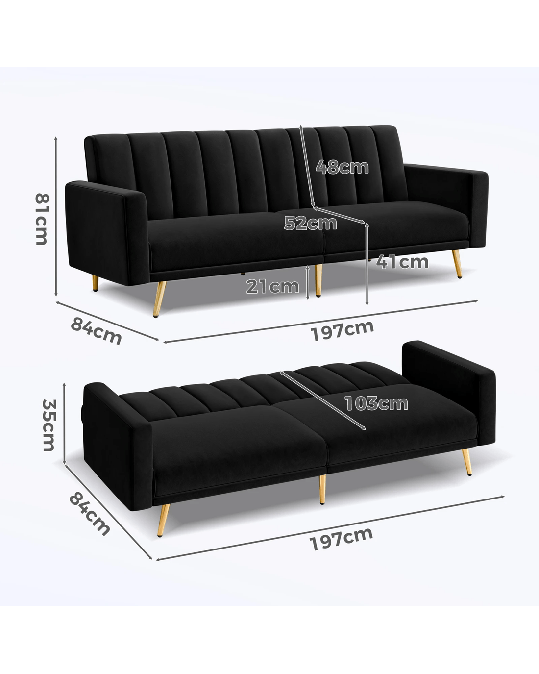Sold by Aussie Union GroupAlfordson Sofa Bed Couch 3 Seater Lounge Velvet - Black