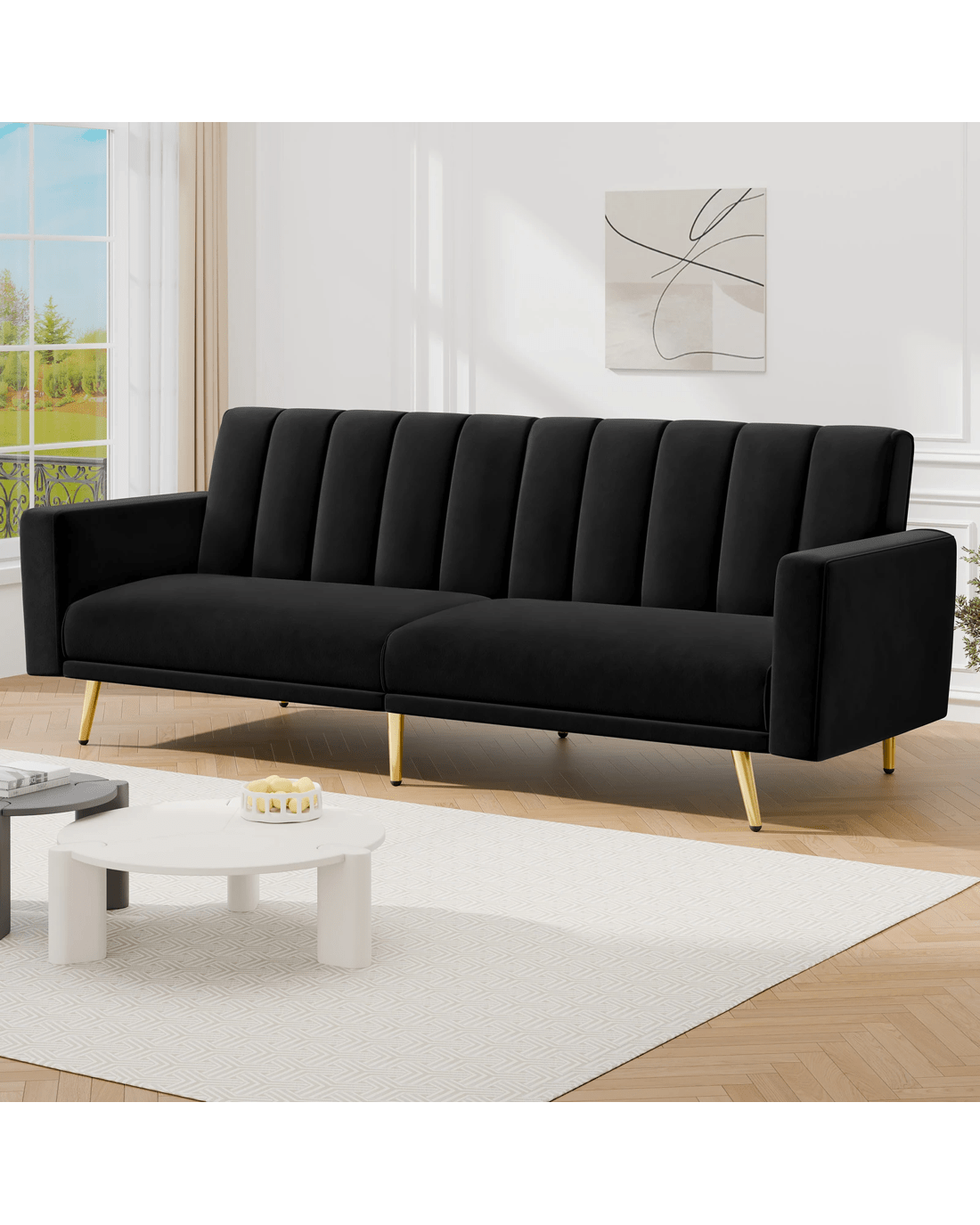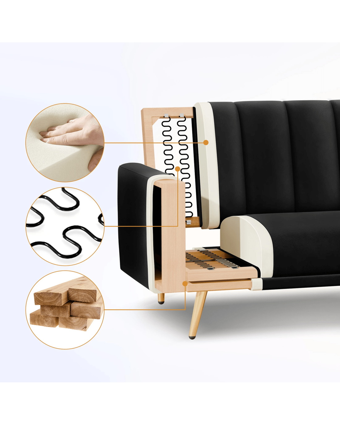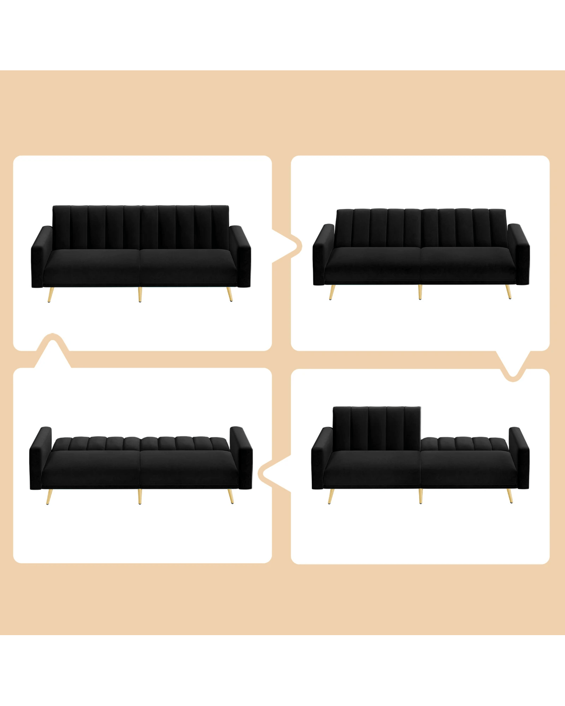 Innovative reclining adjustment - Featuring a click-clack mechanism on the backrest, our sofa bed can be set at 3 angles - 105??, 140??, and 180??, allowing you to find your perfect relaxation position. Moreover, with a thoughtful design, the split-back expands your seating choices for personalized comfort. Whether you're having a movie night with friends, accommodating overnight guests, or simply lounging with a good book, this sofa bed caters to your every need.