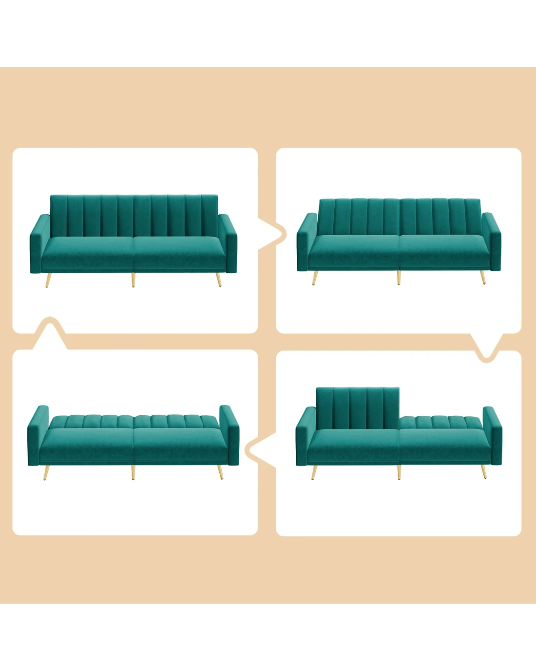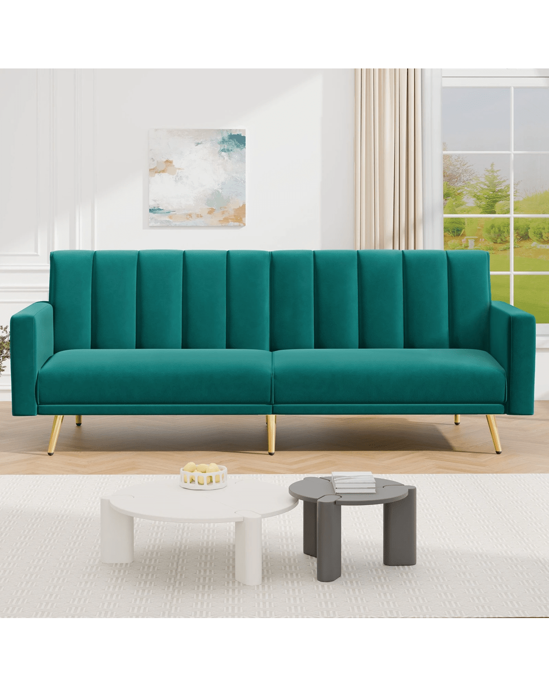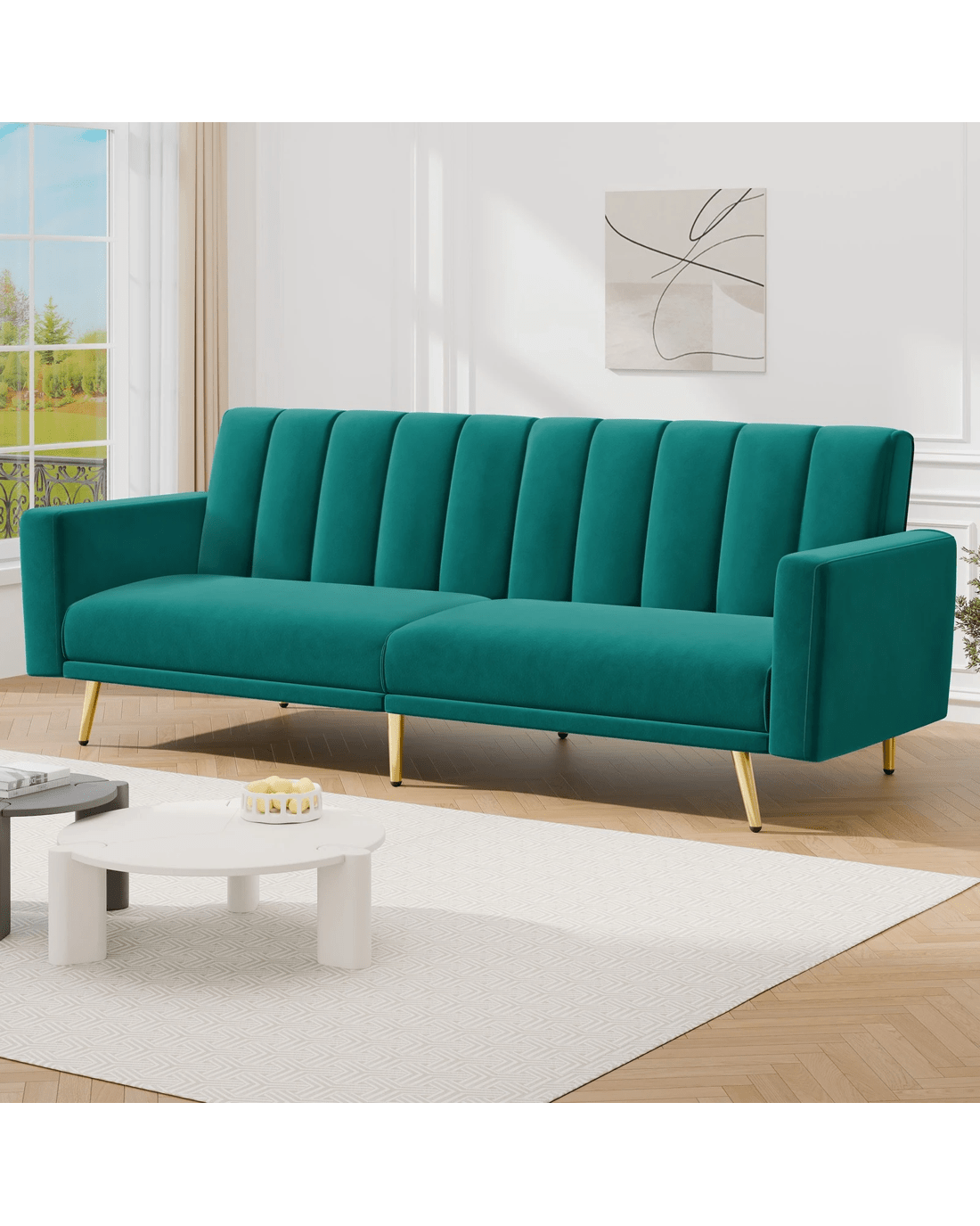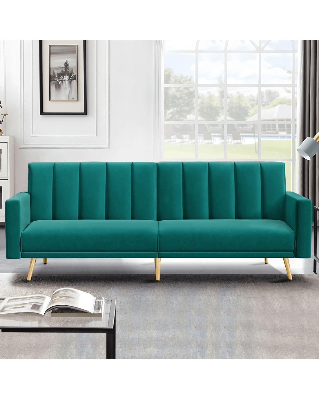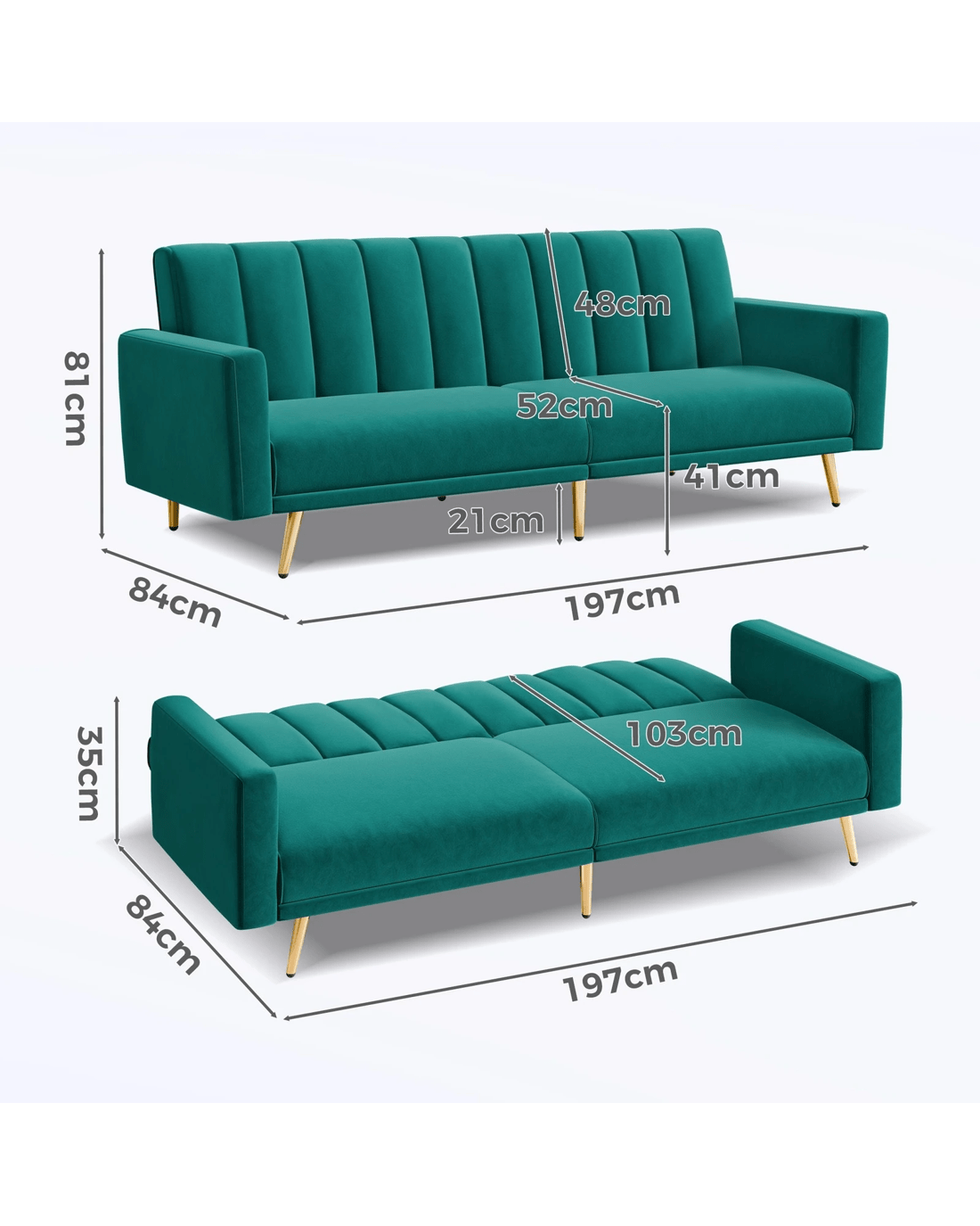 Alfordson Sofa Bed Futon Couch Lounge 3 Seater Convertible Velvet - Green